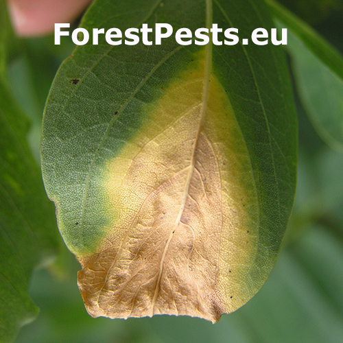 Phloeospora robiniae je hubový patogén spôsobujúci škvrnitosť listov na agáte bielom (Robinia pseudoacacia) a jeho kultivaroch. Huba sa rozvíja v podmienkach vysokej vlhkosti, najmä po dlhšie trvajúcich daždivých jarných obdobiach. Infikuje primárne listy, ale môže preniknúť aj do stopiek a mladých výhonkov, čo vedie k rastovým poruchám a predčasnému opadu listov. V mieste infekcie dochádza k odumieraniu pletív, pričom listy sa môžu lokálne trhať, čo môže pripomínať poškodenie hálkotvornými roztočmi. Pri silnom napadnutí môže dôjsť k oslabeniu koruny stromu, čo je obzvlášť viditeľné pri citlivých kultivaroch, ako sú Robinia pseudoacacia ‘Umbraculifera’ a ‘Tortuosa’.