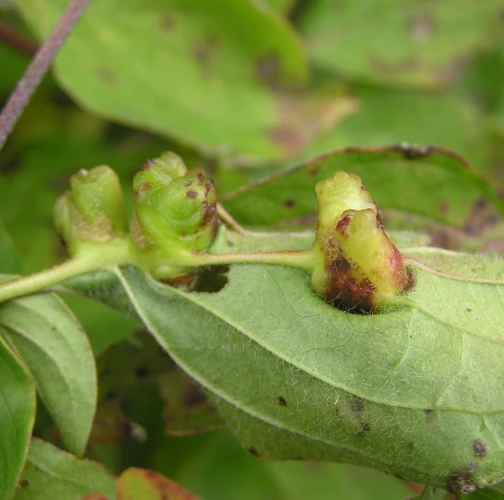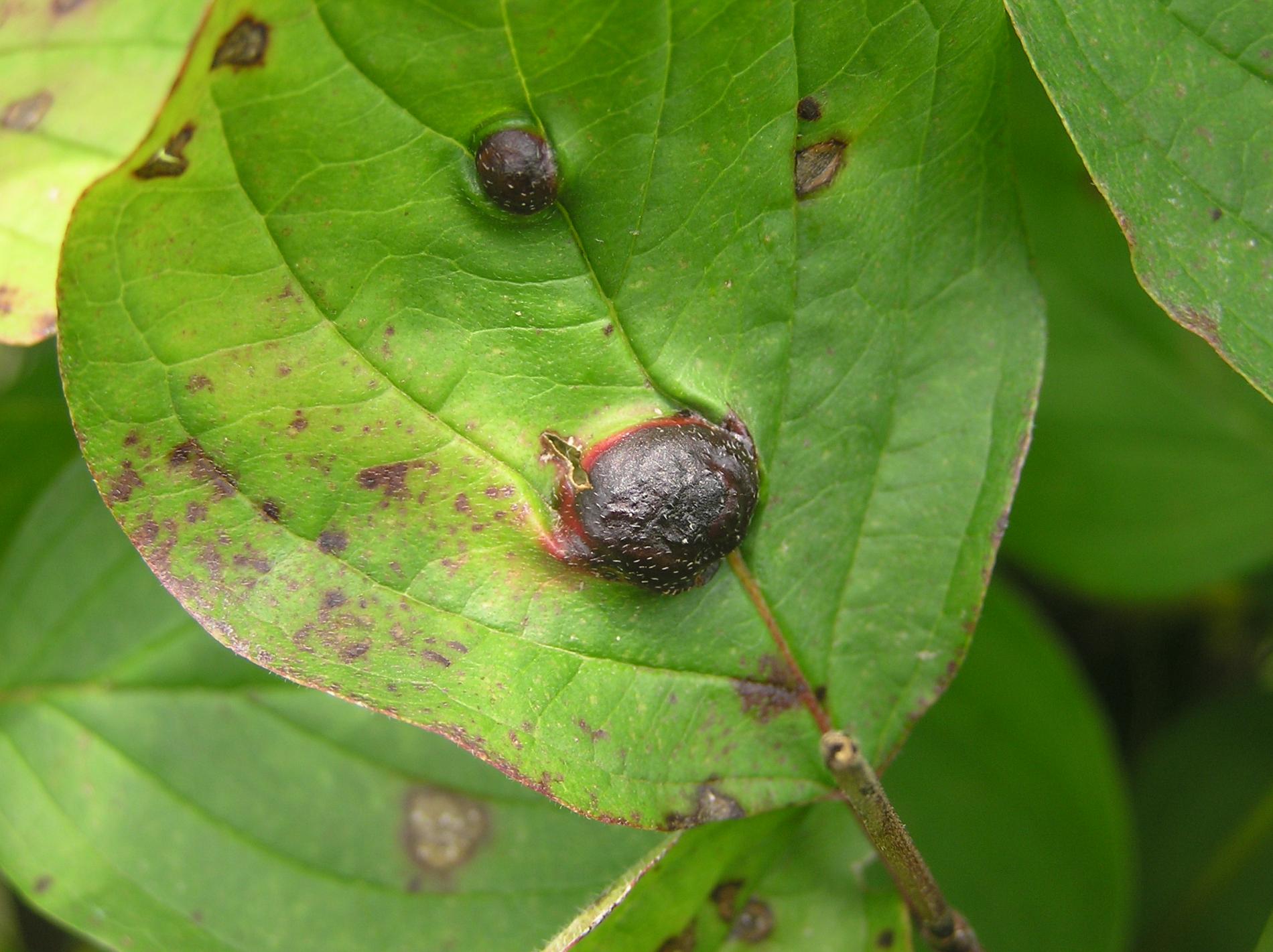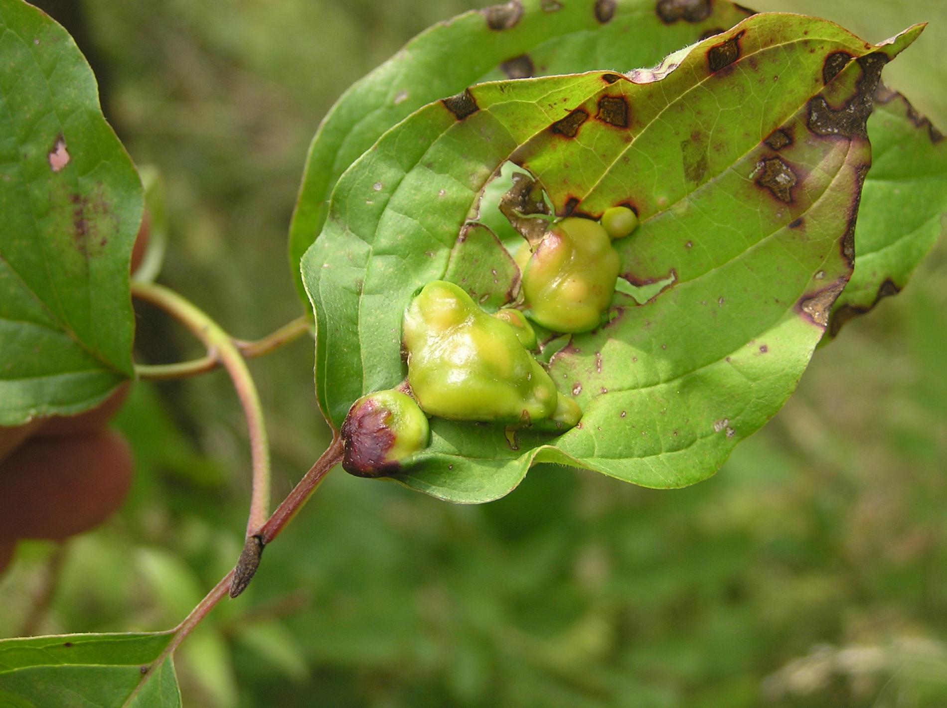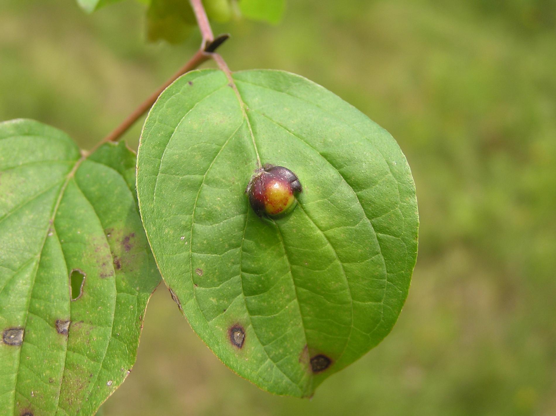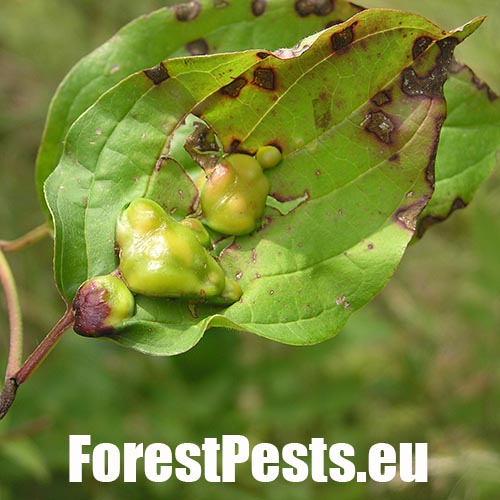 Na listoch svíbov najmä druhu Cornus mas L. a Cornus sanquinea L. sa vyskytujú masívne hálky. Z vrchnej strany vyzerajú ako relatívne pravidelné, hladké, kónické výrastky vysoké asi 5 – 6 mm a na spodnej strane listu ako nepravidelné „korene“ toho istého útvaru, veľké 8 – 15 mm. Farba hálok je zelená až červenohnedá. Nie je zriedkavý hromadný výskyt druhu, keď môžu byť napadnuté skoro všetky listy stromu.