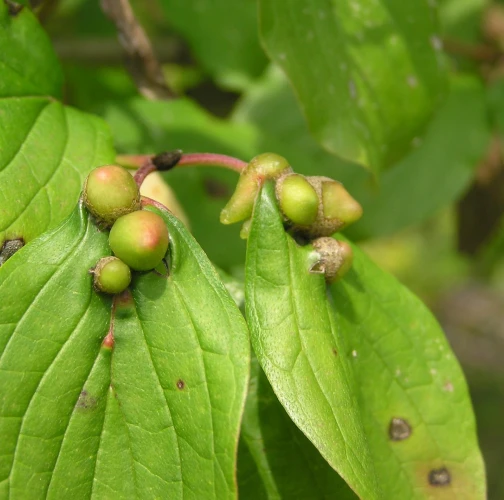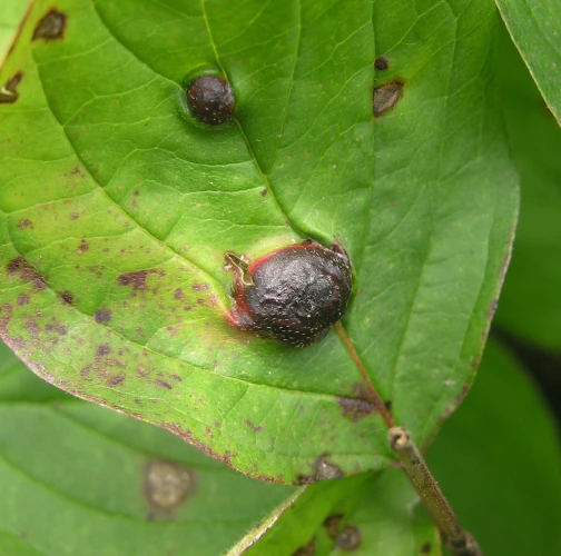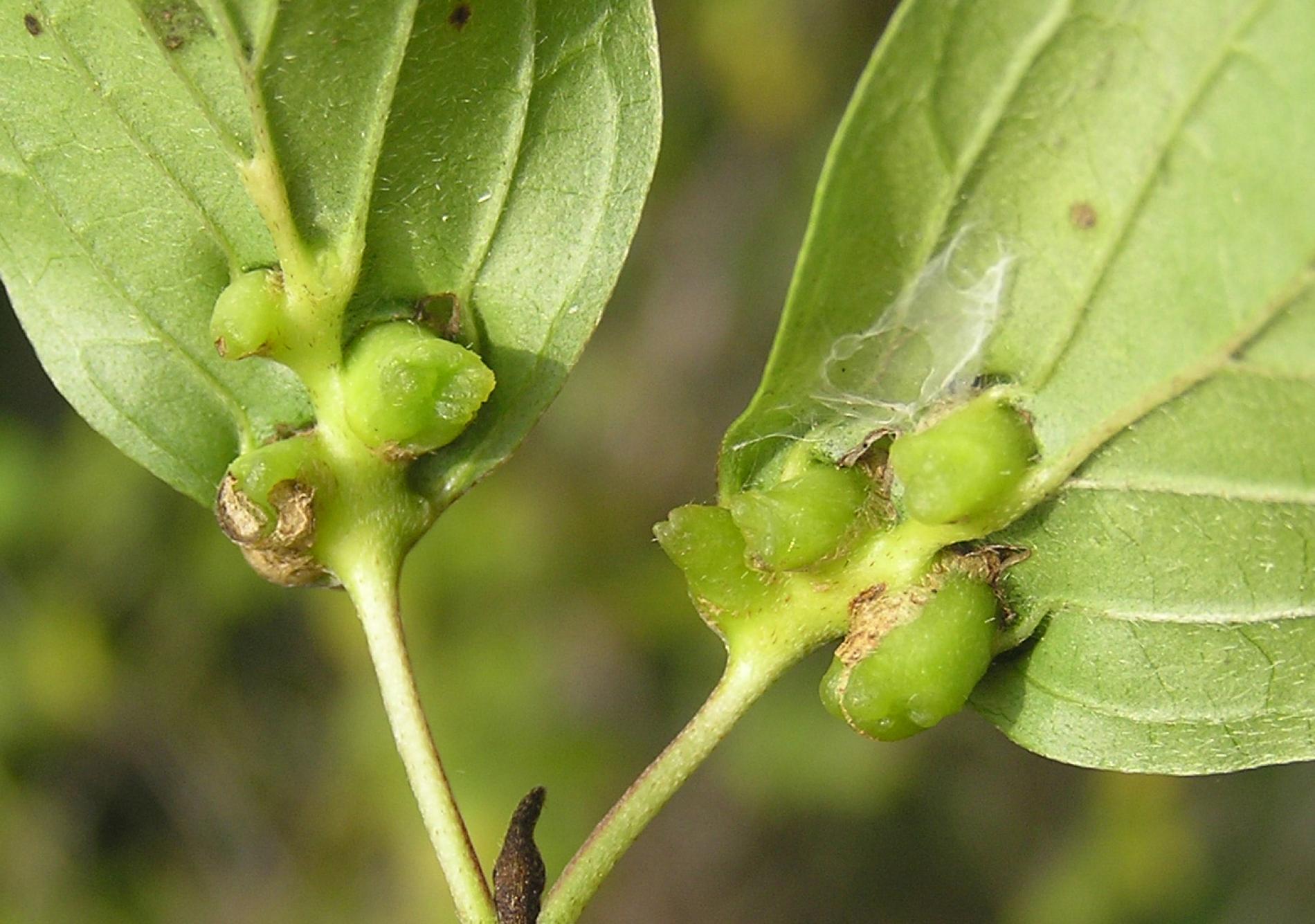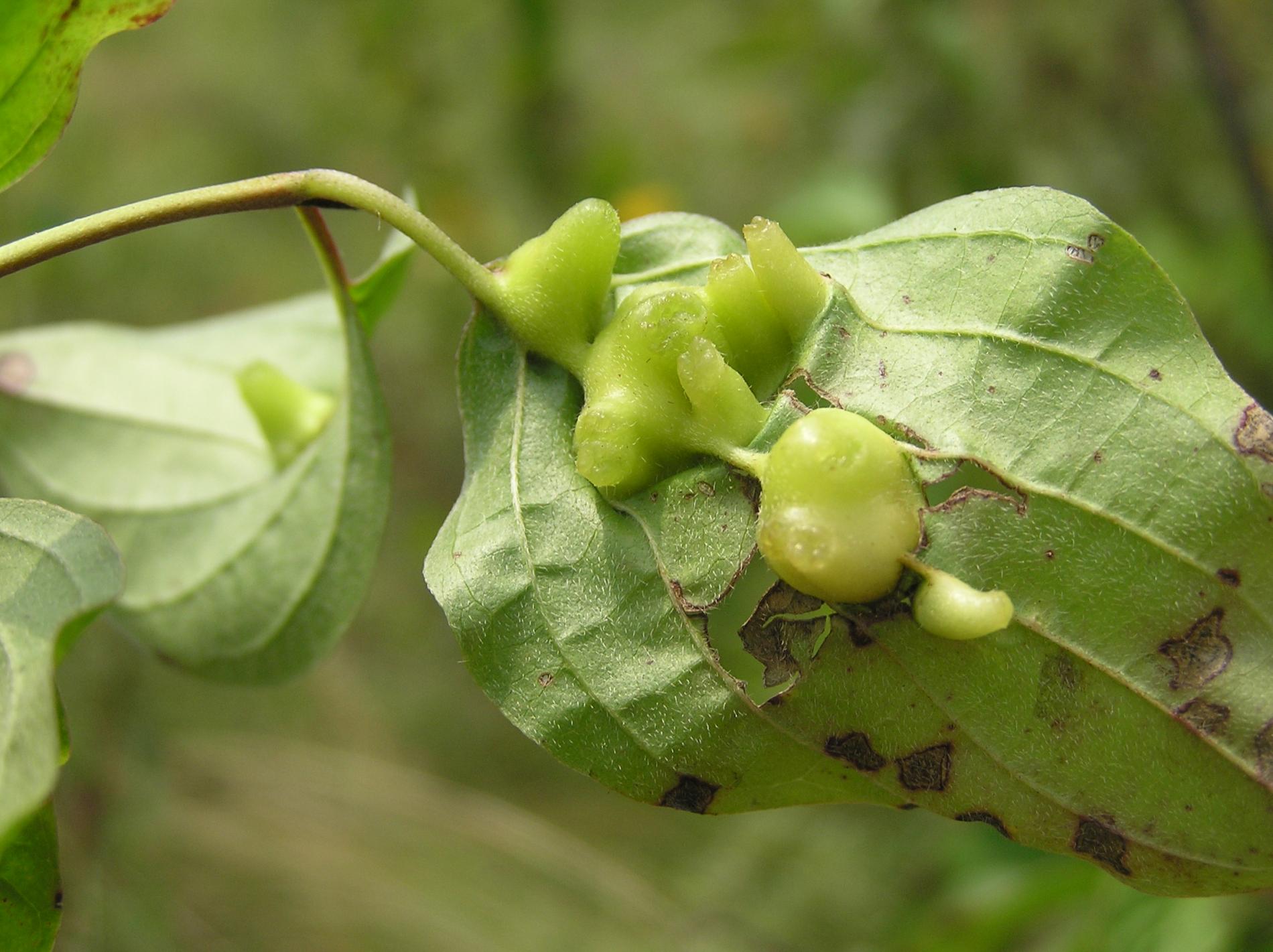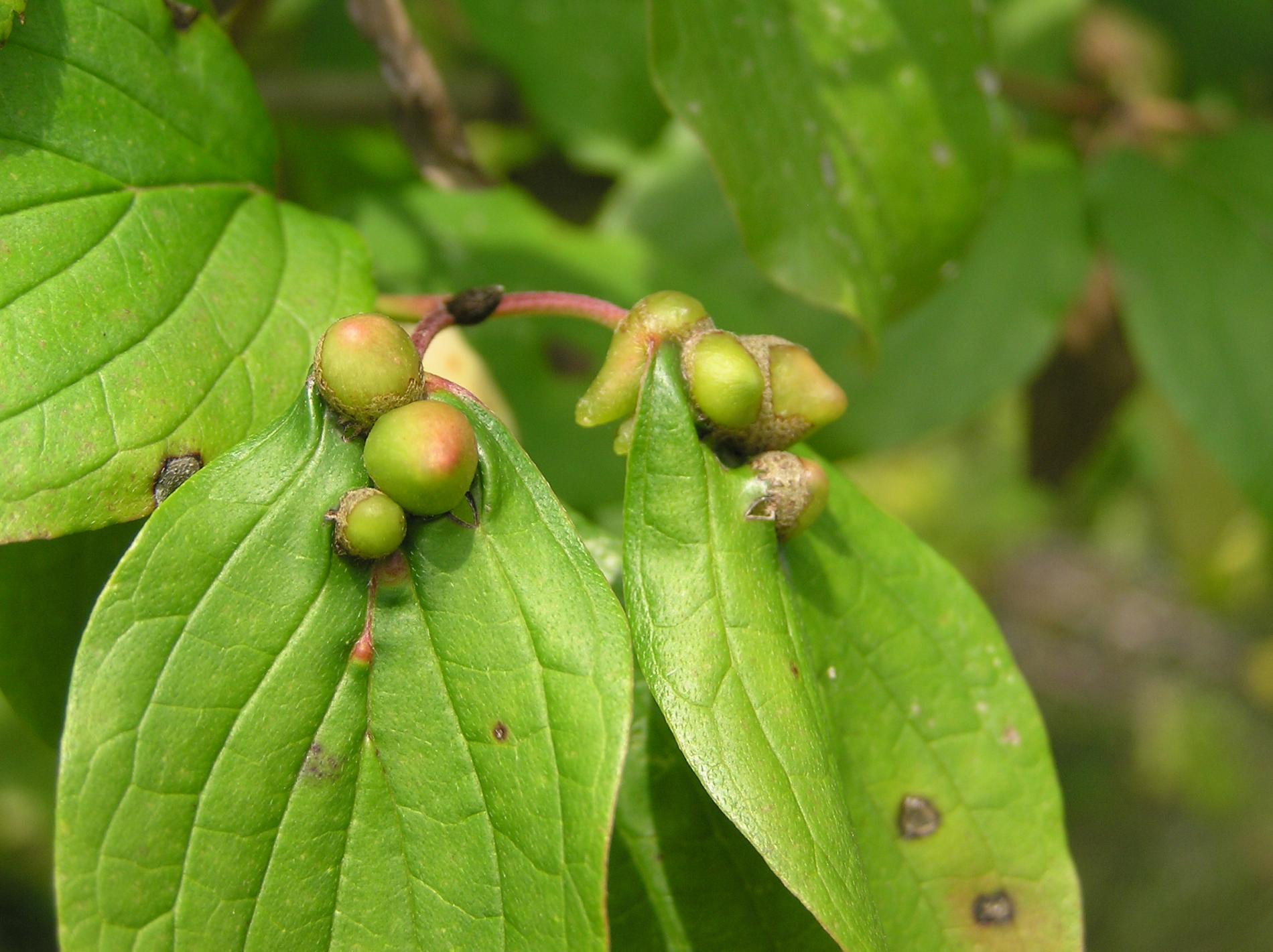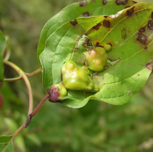 Na listoch svíbov najmä druhu Cornus mas L. a Cornus sanquinea L. sa vyskytujú masívne hálky. Z vrchnej strany vyzerajú ako relatívne pravidelné, hladké, kónické výrastky vysoké asi 5 – 6 mm a na spodnej strane listu ako nepravidelné „korene“ toho istého útvaru, veľké 8 – 15 mm. Farba hálok je zelená až červenohnedá. Nie je zriedkavý hromadný výskyt druhu, keď môžu byť napadnuté skoro všetky listy stromu.