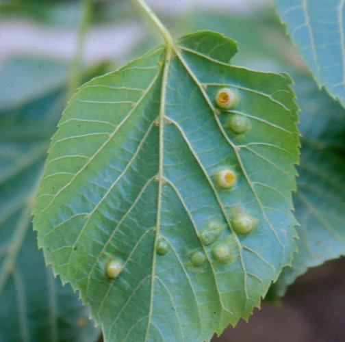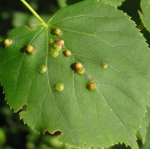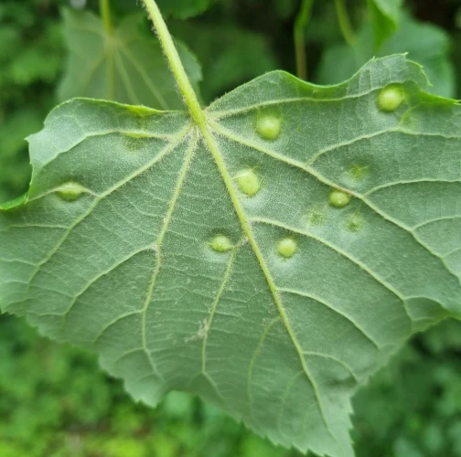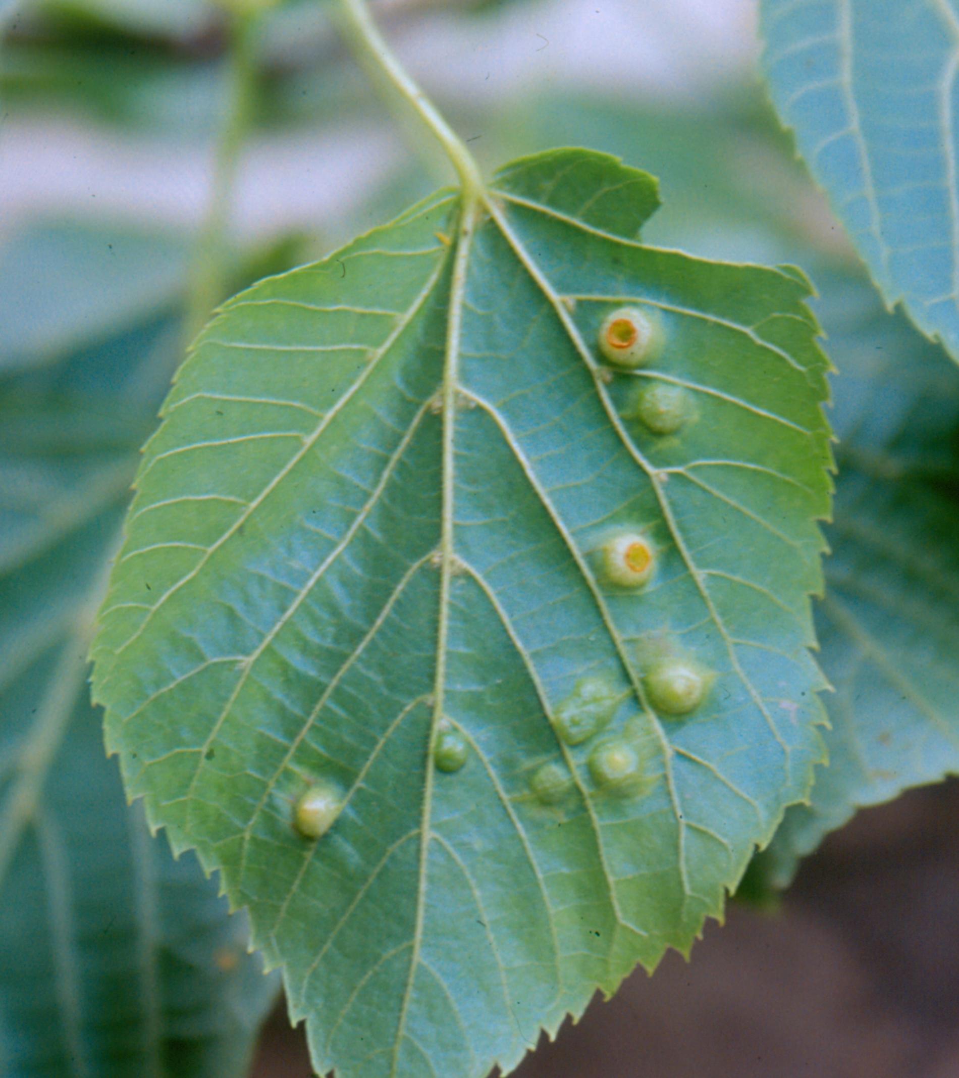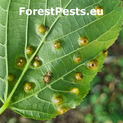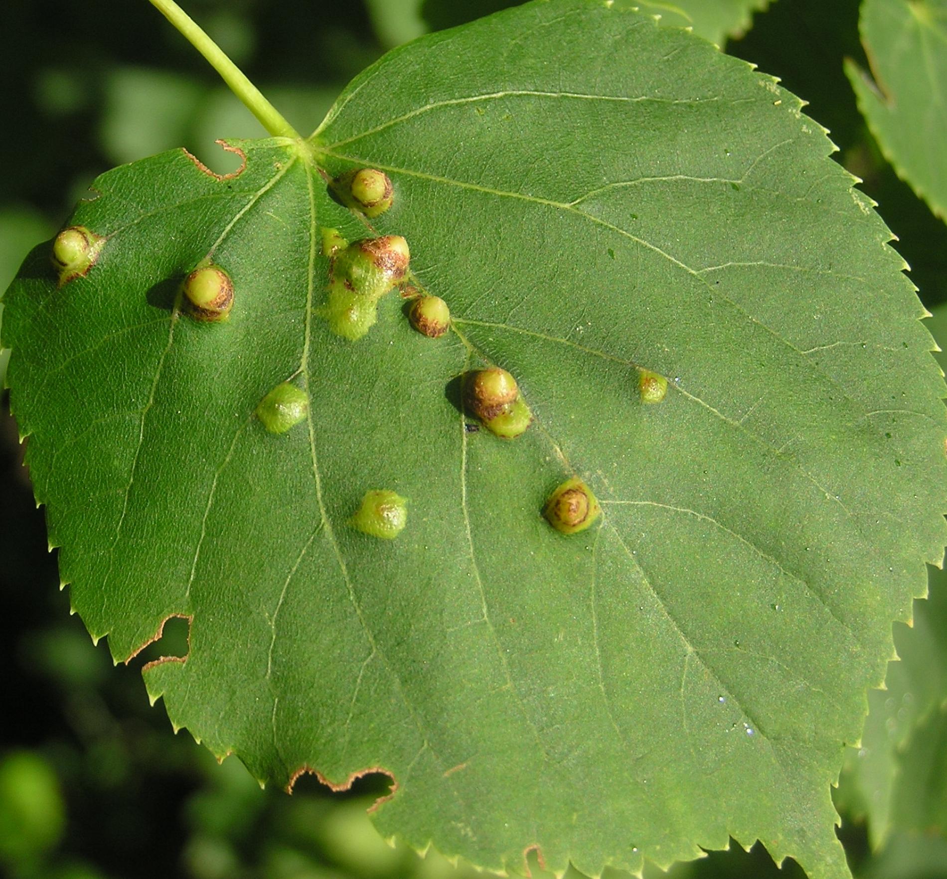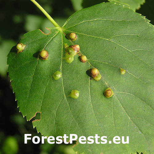 Tento škodca vyvoláva tvorbu hálok na listoch líp Tilia spp. Hálky môžu dorásť až do veľkosti 6 x 4 mm, spočiatku sa javia ako zelené a neskôr prechádzajú do hnedej alebo žltej farby. Sú viditeľné na vrchnej aj dolnej strane lipových listov. Na hornej strane možno pozorovať kužeľovité výrastky dlhé približne 2 mm, na spodnej strane sa hálky prejavujú ako menej nápadné opuchy.