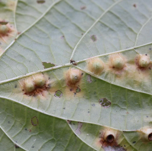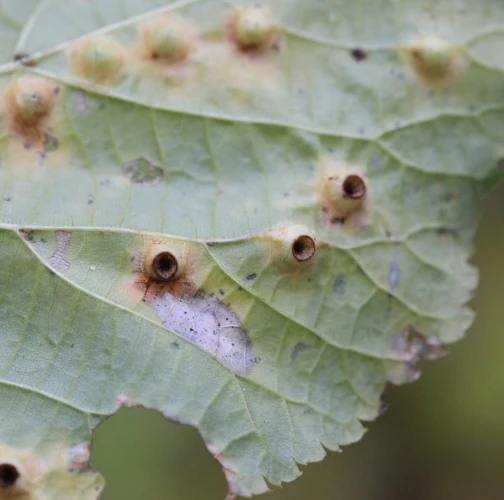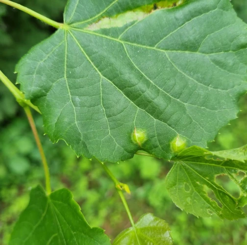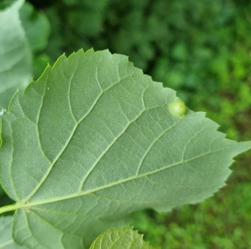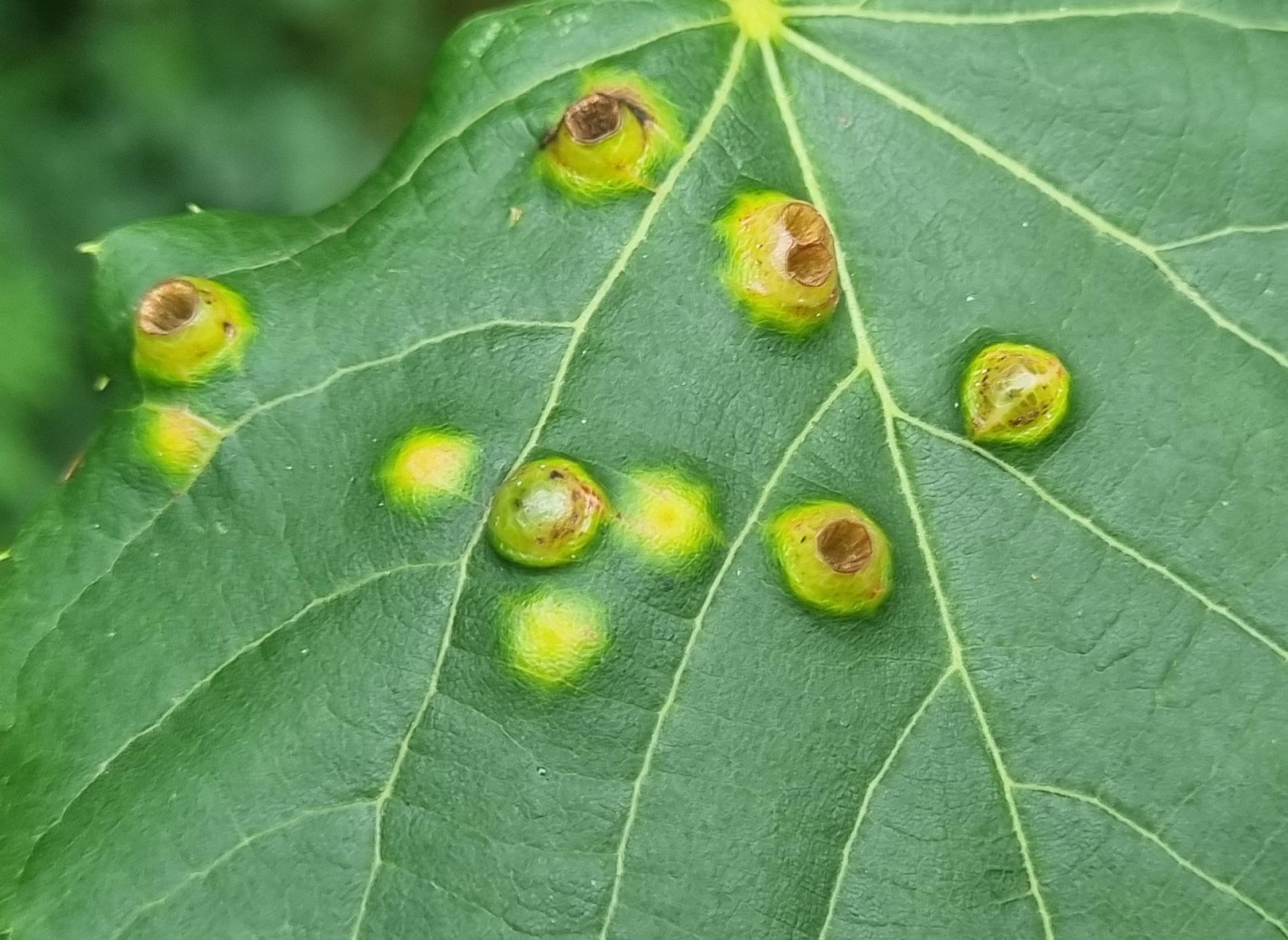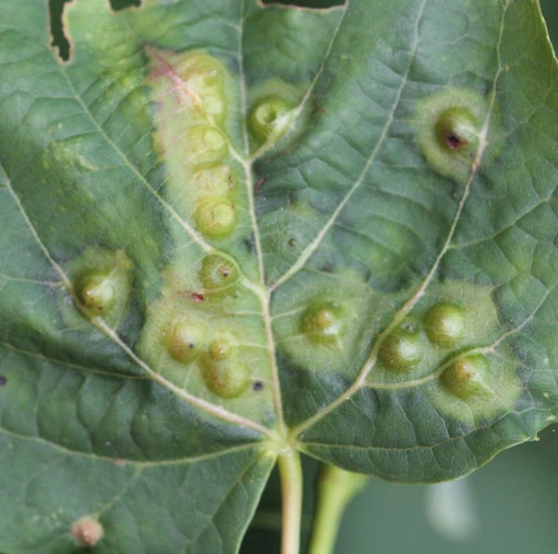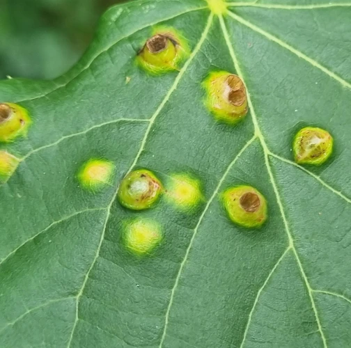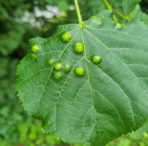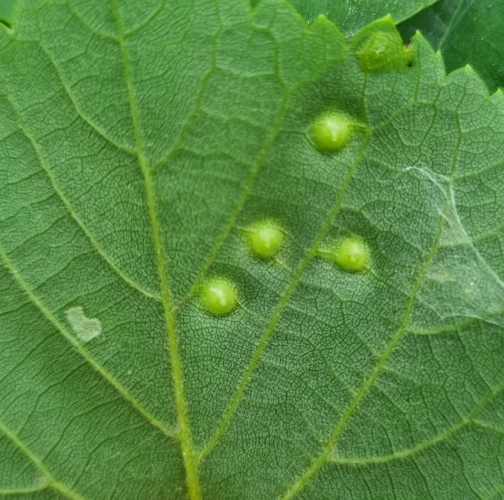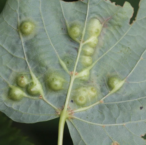 Tento škodca vyvoláva tvorbu hálok na listoch líp Tilia spp. Hálky môžu dorásť až do veľkosti 6 x 4 mm, spočiatku sa javia ako zelené a neskôr prechádzajú do hnedej alebo žltej farby. Sú viditeľné na vrchnej aj dolnej strane lipových listov. Na hornej strane možno pozorovať kužeľovité výrastky dlhé približne 2 mm, na spodnej strane sa hálky prejavujú ako menej nápadné opuchy.