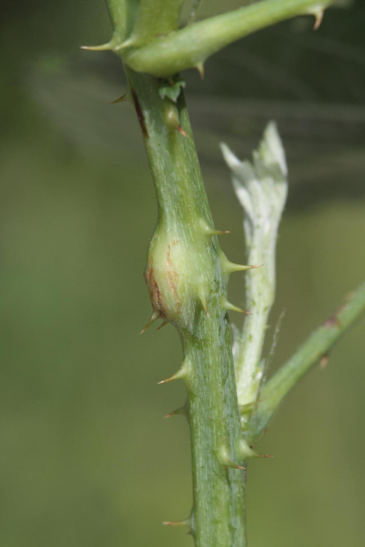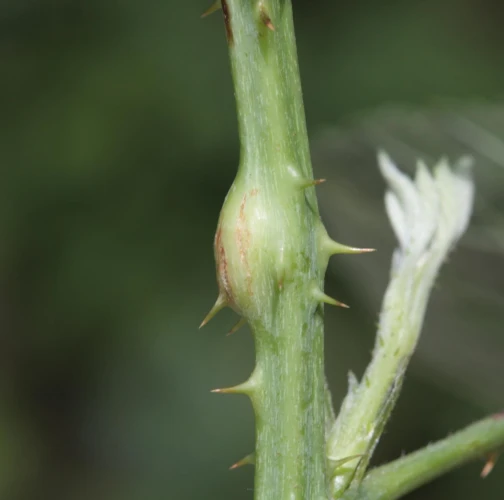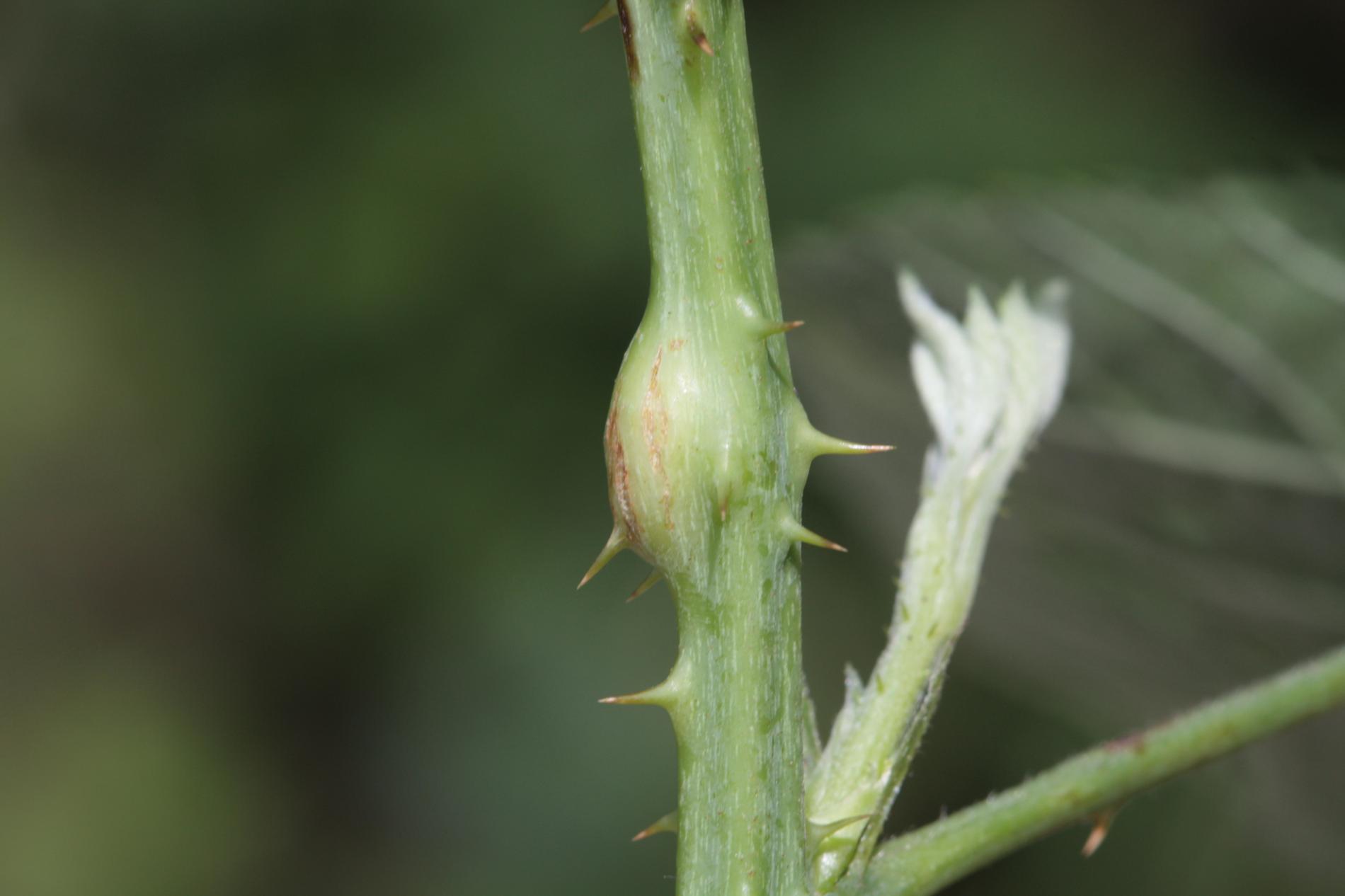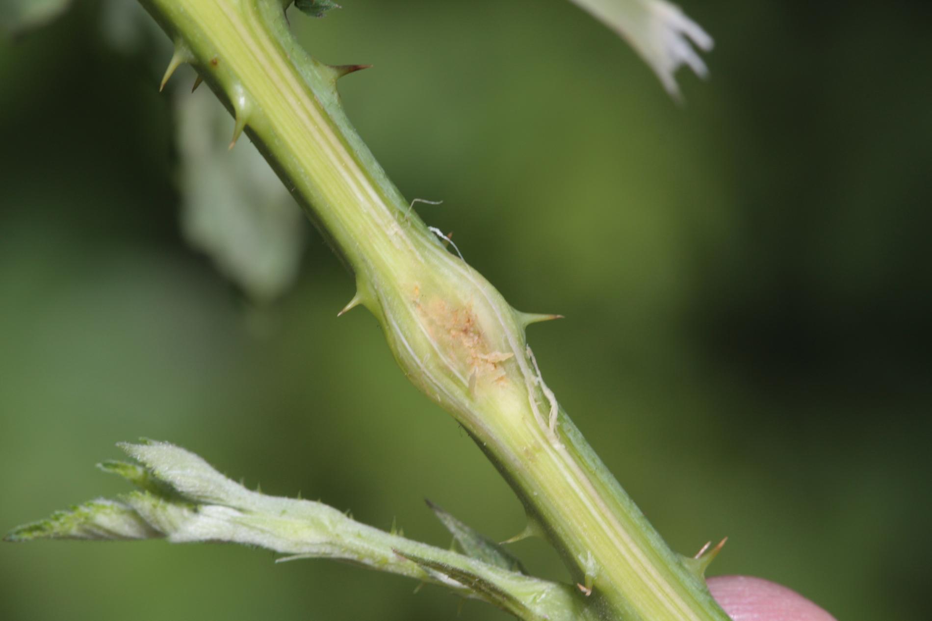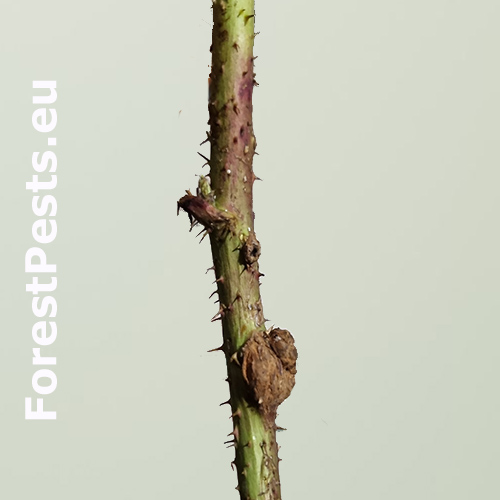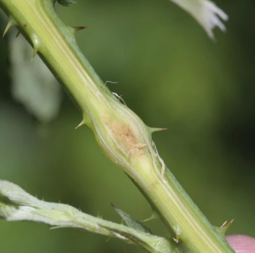 Byľomor ostružinový Lasioptera rubi patrí do čeľade Cecidomyiidae - sú to malé, jemné mušky, ktorý žije na rastlinách rodu Rubus spp., a napáda najmä maliny a černice. Larvy tohto hmyzu sa živia rastlinnými tkanivami, čo spôsobuje tvorbu nádorov na stonkách a prútoch. Tieto nádory môžu oslabiť rastlinu, znížiť jej vitalitu a produkciu ovocia a môžu spôsobiť čiastočné vysušenie stoniek, ktoré sa potom následne môžu ľahko zlomiť pri silných vetroch. Dospelé samice kladú svoje vajíčka na stonky rastlín rodu Rubus, zvyčajne blízko púčikov alebo rán. Po vyliahnutí vajíčok sa larvy zavŕtavajú do rastlinných tkanív, kde sa živia a spôsobujú tvorbu nádorov. Larvy a kukly zostávajú vo vnútri týchto hrčiek, chránené pred predátormi a vonkajšími podmienkami. Dospelé mušky Lasioptera rubi  sa na jar liahnu, aby sa párili a pokračovali v zachovaní rodu. Opatrenia na kontrolu často zahŕňajú monitorovanie tvorby nádorov a odstránenie infikovaných častí rastlín, aby sa tým obmedzilo šírenie.