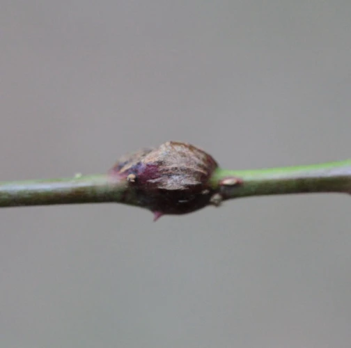 Hálky sú guľaté alebo oválne, pričom môžu mať rôzne nepravidelnosti v tvare. Farba hálok sa môže pohybovať od zelených po hnedé, v závislosti od veku hálky a štádia rastu.