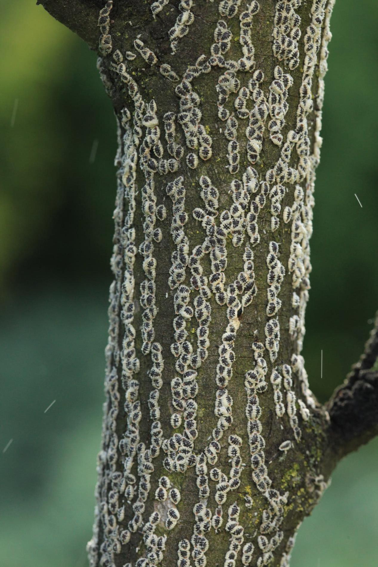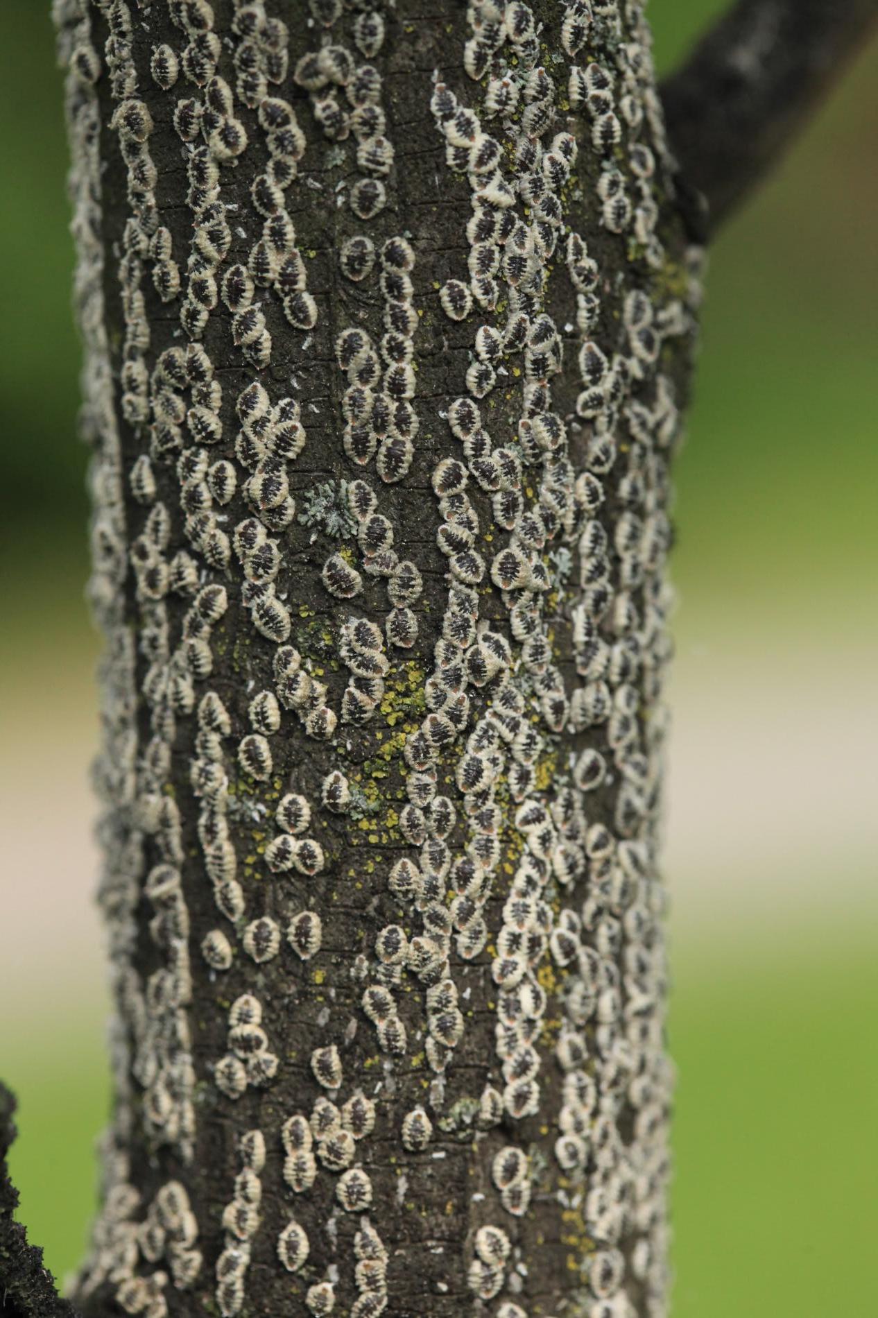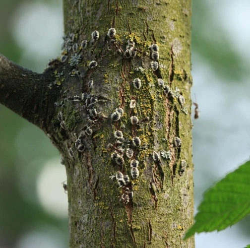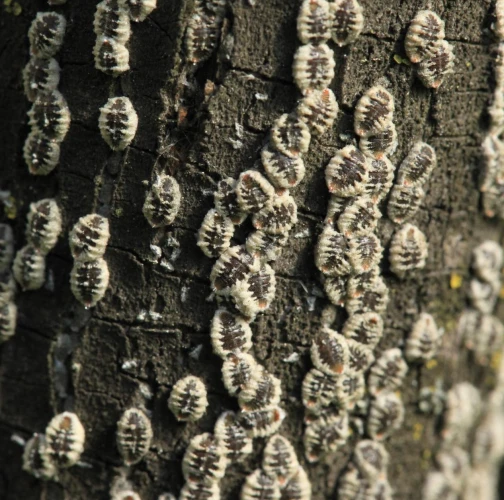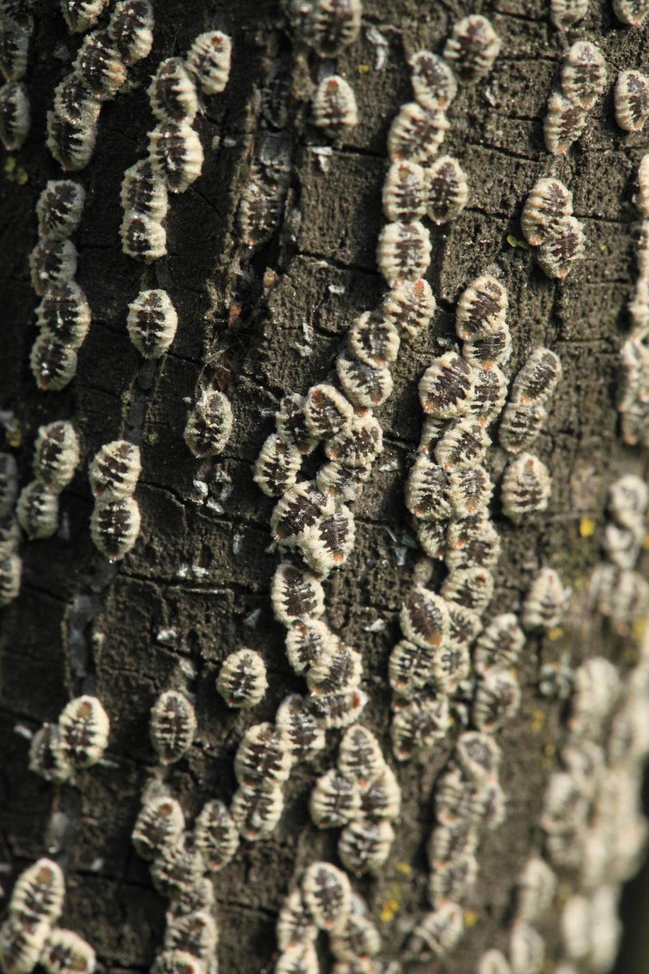 Larvy a imága na kmeňoch často v radoch a v hojnom počte.