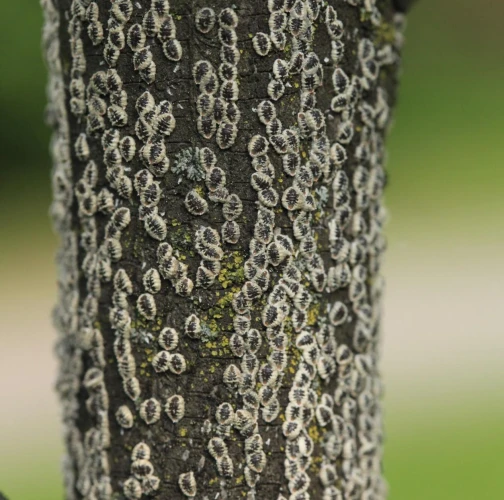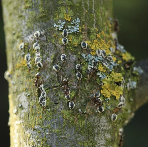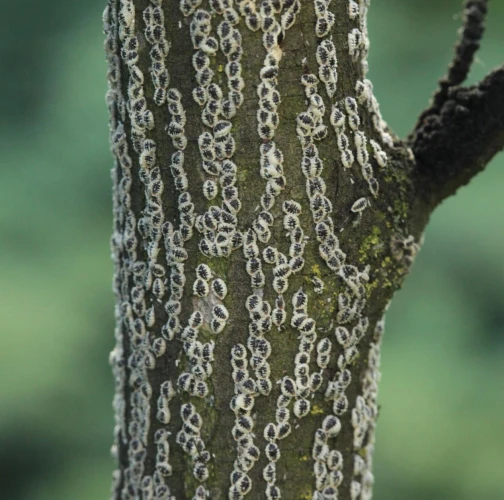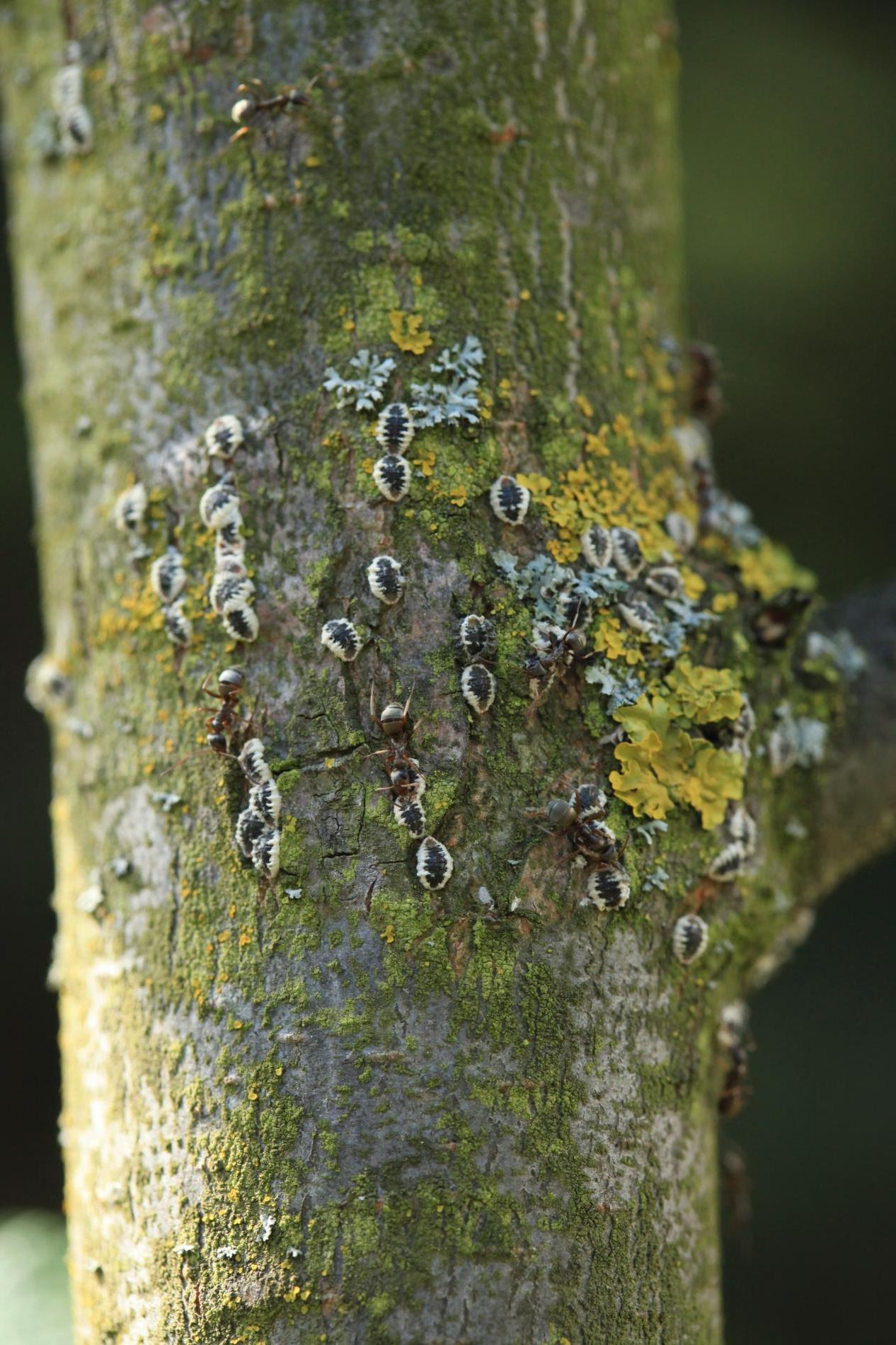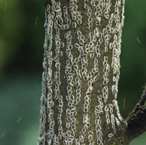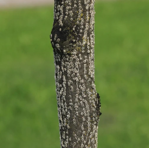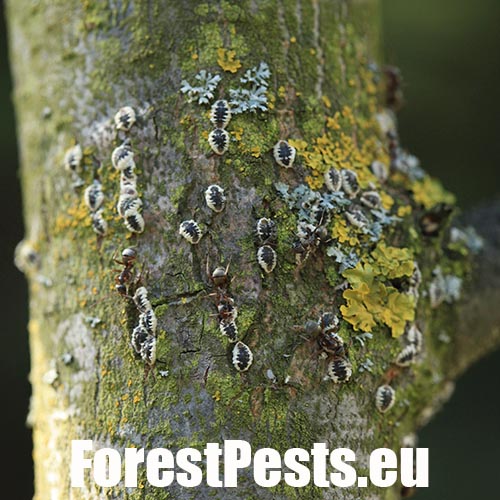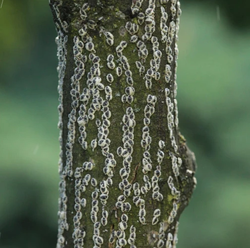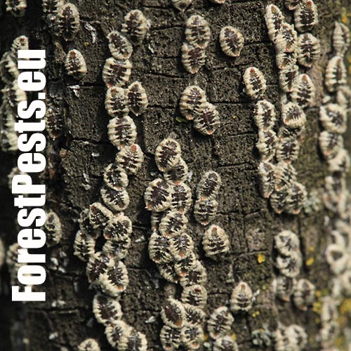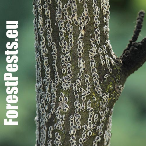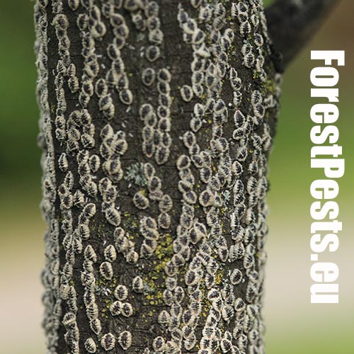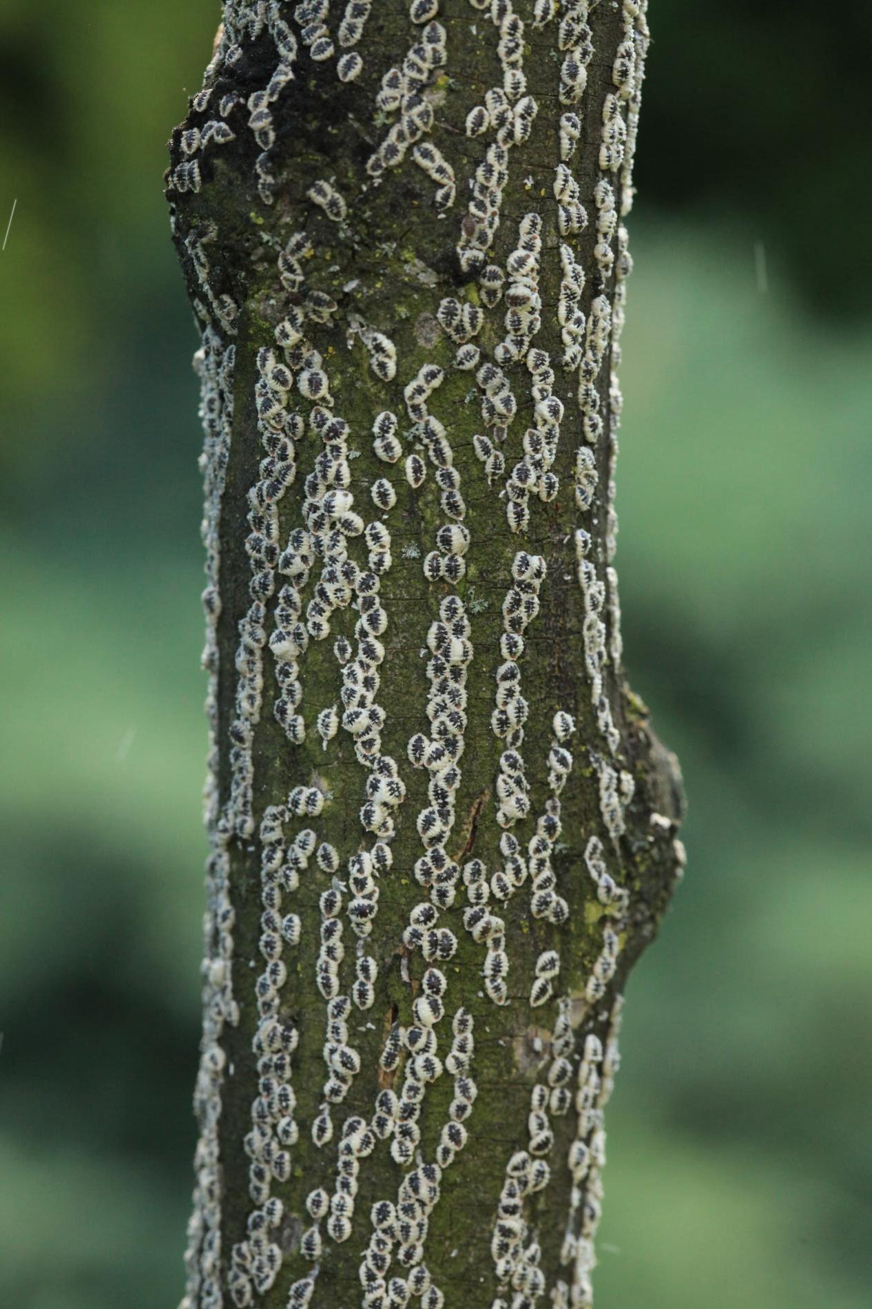 Larvy a imága na kmeňoch často v radoch a v hojnom počte.