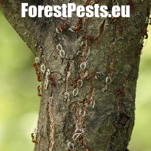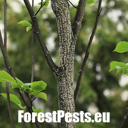 Na brestoch cicia na vetvách a kmeňoch. Je to hmyz, ktorý patrí medzi červce (Hemiptera: Eriococcidae). Je to náš domáci druh, ktorý sa síce vyskytuje pomerne často ale dosť lokálne. Asi 2 mm veľké samičky kladú vajíčka pod seba na kmene stromov, z ktorých sa v priebehu leta vyliahnu drobné, okom ťažko viditeľné larvy. Tie sa živia rastlinnými šťavami, ktoré sajú z pletív hostiteľskej dreviny. Tento druh sa dostal do USA, kde je považovaný za významného invázneho škodcu brestov.
