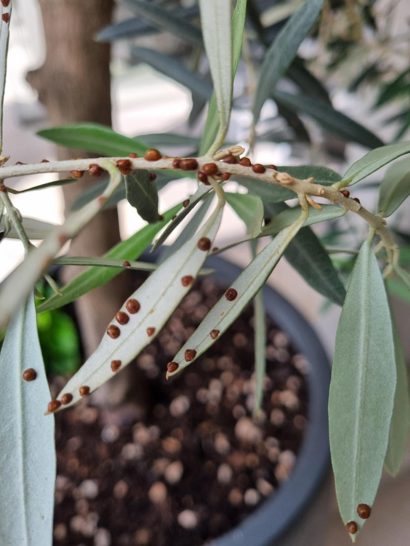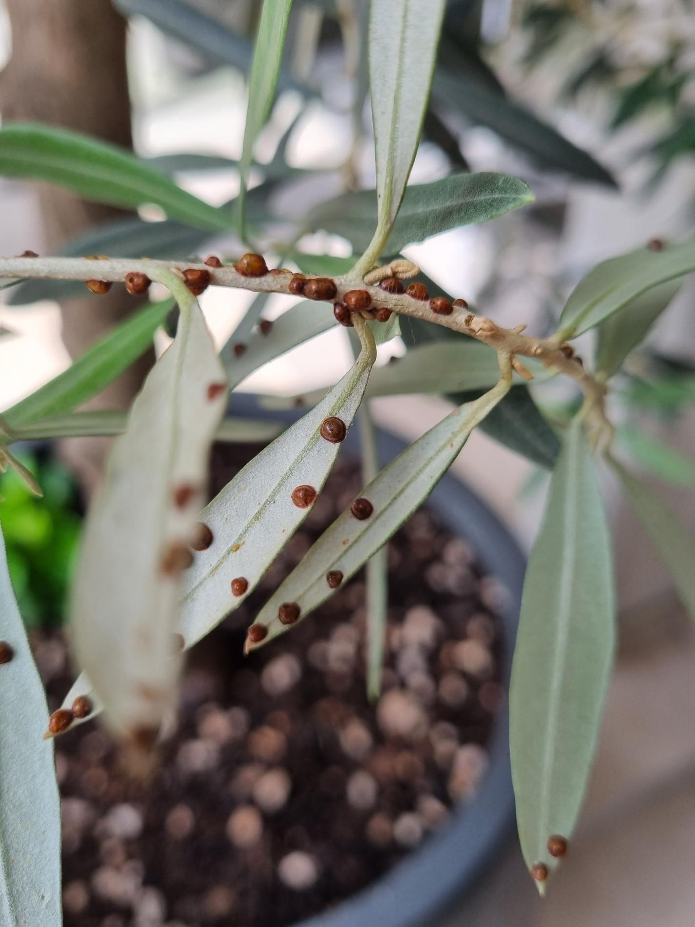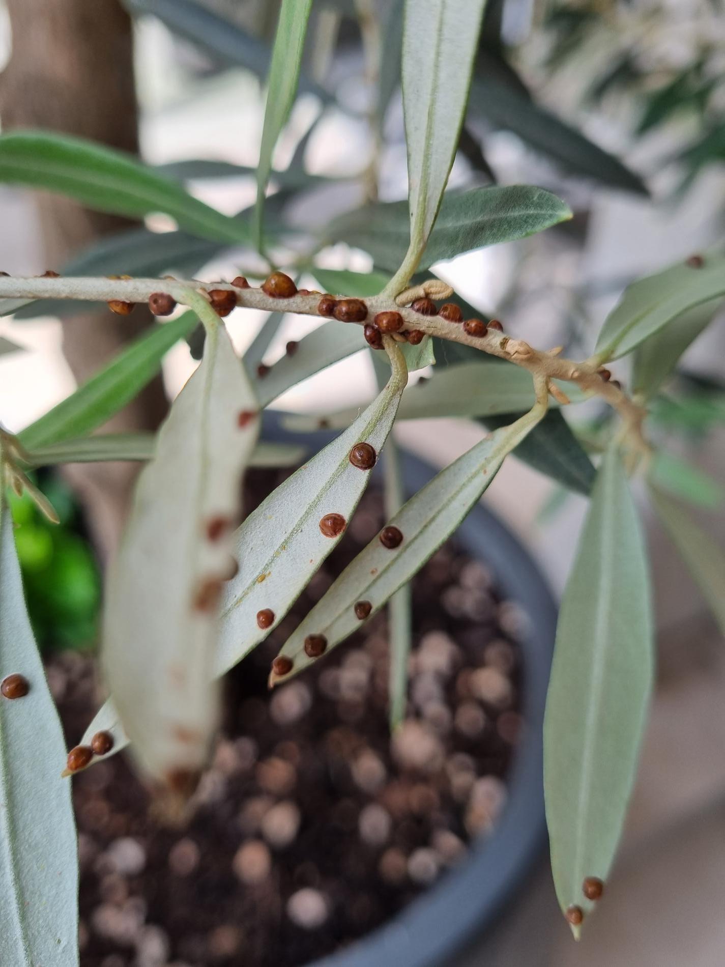 Hnedé červce na konároch a listoch.