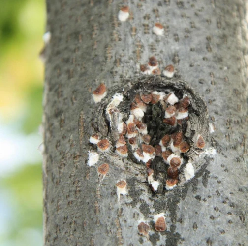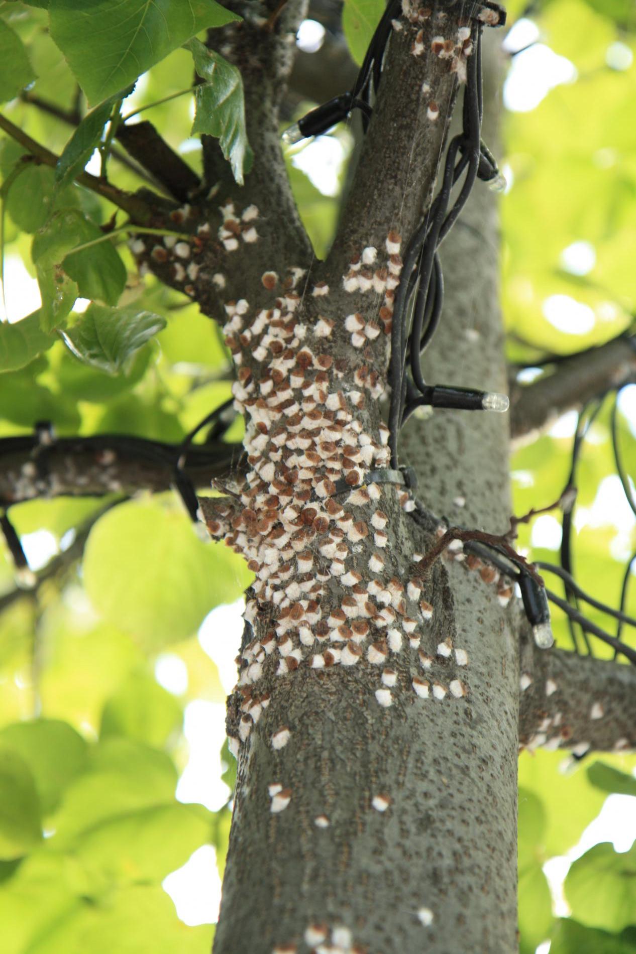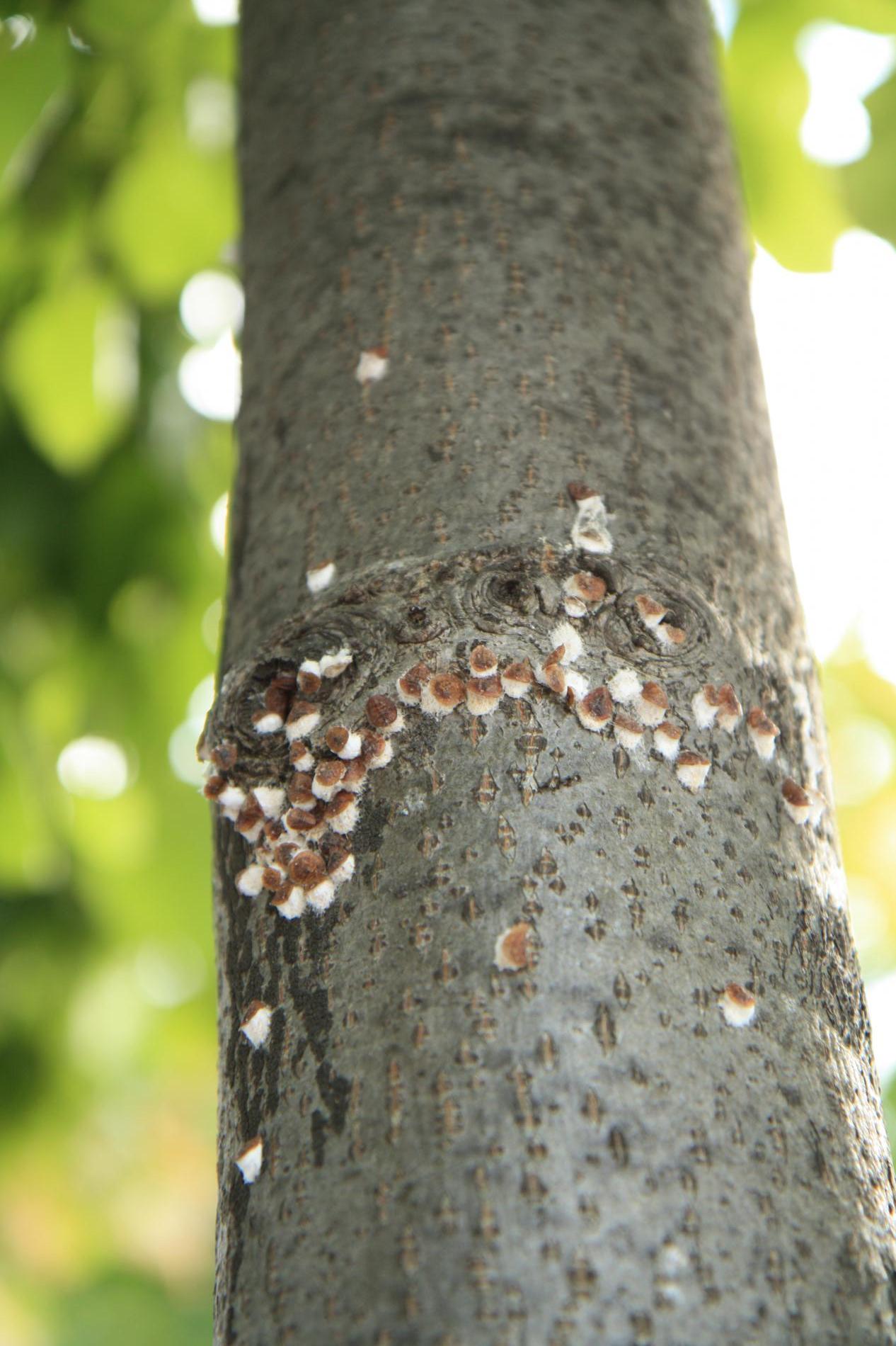 Na vetvách a kmeňoch a nachádzajú nápadné samičky, ktoré tvoria často veľké kolónie.