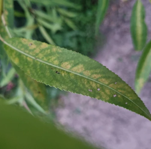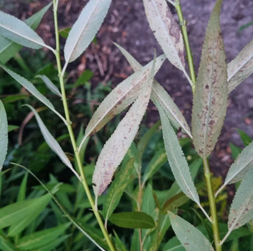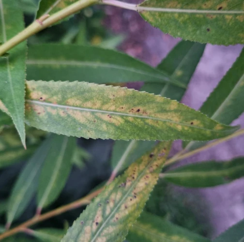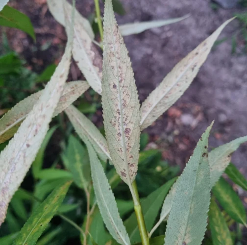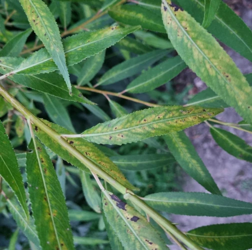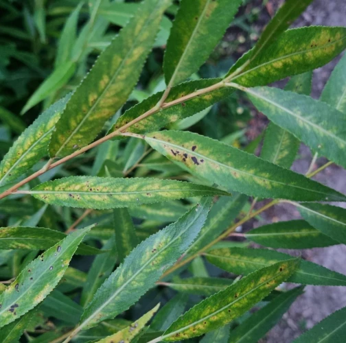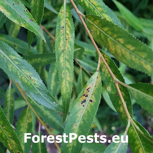 Na listoch sú čierne až hnedočervené škvrny, na výhonkoch a vetvách sivé chrasty, ktoré môžu viesť k odumieraniu vetiev.