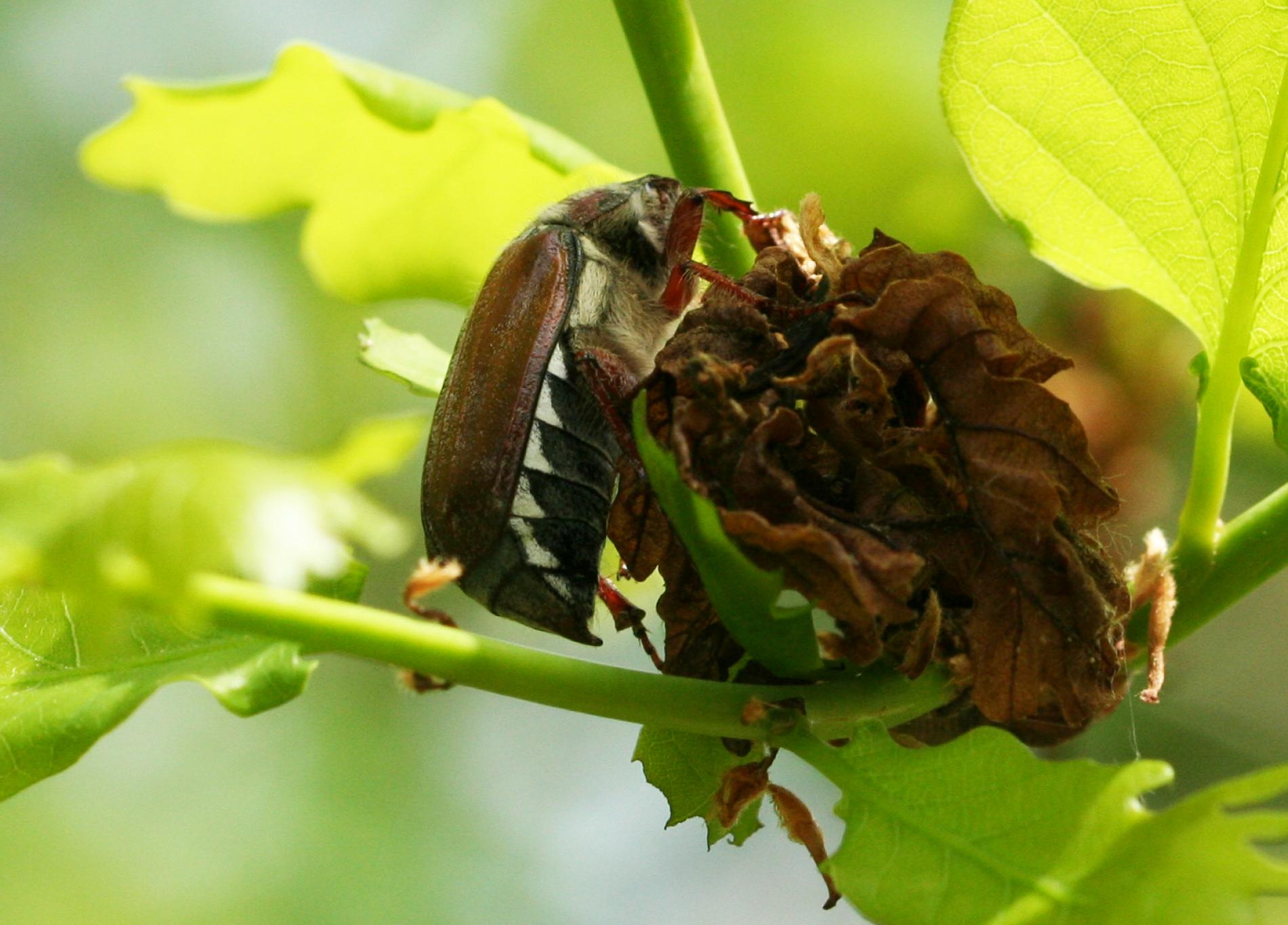 Chrobáky veľkosti 25-30 mm. Spodná časť bruška je bielo-čierna. Koniec posledného článku zadočku je tupo zakončený. Imága sa roja koncom apríla a začiatkom mája. Nalietavajú na okraje listnatých porastov. Na ich listoch vykonávajú úživný žer. Sú aktívne najmä za súmraku. Cez deň nehybne odpočívajú na listoch alebo vetvičkách. Žer je obyčajne sústredený na okraje porastov a horné časti korún. Pri silnom výskyte spôsobujú holožery. Po spárení samičky kladú v pôde vajíčka. Preferujú voľné plochy, rúbaniská a okraje porastov. Z vajíčok sa liahnu larvy, ktoré žerú na koreňoch bylín a krov. U nás poškodzujú najmä korene borovíc. Vývoj lariev trvá 3 – 4 roky. Počas tejto doby ožierajú korienky bylín a drevín. Škodca preferuje porasty do nadmorskej výšky 600 m. n. m.
