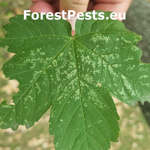 Na hornej strane listov sú drobné biele bodkovité zmeny, na spodnej strane nymfy, dospelce a biele exúvie.