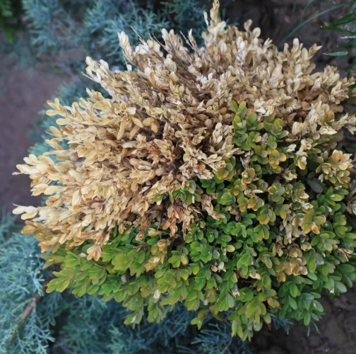 Cylindrokládiové odumieranie krušpánu (Cylindrocladium buxicola, známa aj ako Calonectria pseudonaviculata) je deštruktívne hubové ochorenie, ktoré postihuje krušpán  (Buxus spp.). Spôsobuje škvrny na listoch, defoliáciu a lézie na stonkách, čo vedie k značnému poškodeniu rastlín a v niektorých prípadoch až k ich úhynu. Choroba sa šíri v teplých a vlhkých podmienkach a prenáša sa infikovaným rastlinným materiálom, nástrojmi alebo vodnými kvapkami. Efektívna prevencia zahŕňa sanitárne opatrenia, aplikáciu fungicídov a používanie odolných odrôd krušpánu. Huba produkuje spóry (konídiá), ktoré sa šíria vodou, vetrom alebo kontaminovanými nástrojmi. Spóry dopadnú na listy alebo stonky krušpánu v teplých, vlhkých podmienkach a prenikajú do rastlinného tkaniva. Patogén rastie a produkuje ďalšie spóry, ktoré môžu infikovať okolité rastliny. Prežíva v rastlinných zvyškoch alebo pôde cez zimu, čakajúc na priaznivé podmienky na jar, aby opäť naštartoval celý cyklus.