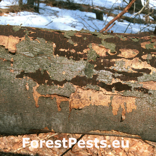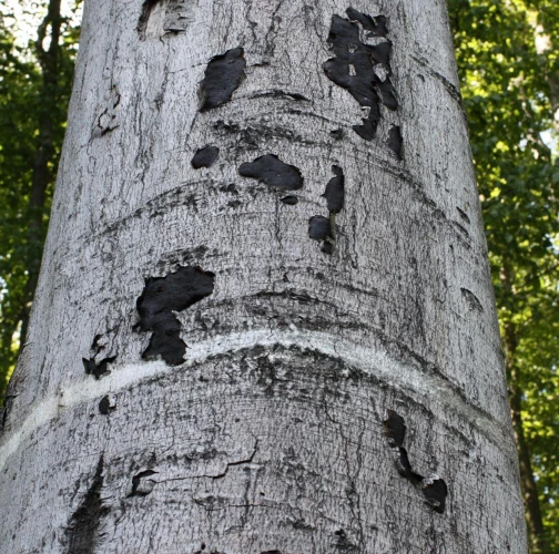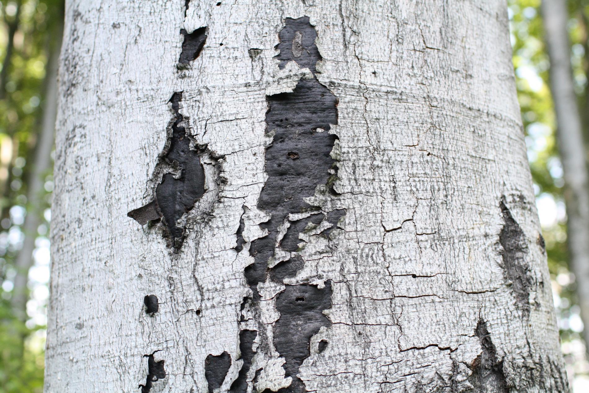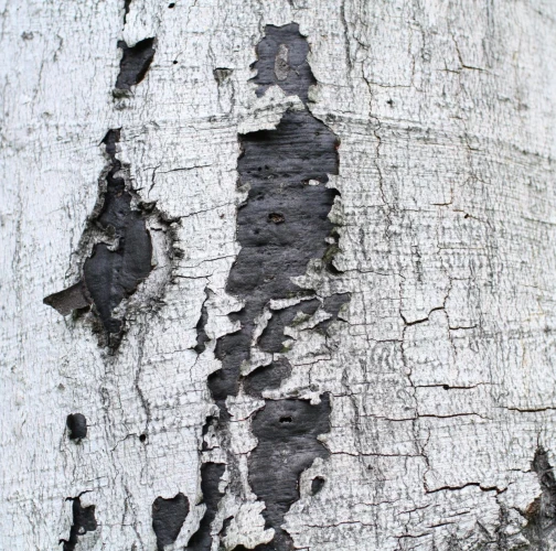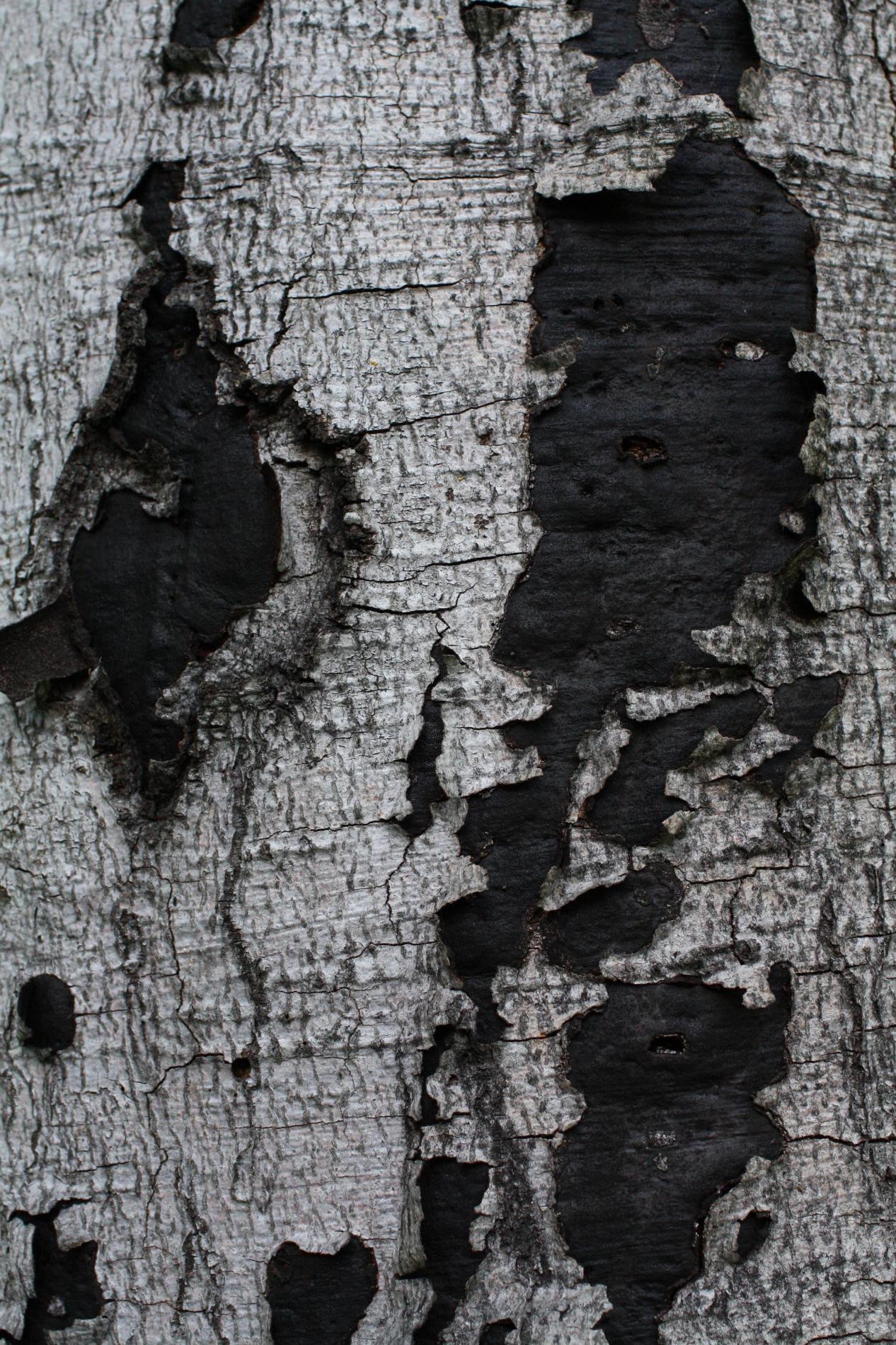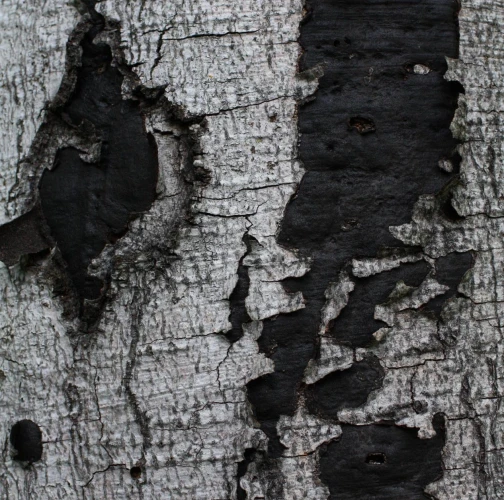 Čierny povlak pod rozpraskanou kôrou.