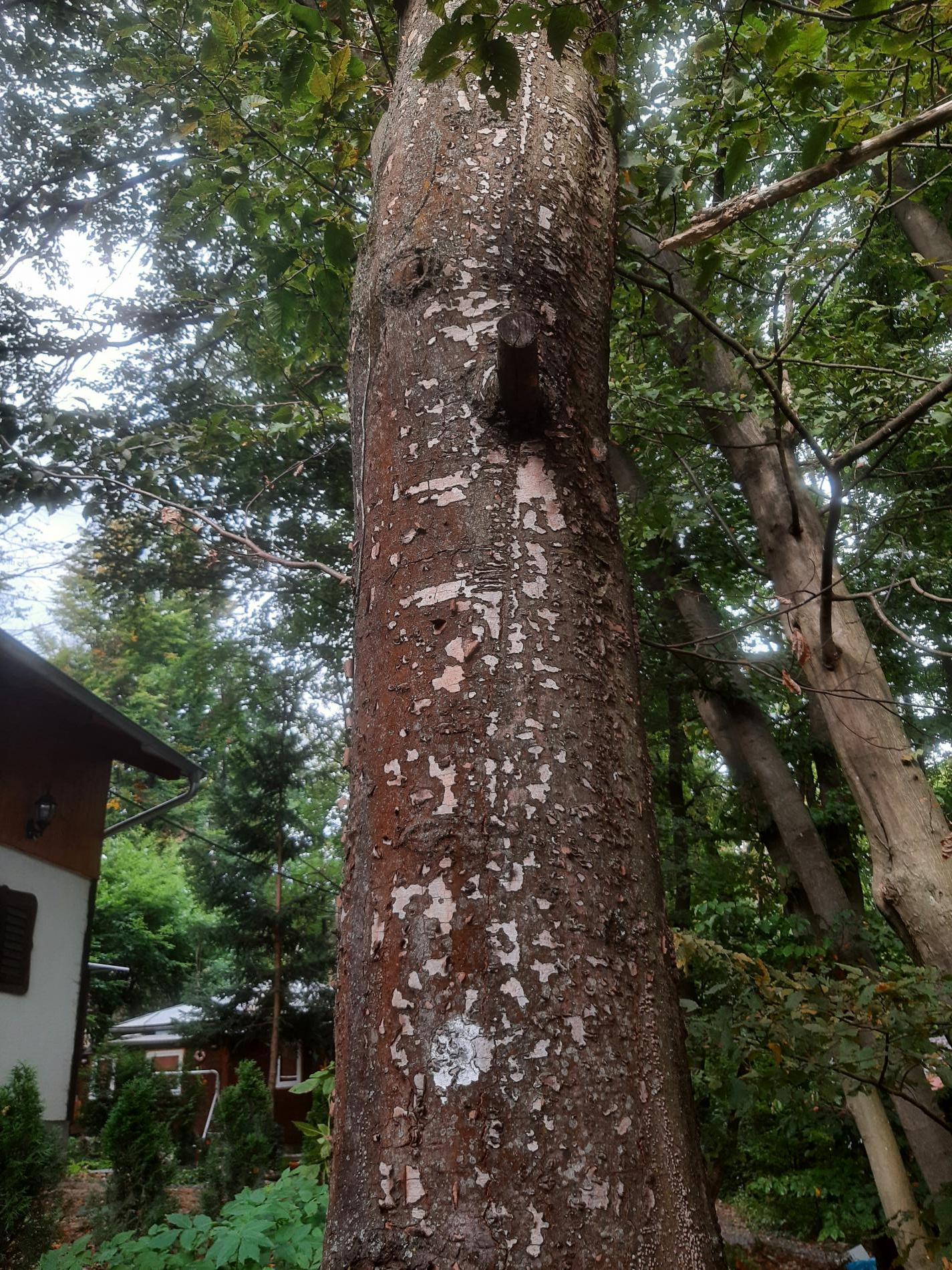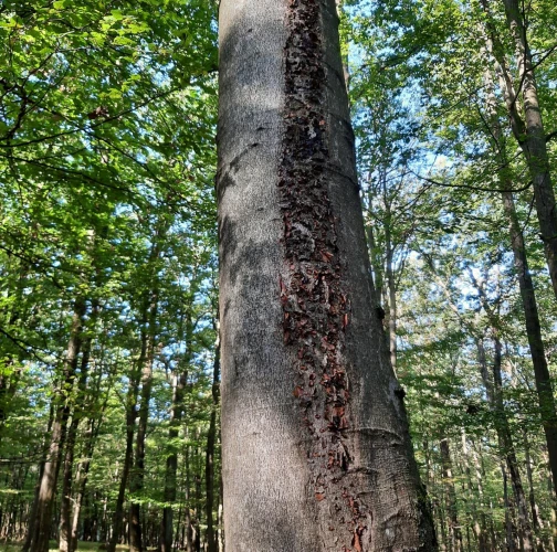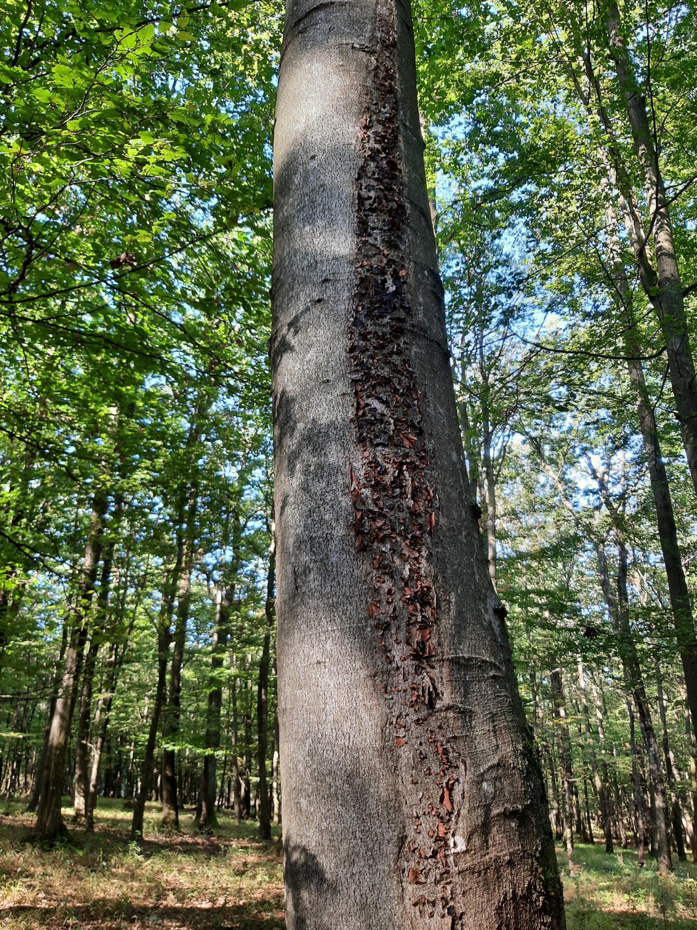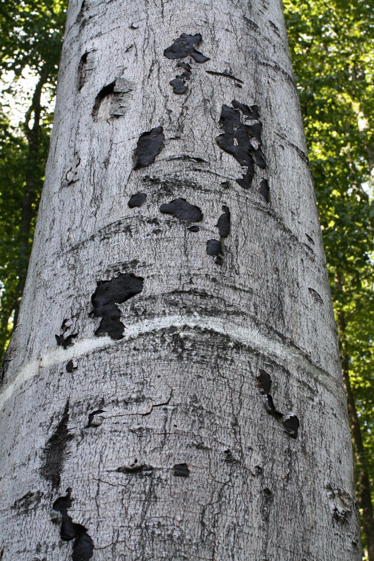 Čierny povlak pod rozpraskanou kôrou.