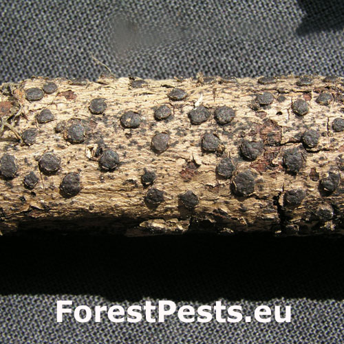 Stróma v kôre je vankúšikovitá, kruhovitého pôdorysu, 2 – 4 mm veľká.