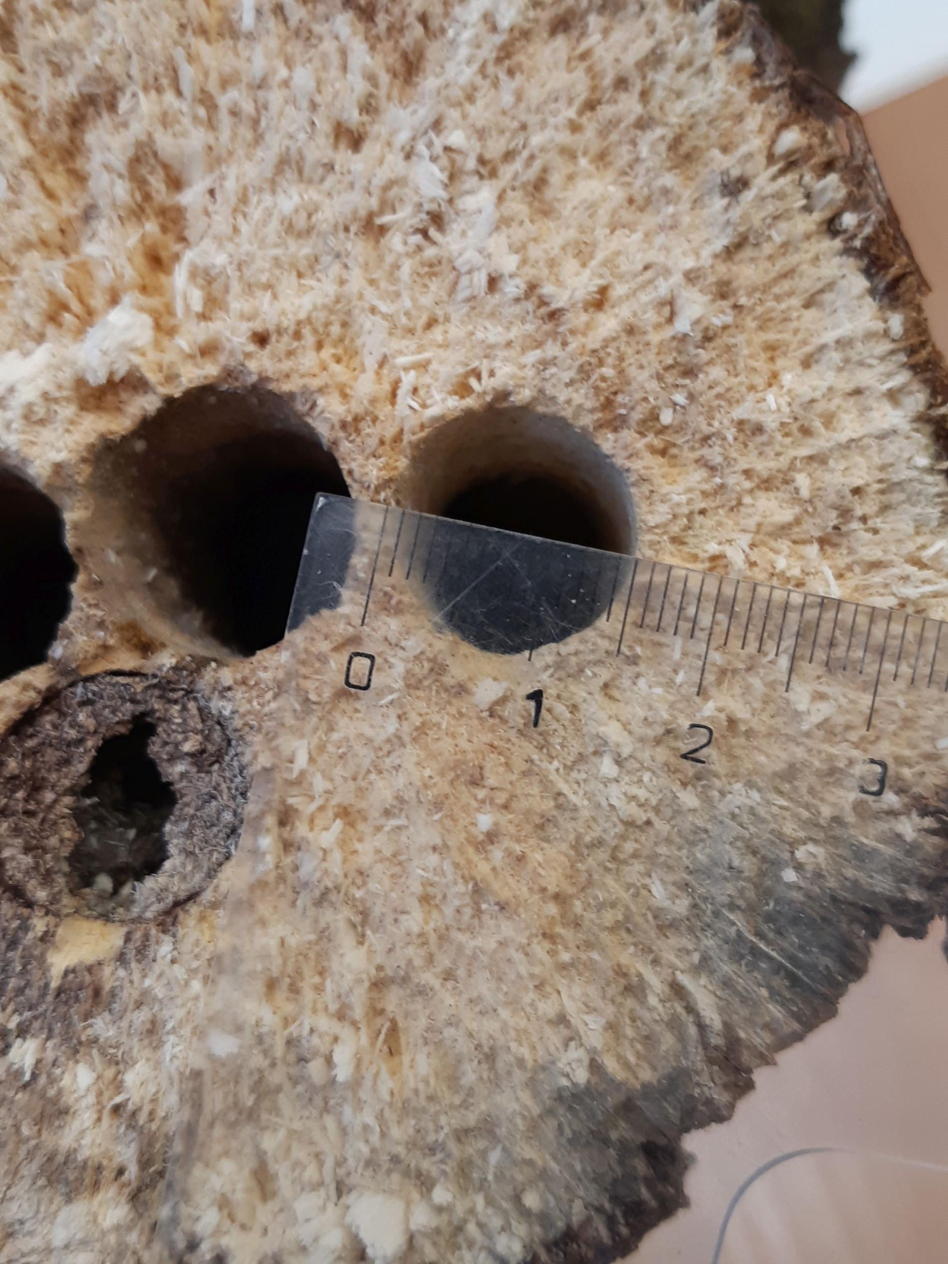 Nie je to škodca, ale vytvára zaujímavé požerky so vstupným otvorom priemeru 11 až 12 mm a s vnútorným priemerom až 15 mm. Dĺžka požerku v dreve môže dosahovať až 30 cm. Pri budovaní požerku sa hromadí pod otvorom drvina.