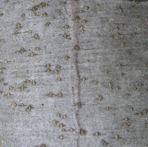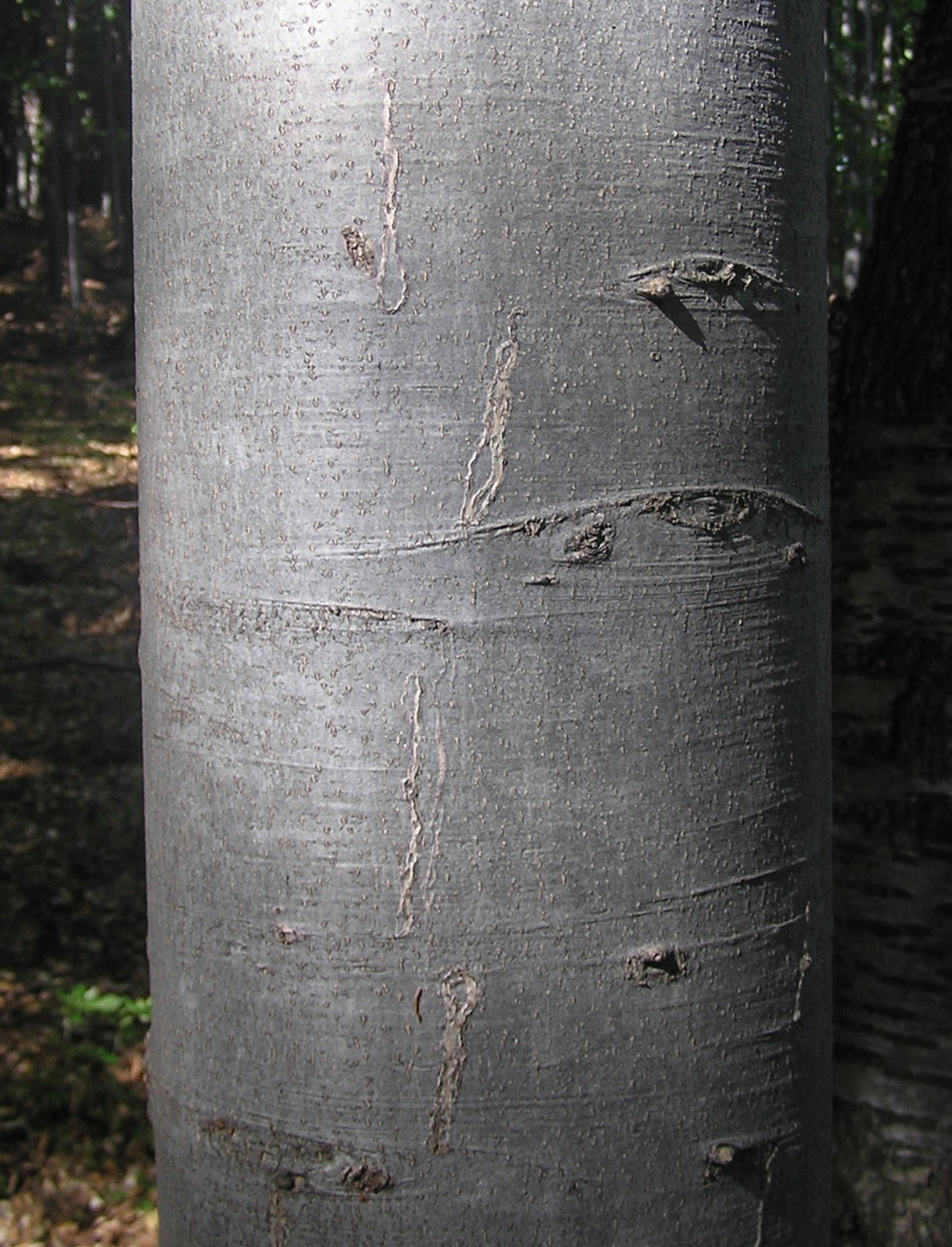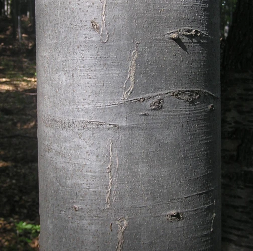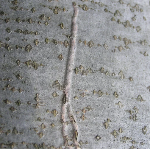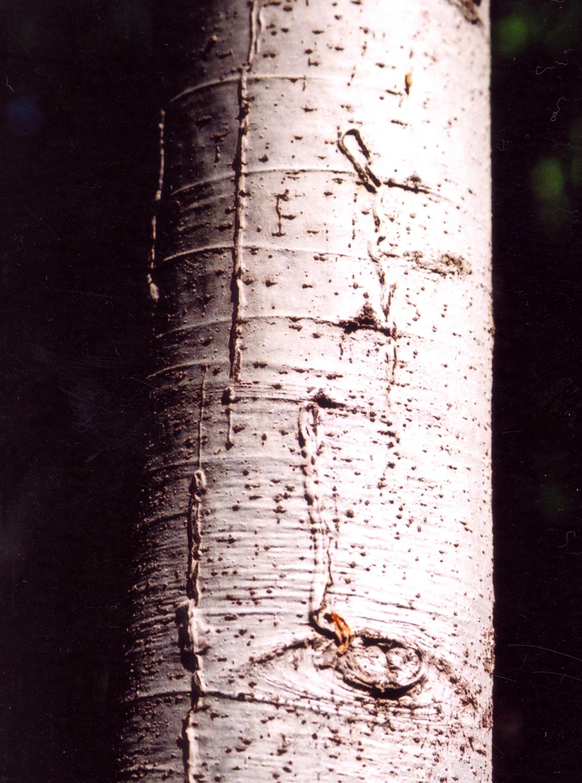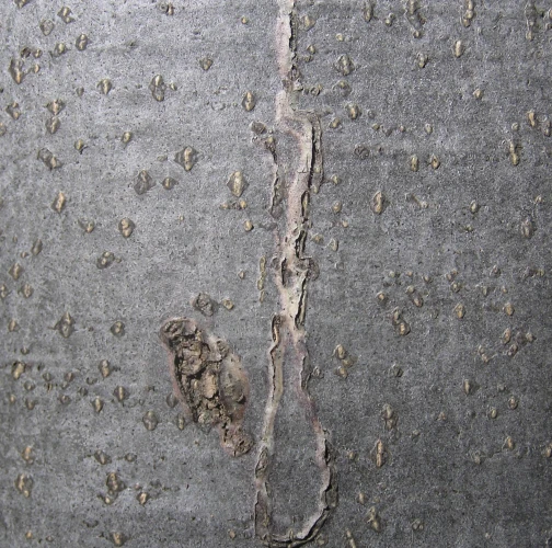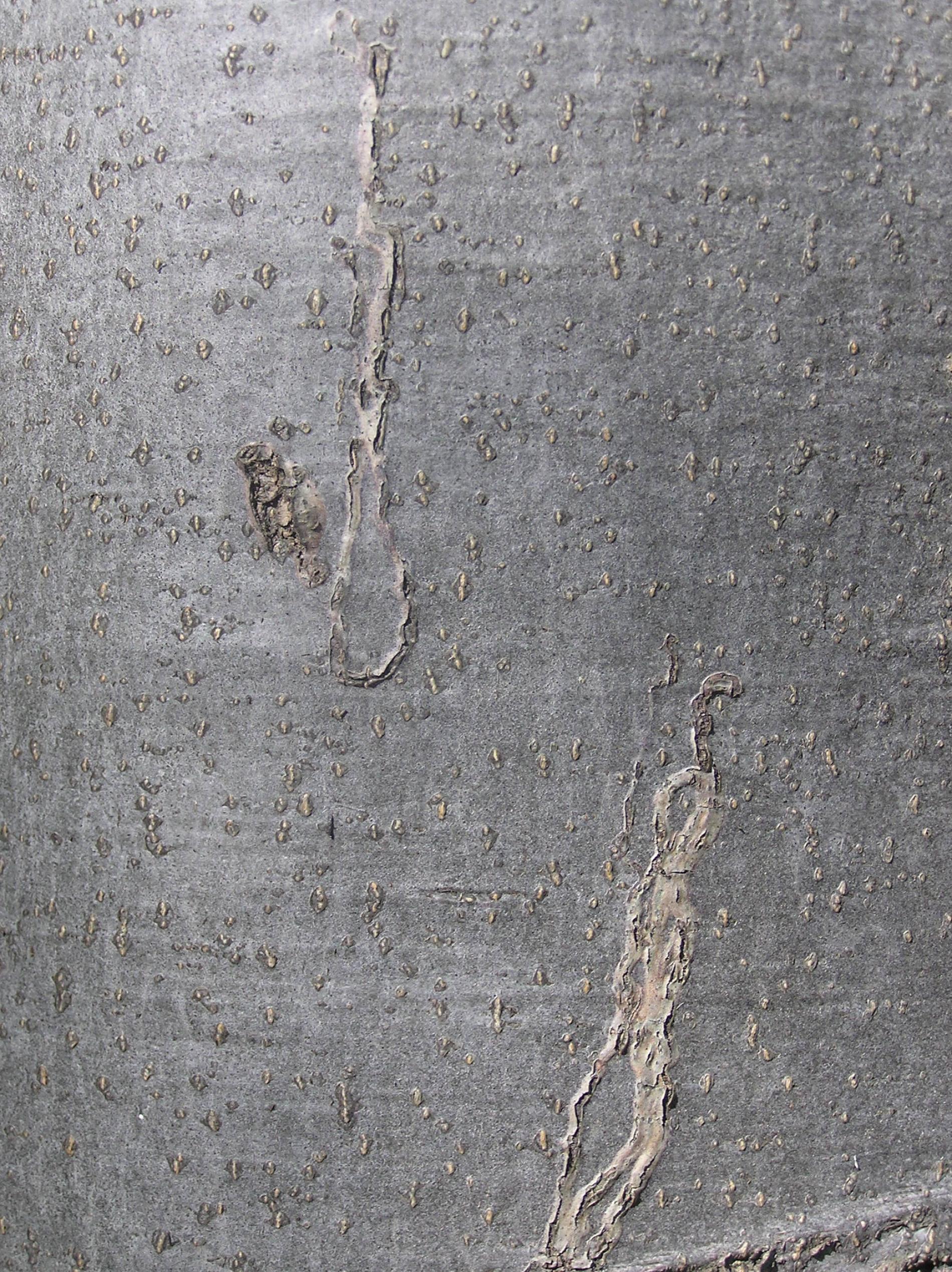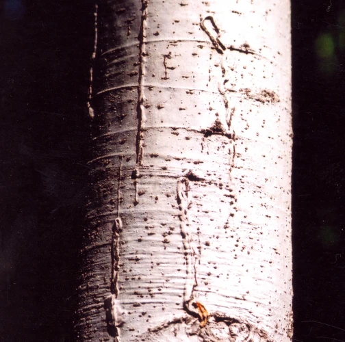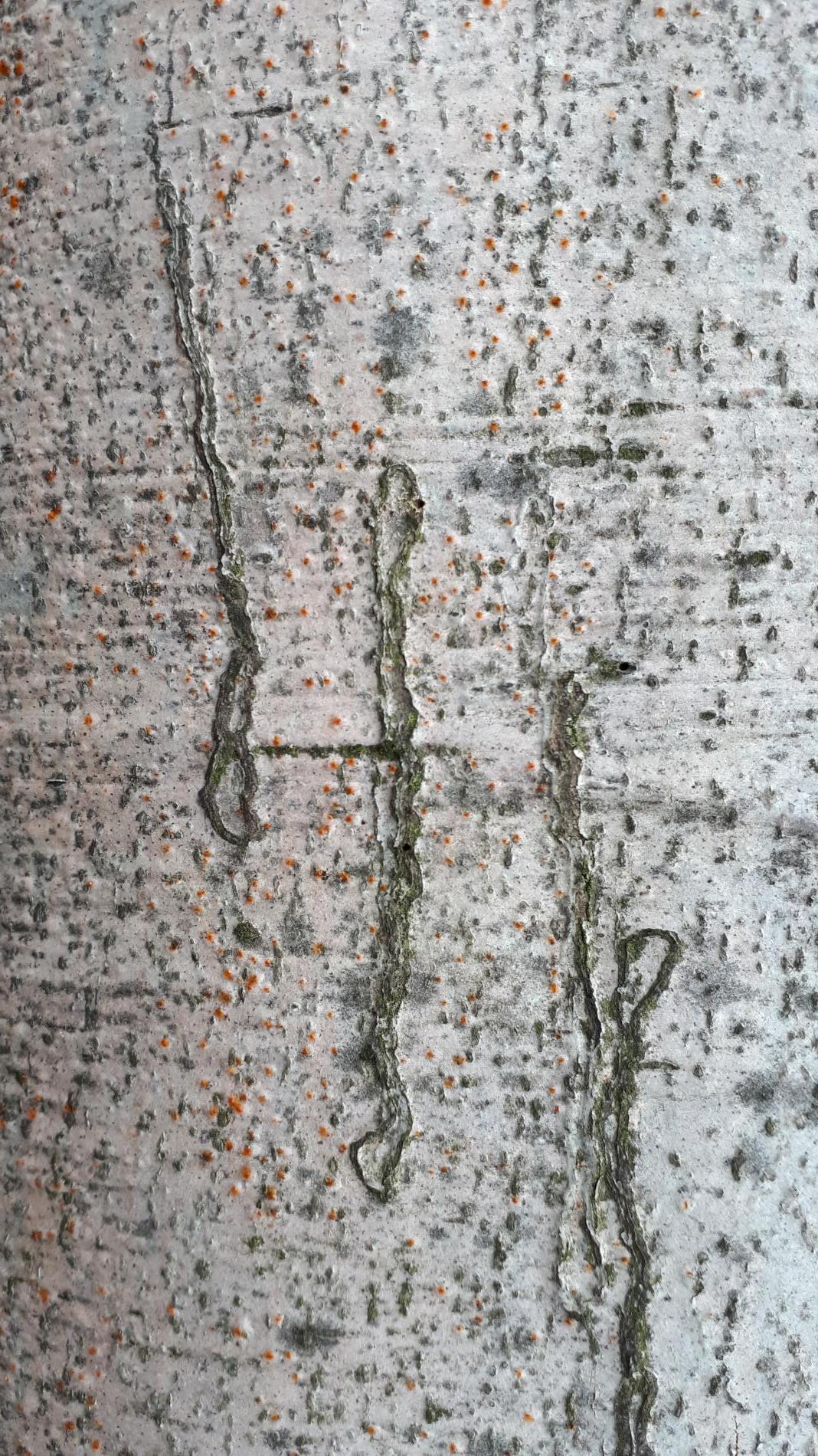 Požerok pod kôrou, viditeľný aj z vrchnej strany kôry na kmeni bukov.
