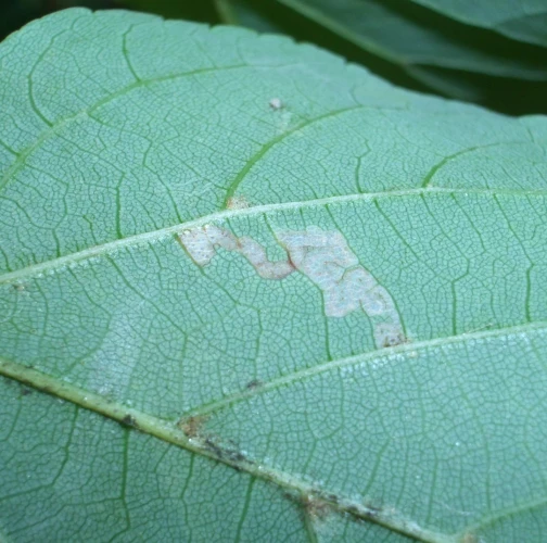 Listy vykazujú postupne sa rozširujúce míny, začínajúce ako jemné chodbičky na povrchu, s úzkymi alebo rozptýlenými líniami trusu.