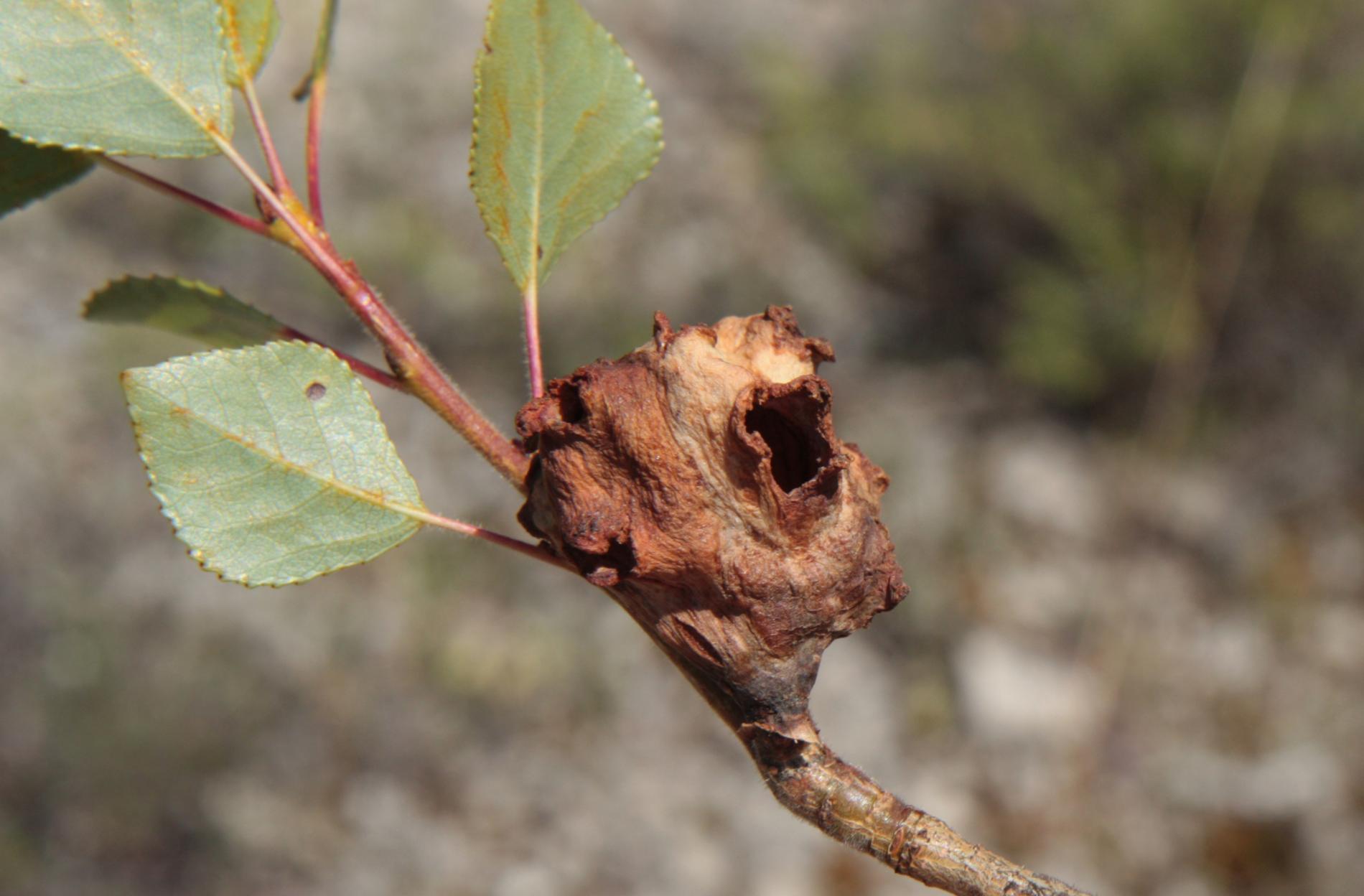Kolónia tejto vošky žije v pľuzgierovitej, tenkostennej, nepravidelne tvarovanej hálke s priemerom 3-4 cm. Zelená, neskôr hnedá až čierna. Hálka neopadáva a vydrží suchá na strome niekoľko rokov.  Hostiteľskou drevinou je topoľ čierny a jeho hybridy. Hojnejšia na juhu Európy. Teplomilný druh.