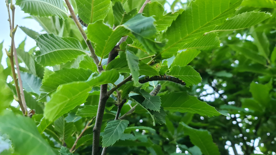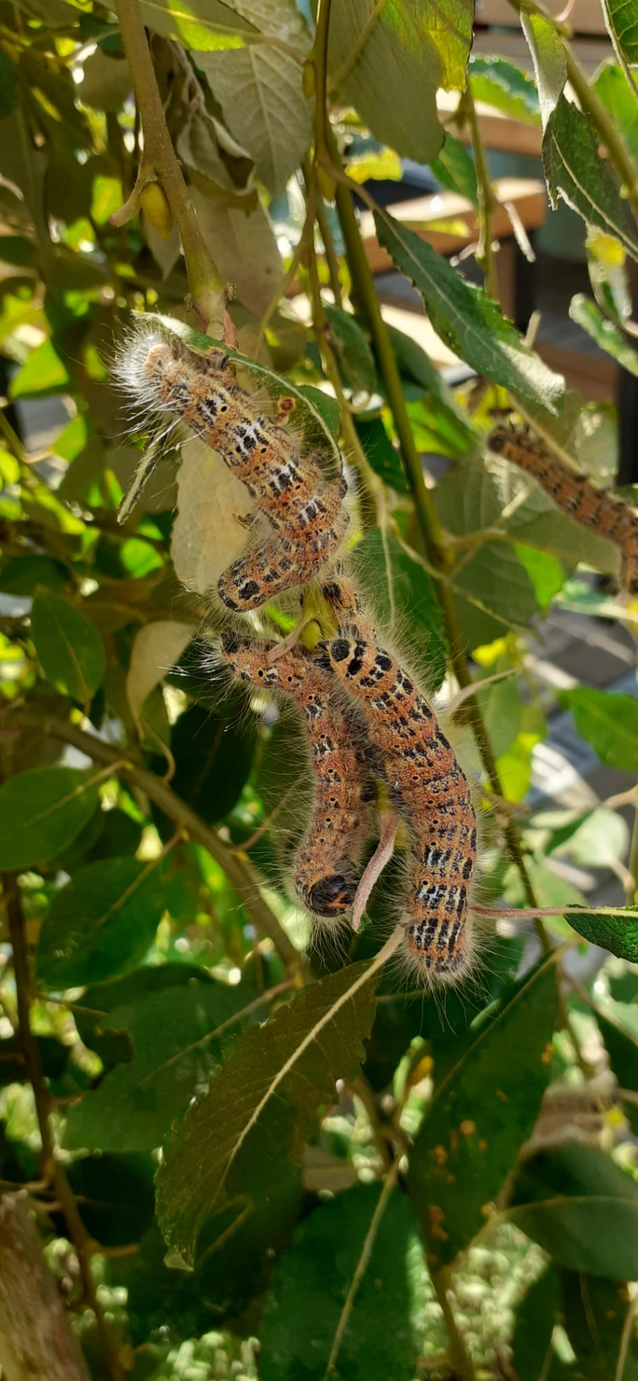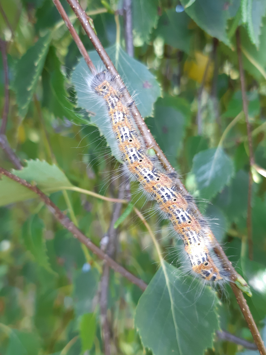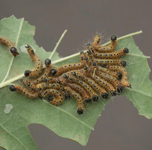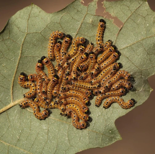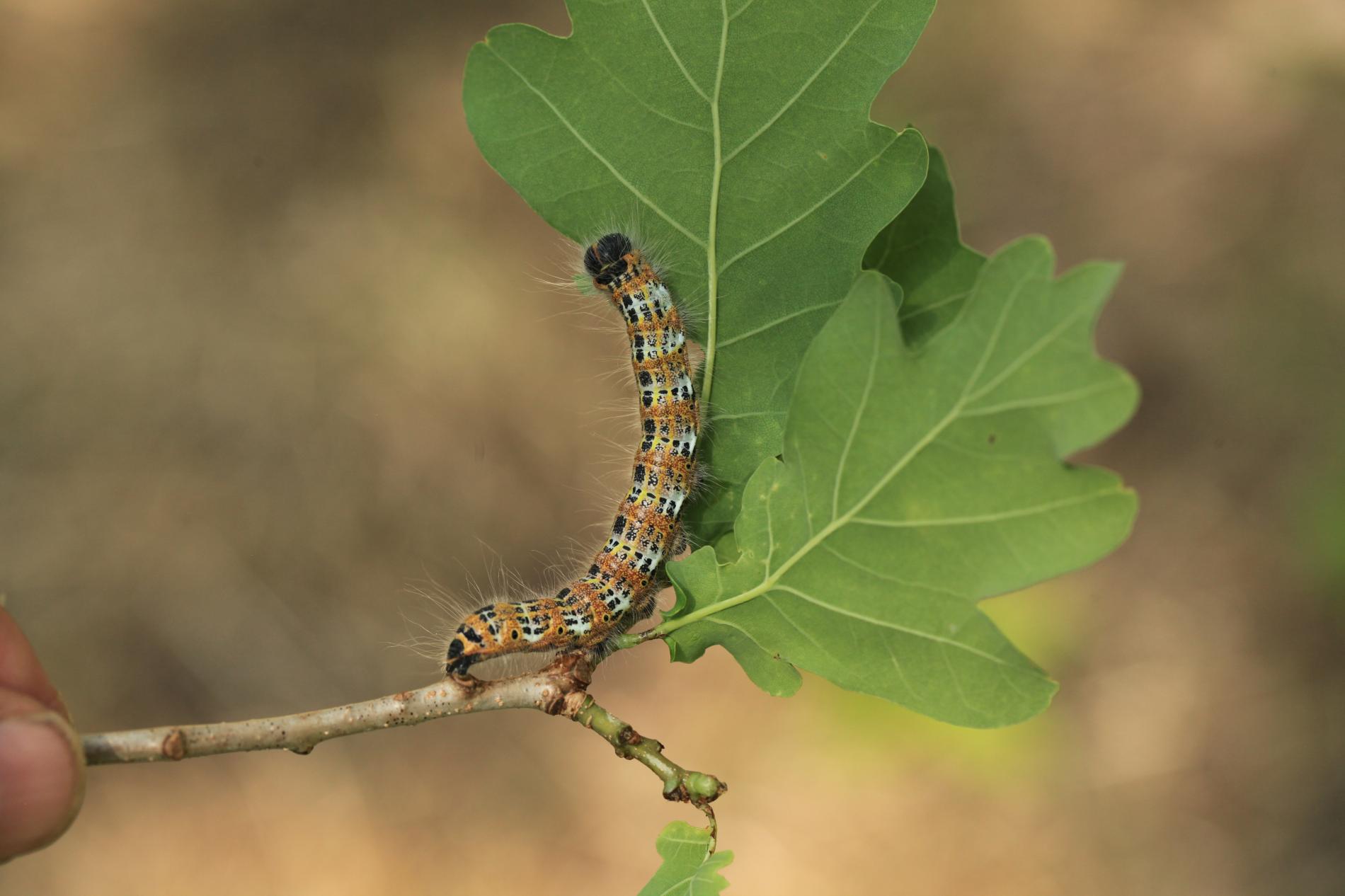 Larvy sú pestro sfarbené s čiernymi, biely a žltými pásmi.
