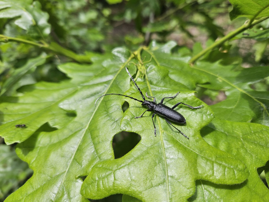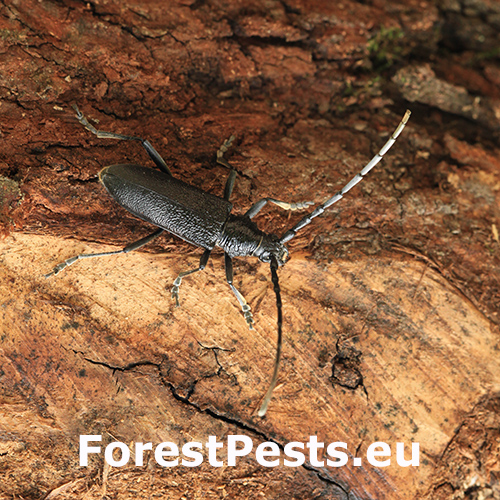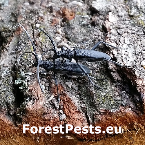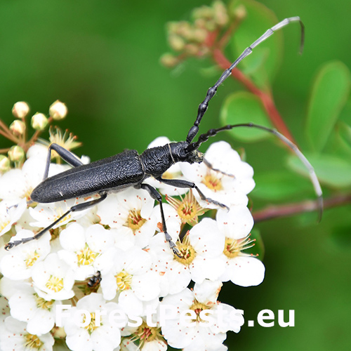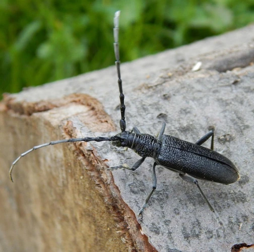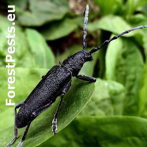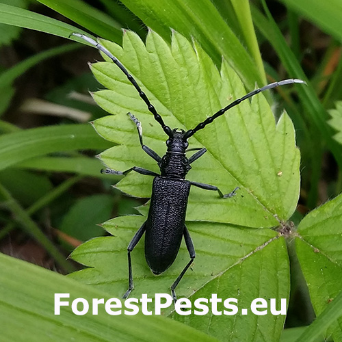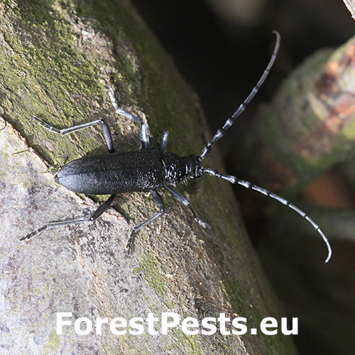 Veľký čierny chrobák s dlhými tykadlami. Imágo je veľké 17 - 28 mm. Žije od mája do augusta. Na niektorých miestach je hojný začiatkom leta, najmä v teplejších listnatých lesoch stredných a nižších polôh. Imága lietajú v okolí skládok dreva. Larvy žijú pod kôrou stromov, kde vyžierajú chodby. Požerok sa končí kuklovou kolískou vyhĺbenou 5-10 cm hlboko v dreve. Žije na duboch, bukoch, vŕbach, čerešniach, gaštane jedlom, vŕbach a iných drevinách.