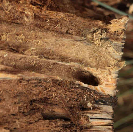 Vyvíja sa starých pňoch – veľké oválne výletové otvory. Poškodenie na zdravých stromoch nespôsobuje.