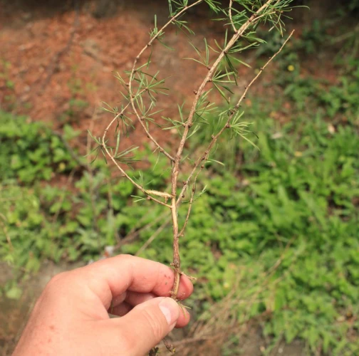 Na hynutí mladín smrekovcov v rokoch 2001, 2005 a 2014 mala značný podiel (okrem vošiek a brvuľky Willkommovej) aj mikroskopická huba Fusarium subglutinans (Wollenweb. & Reinking) - (pracovný názov fuzárium lepkasté). Táto huba vo svete (USA, Mexiko, Juhoafrická republika, Španielsko) spôsobuje rakovinu borovice lúčovitej (P. radiata D. Don) a to s vážnymi ekonomickými dôsledkami. Vstupnou bránou infekcie sú poranenia najmä prírodného pôvodu ako cicanie vošiek, krúpy, a pod. Spóry sa vytvárajú na kôre v oranžových kôpkach a sú prenášané vetrom alebo dažďovými kvapkami. Podkôrne pletivá sú odumreté už na jar, keď sa ihlice ešte ani nestihli úplne vyvinúť, na kôre sa vytvárajú pozdĺžne trhliny.