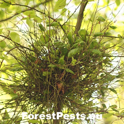 Na danom mieste zmnožením konárikov sa vytvárajú guľovité metly resp. čarovníky.