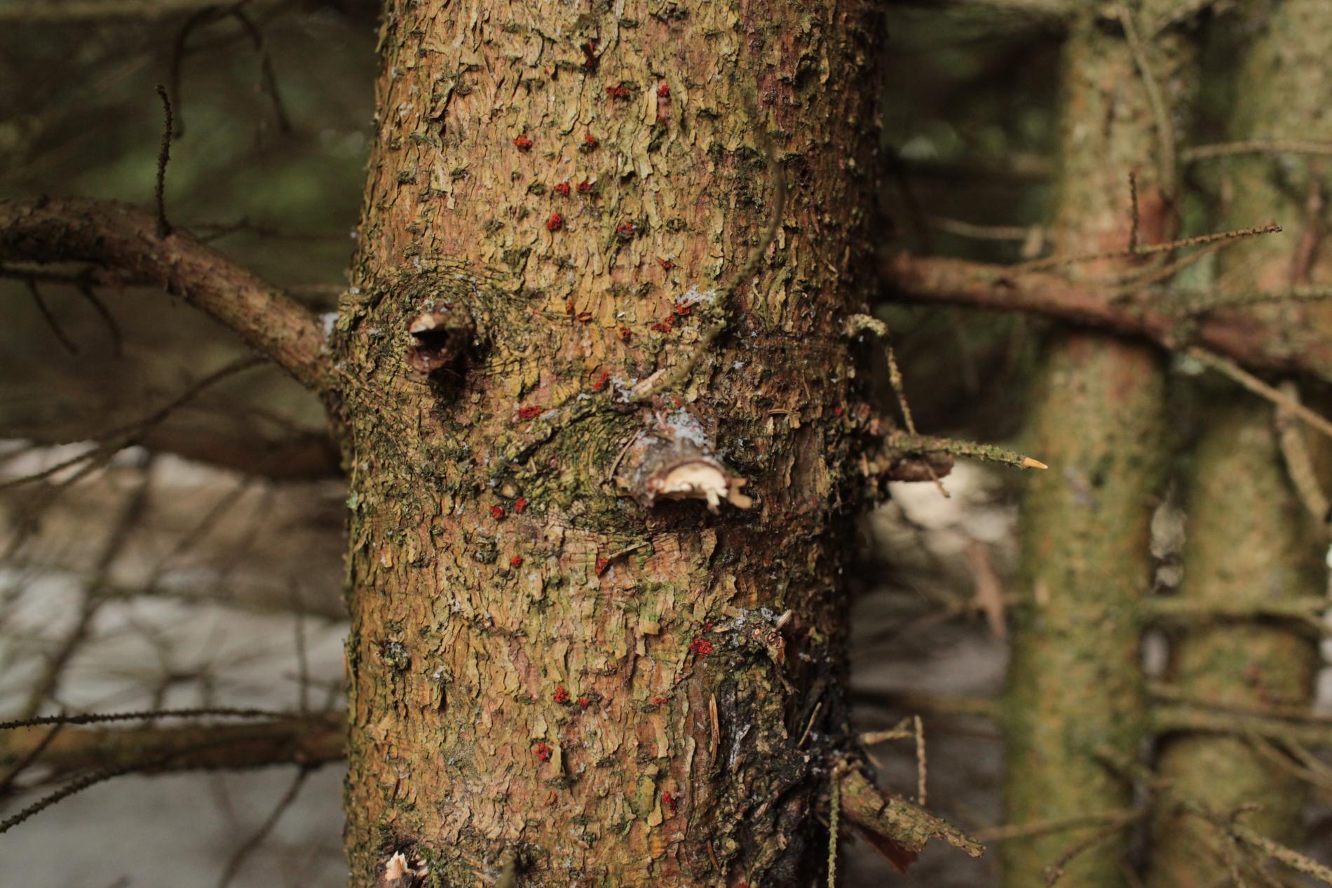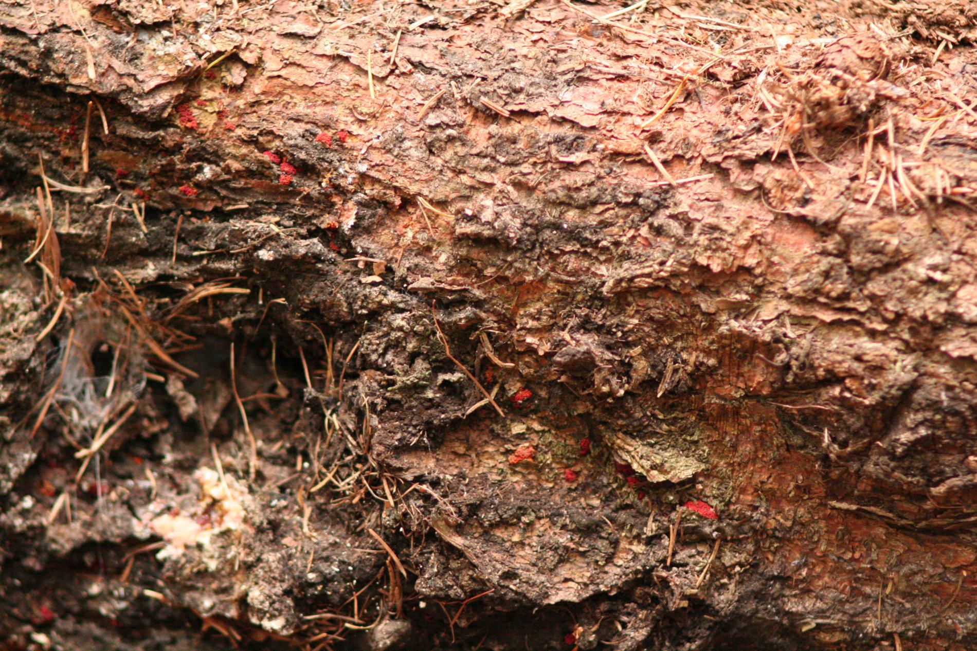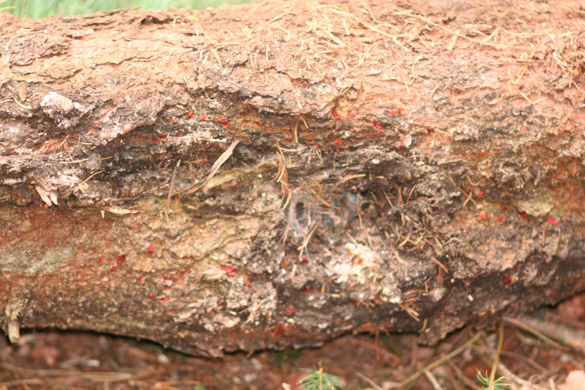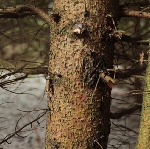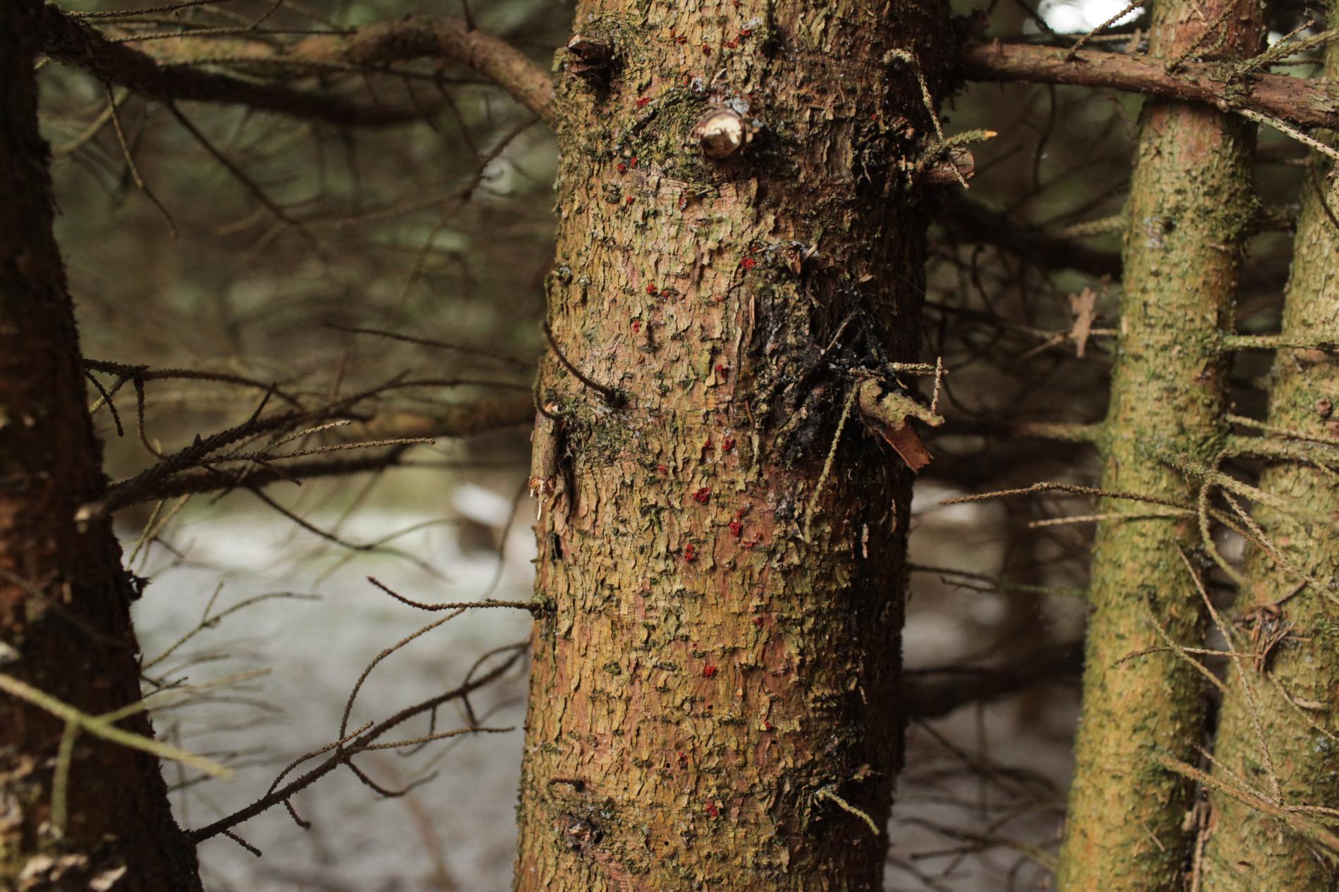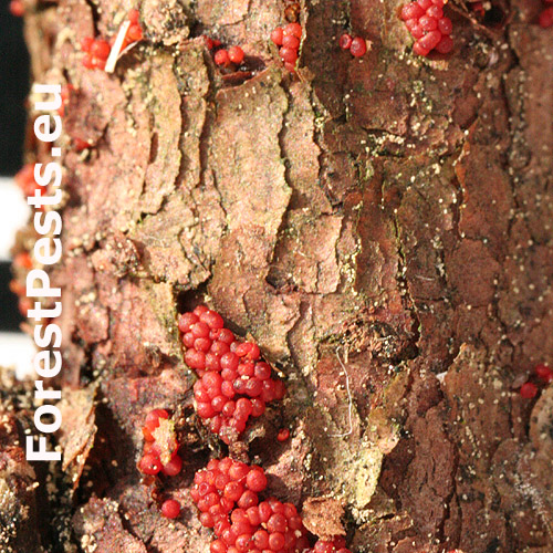 Huba spôsobuje „nekrotické ochorenie kôry smrekov“.