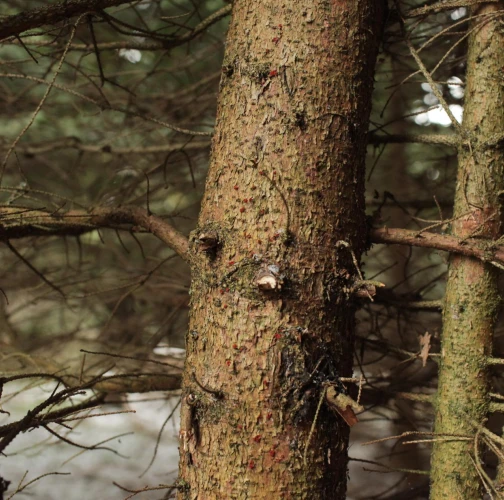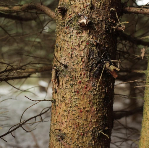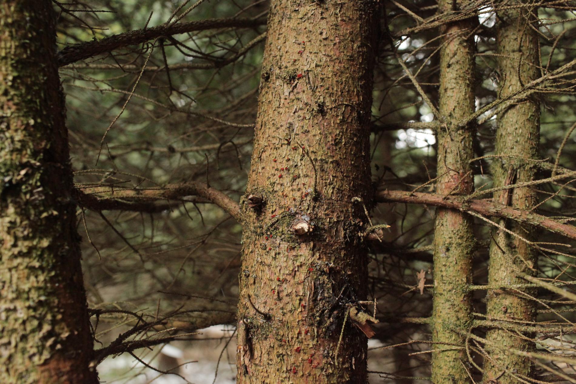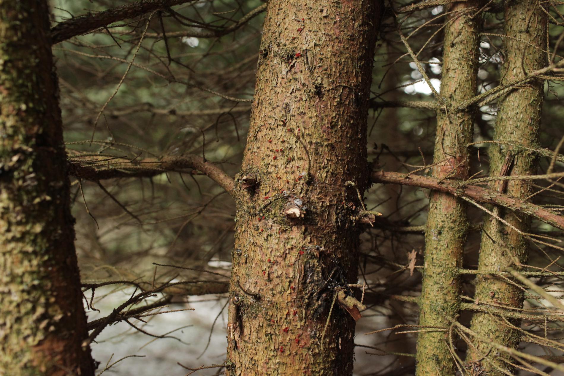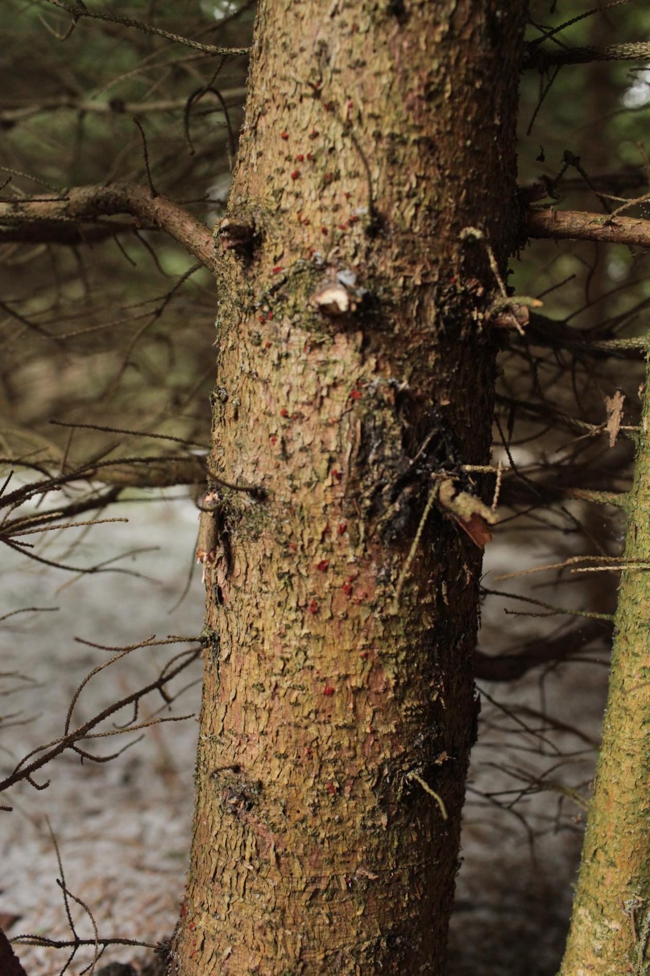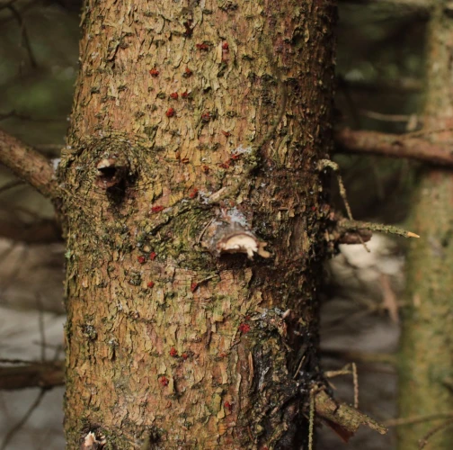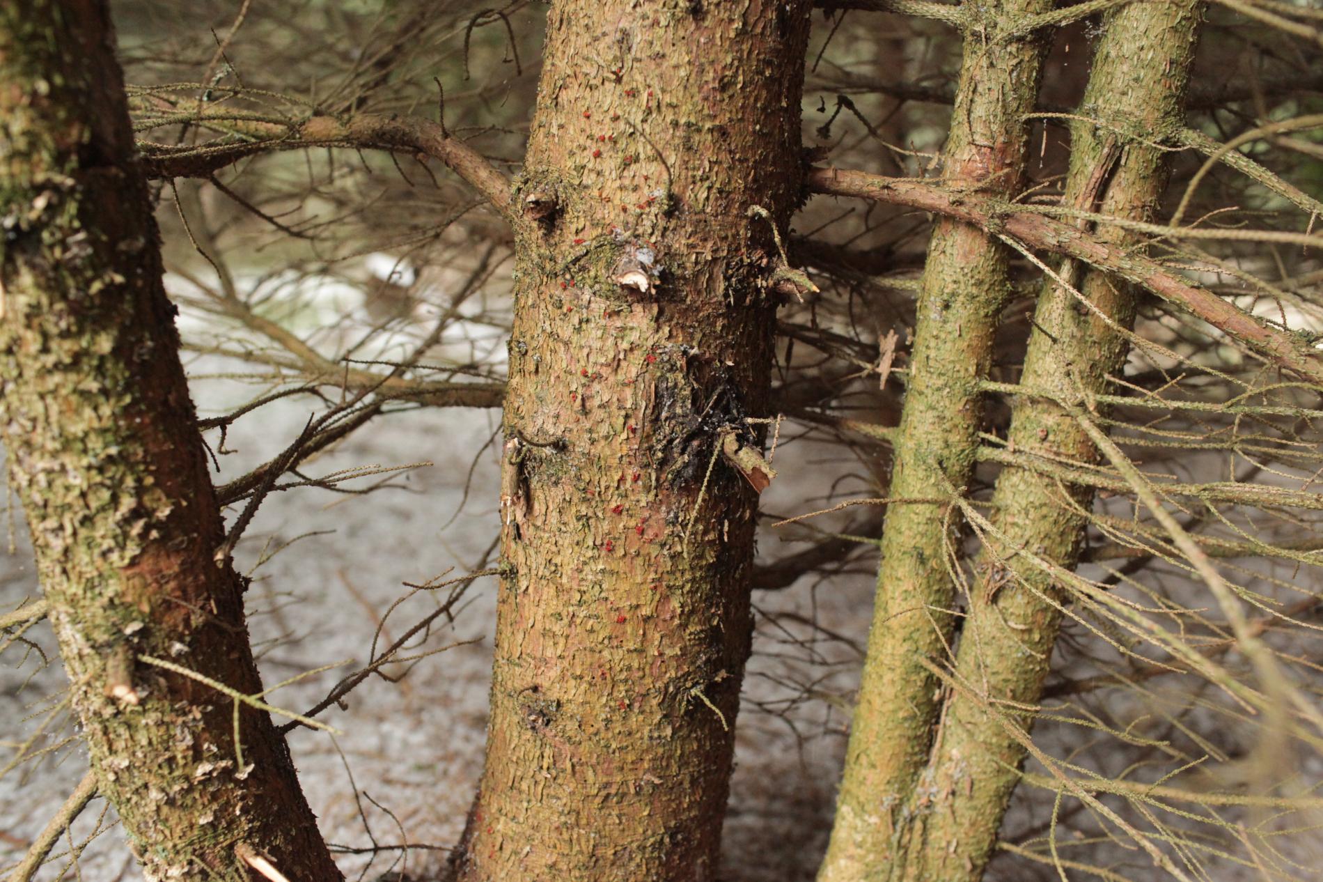Huba spôsobuje „nekrotické ochorenie kôry smrekov“.