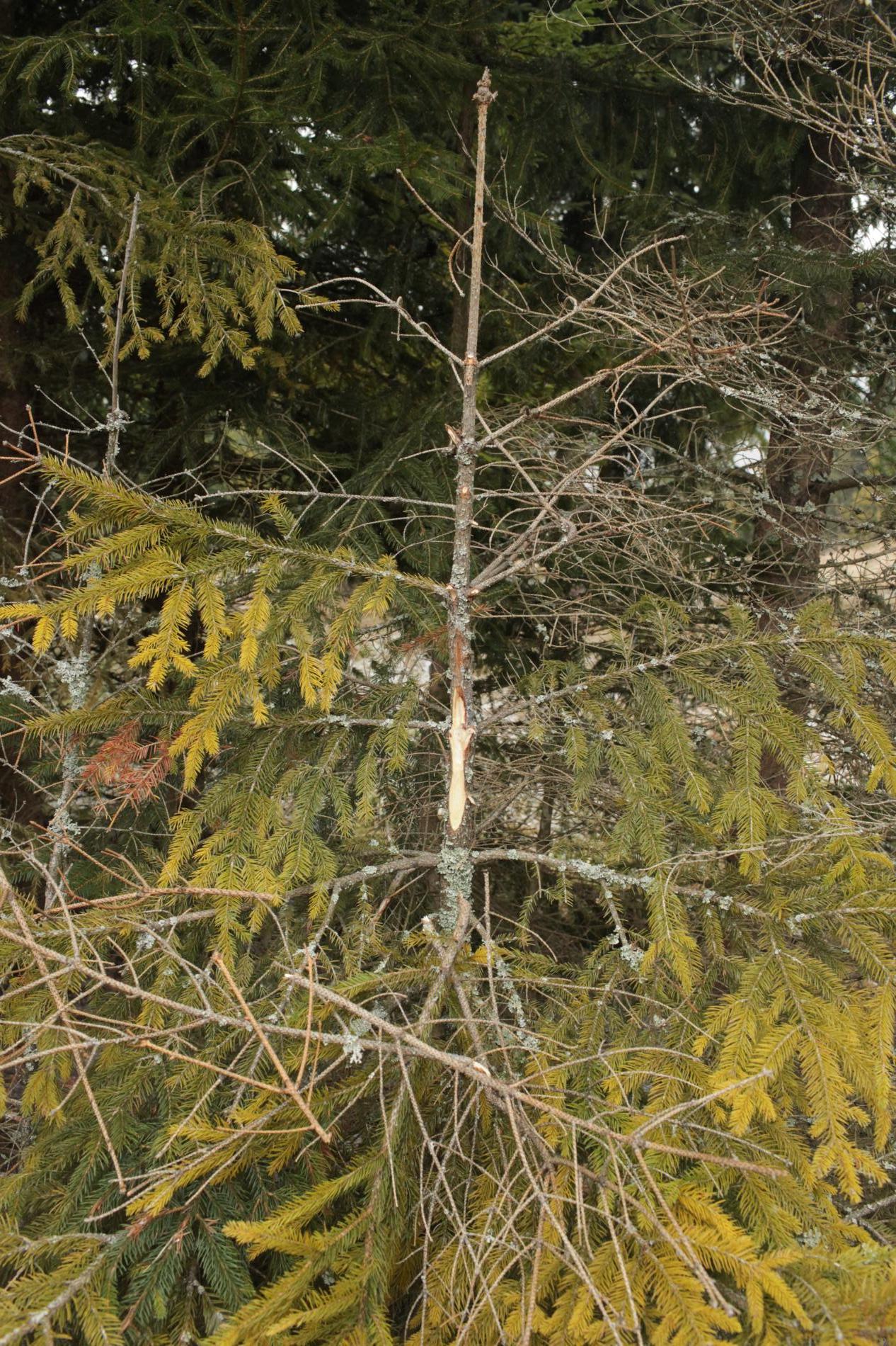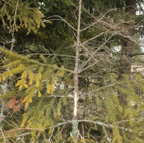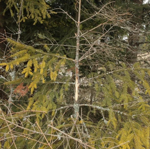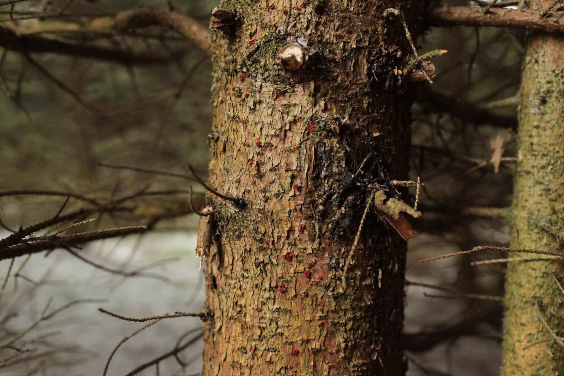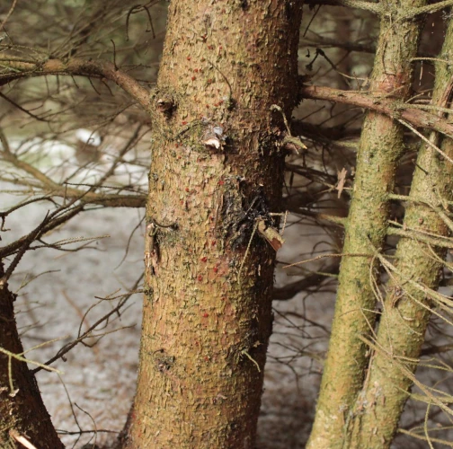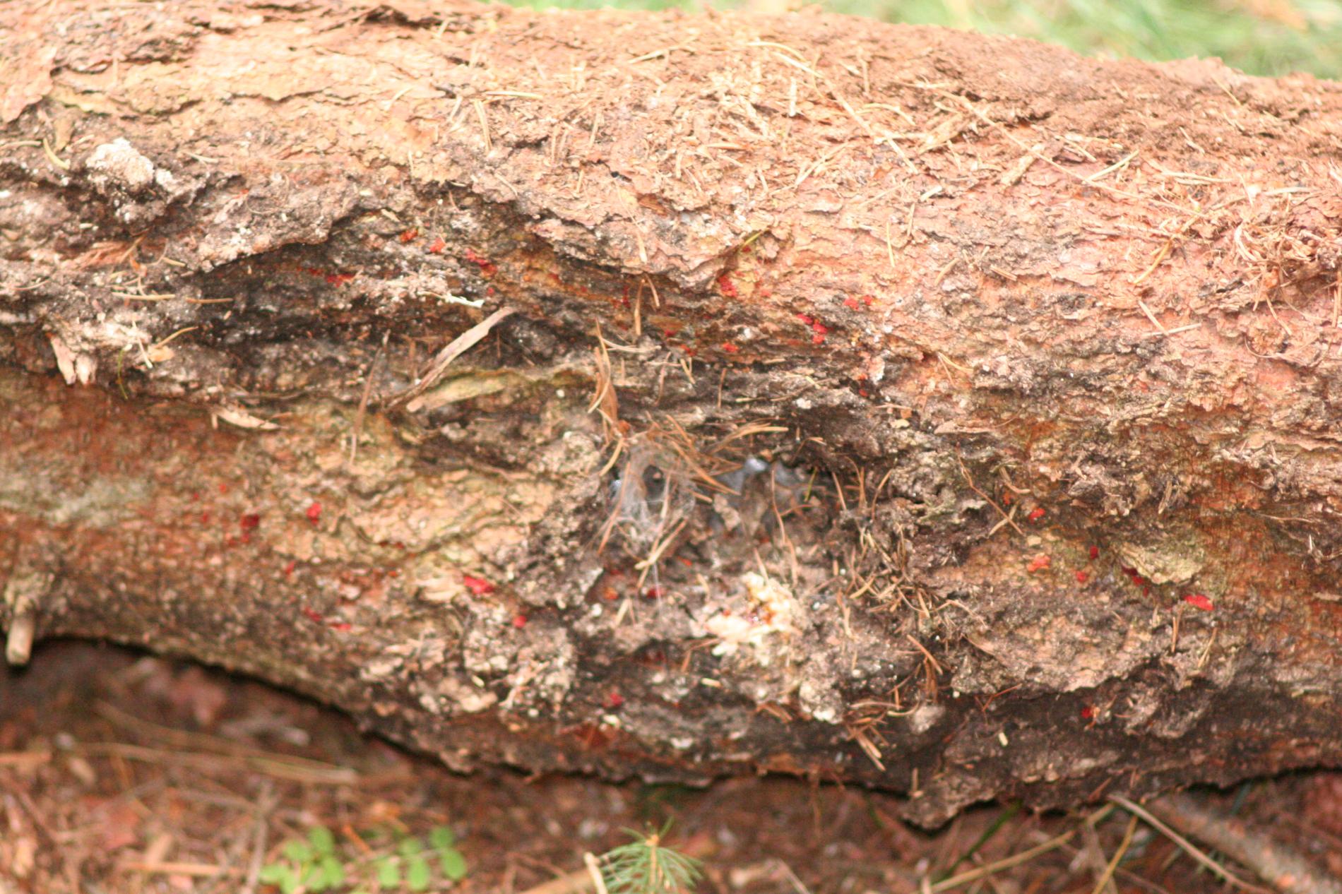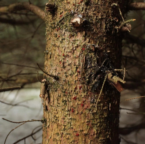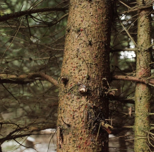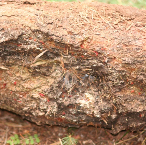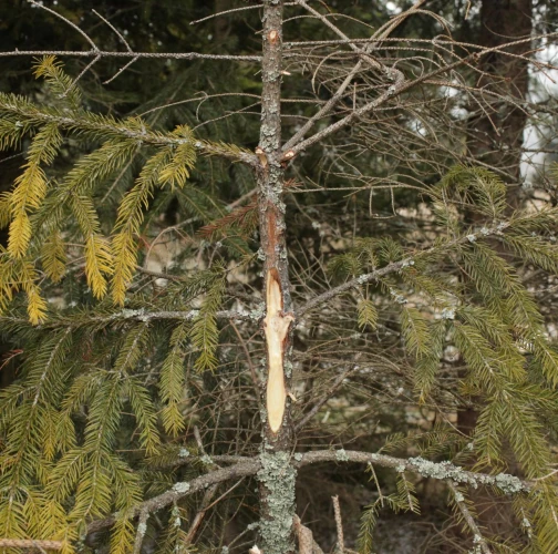 Huba spôsobuje „nekrotické ochorenie kôry smrekov“.
