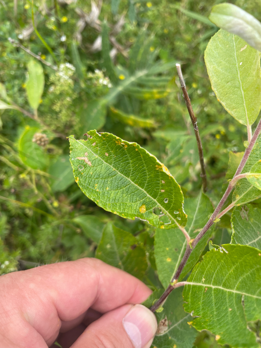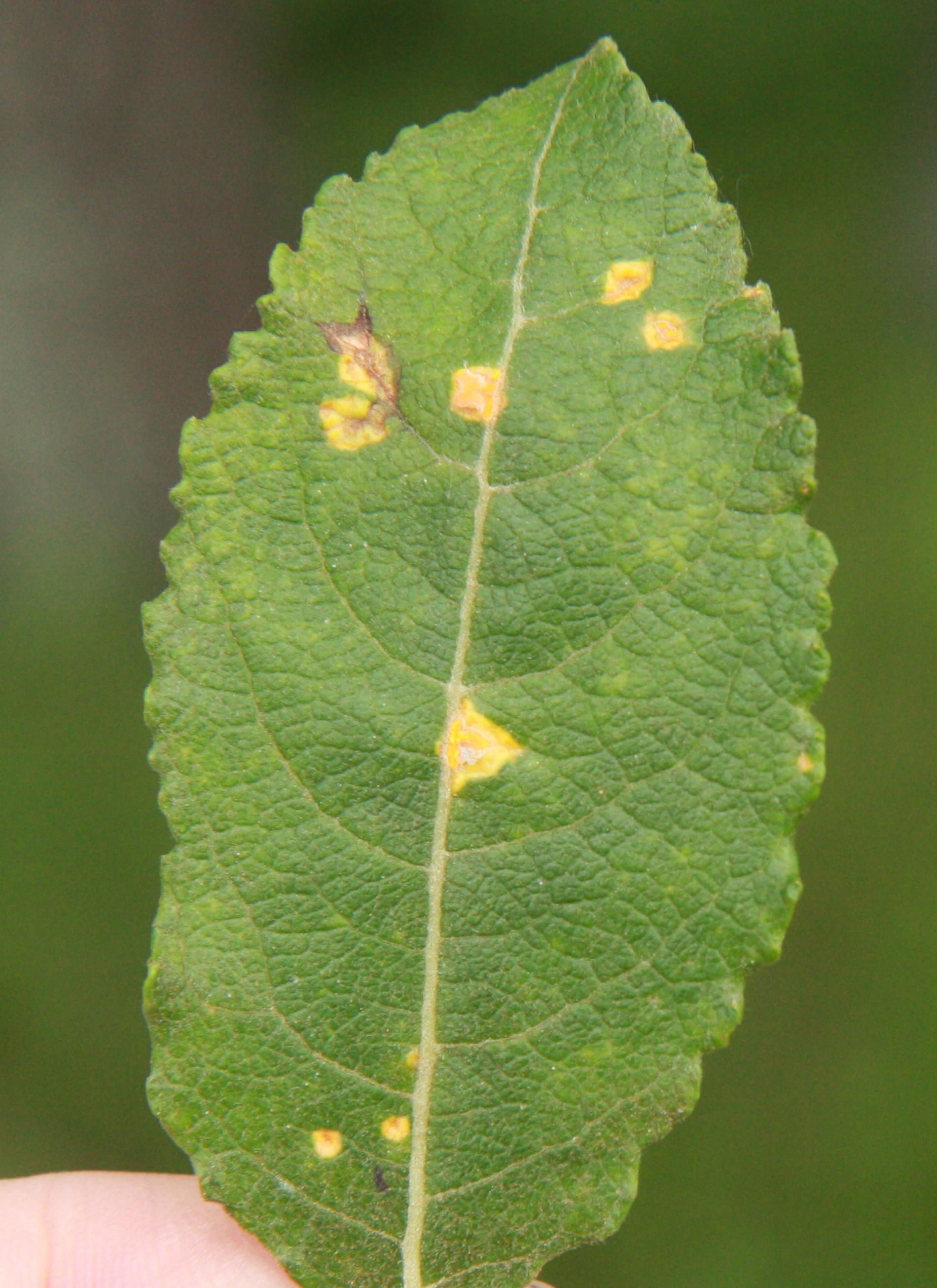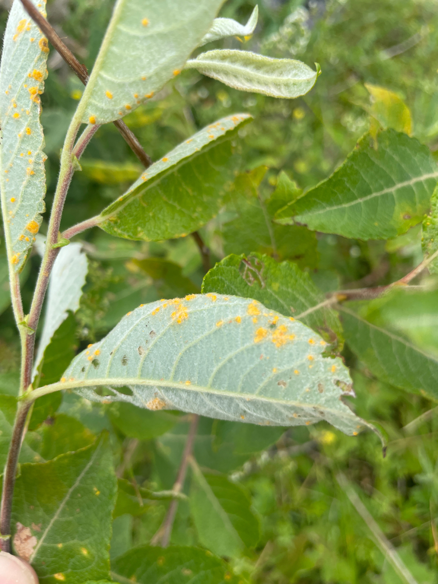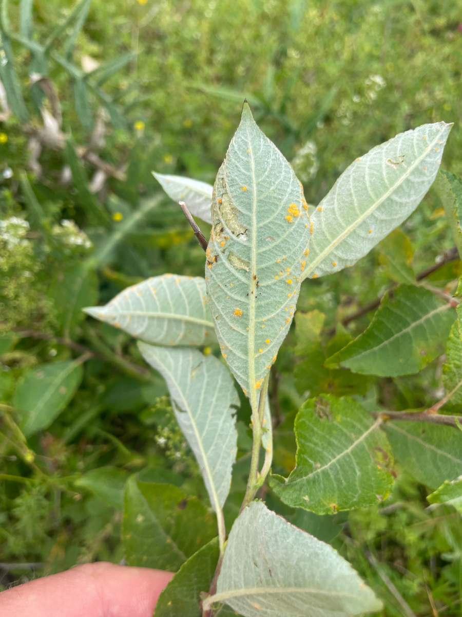 Medzihostiteľom hrdze je smrekovec opadavý, na ktorom sa vyskytujú spermogóniá a éciá (ložiská jarných spór). Urédiá (ložiská letných spór) a téliá (ložiská zimných spór) sa vyskytujú na spodnej strane listov vŕb už od polovice júna. Svojím výskytom znižujú asimilačnú plochu ako na smrekovcoch, tak aj na vŕbach. Pri silnej infekcii sú listy pokryté vrstvou žltého až oranžového poprašku, listy kučeravejú a uschýnajú. Výrazné ekonomické škody sa prejavujú na plantážach, kde dochádza k redukcii v tvorbe biomasy.