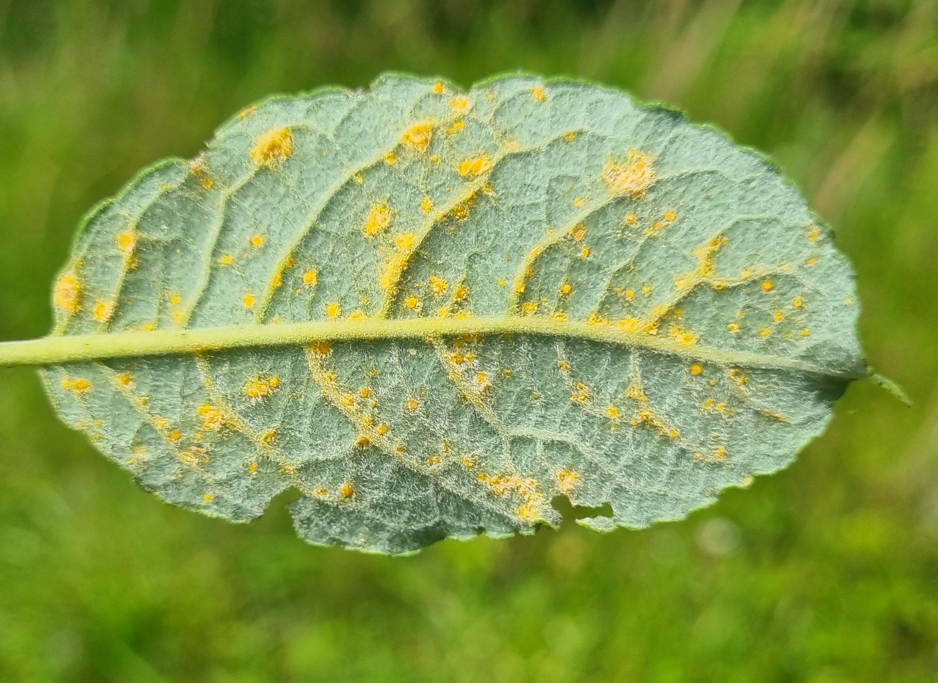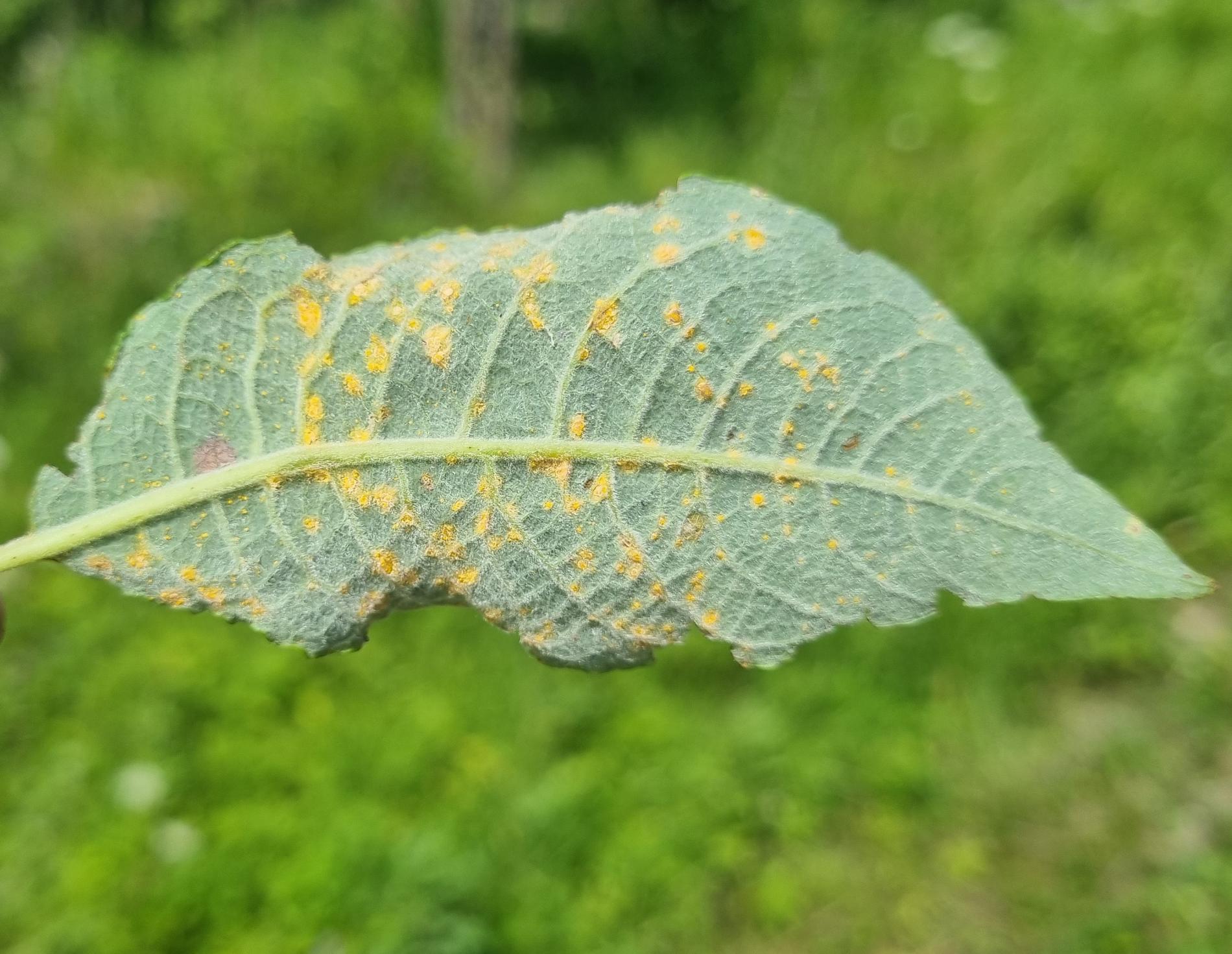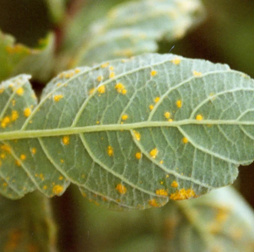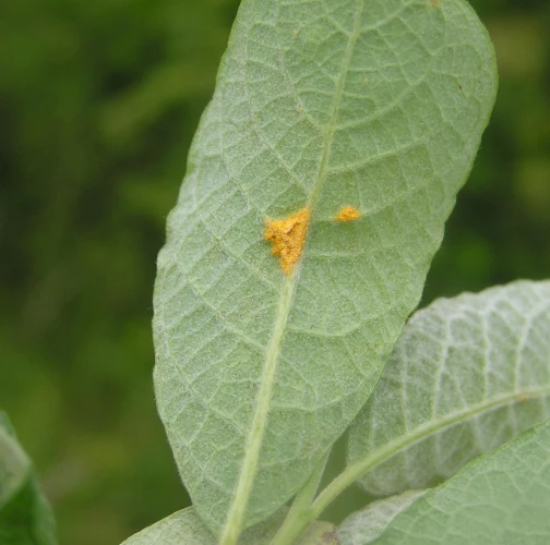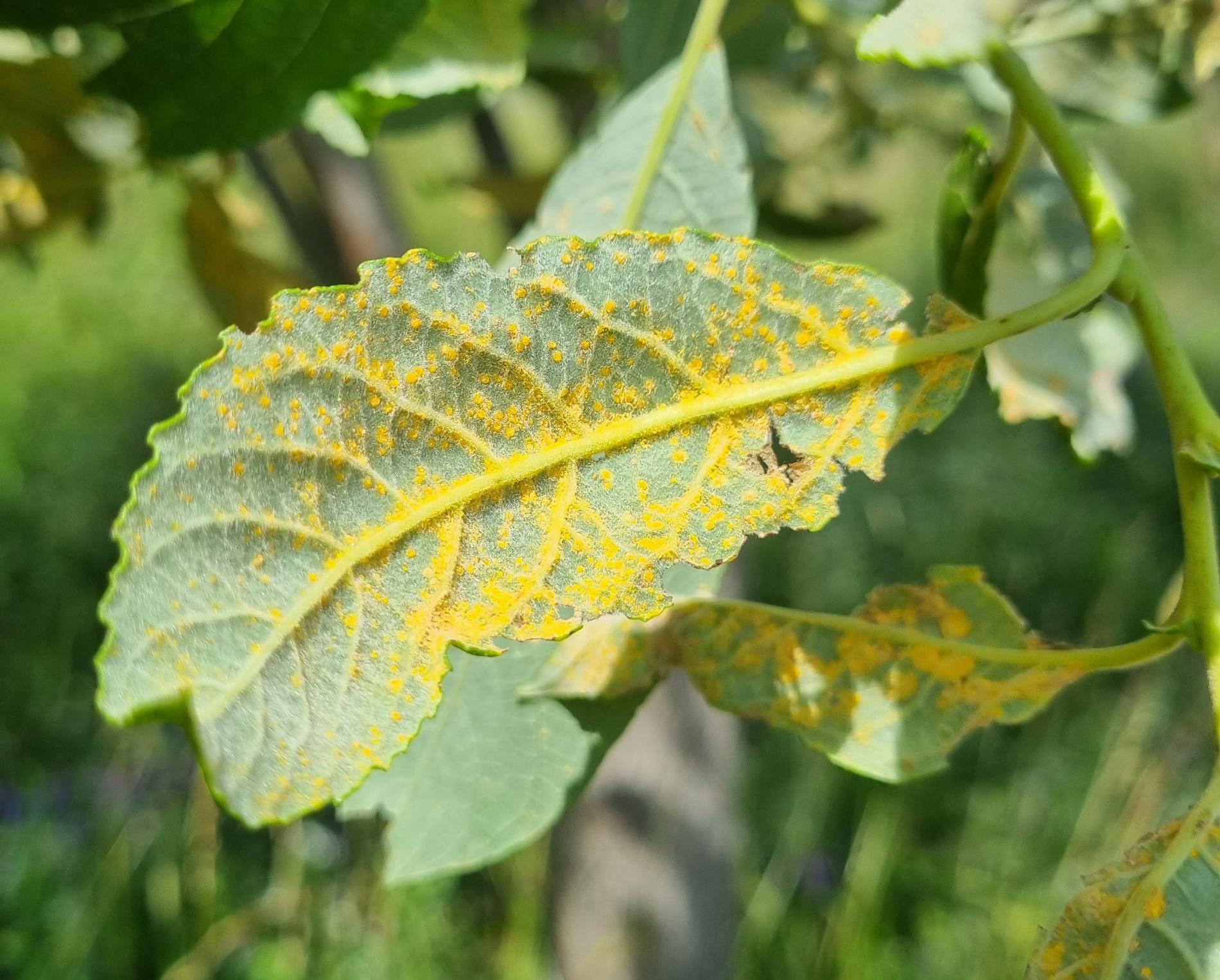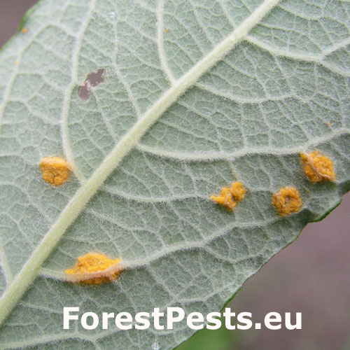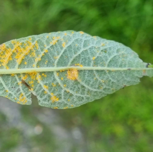Hrdzavé ohraničené kôpky na spodnej strane listov.