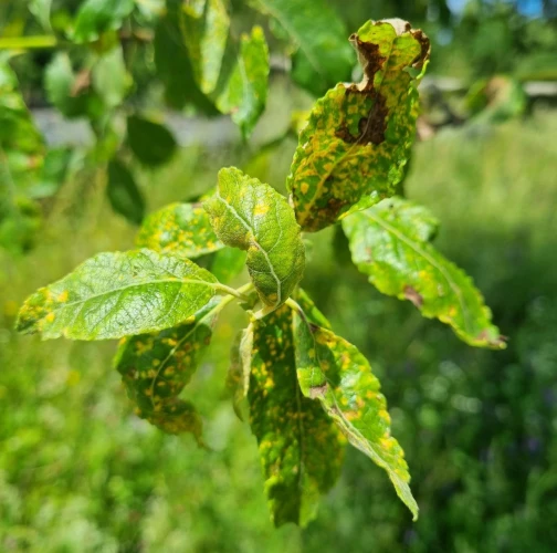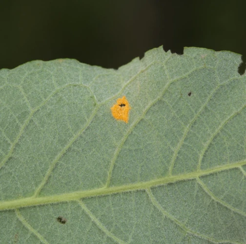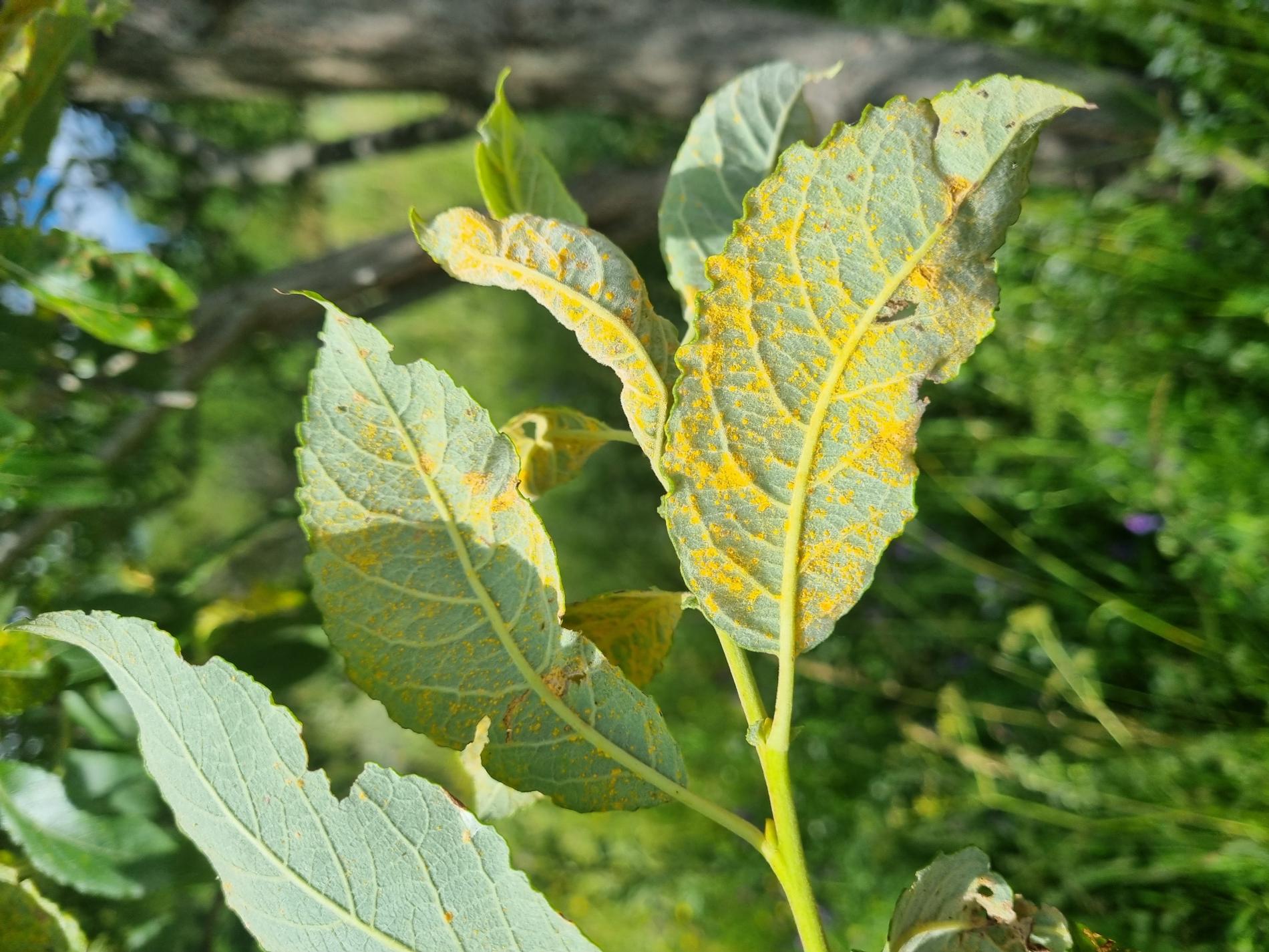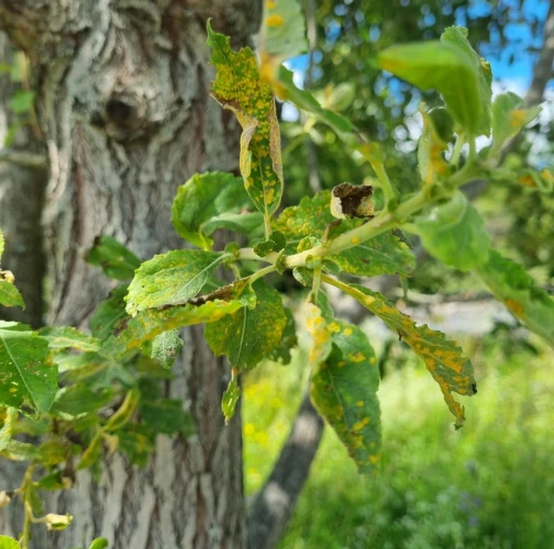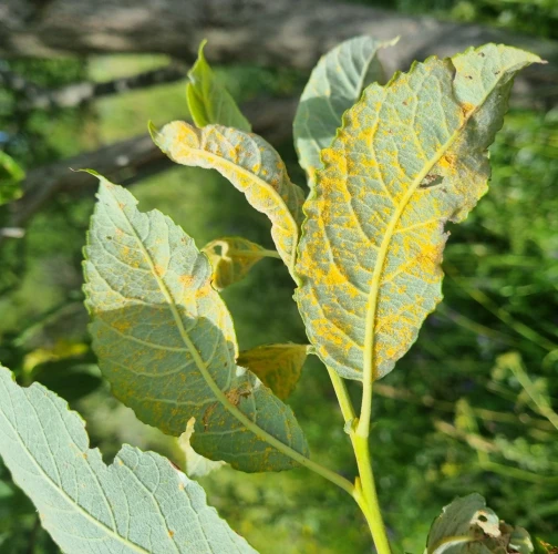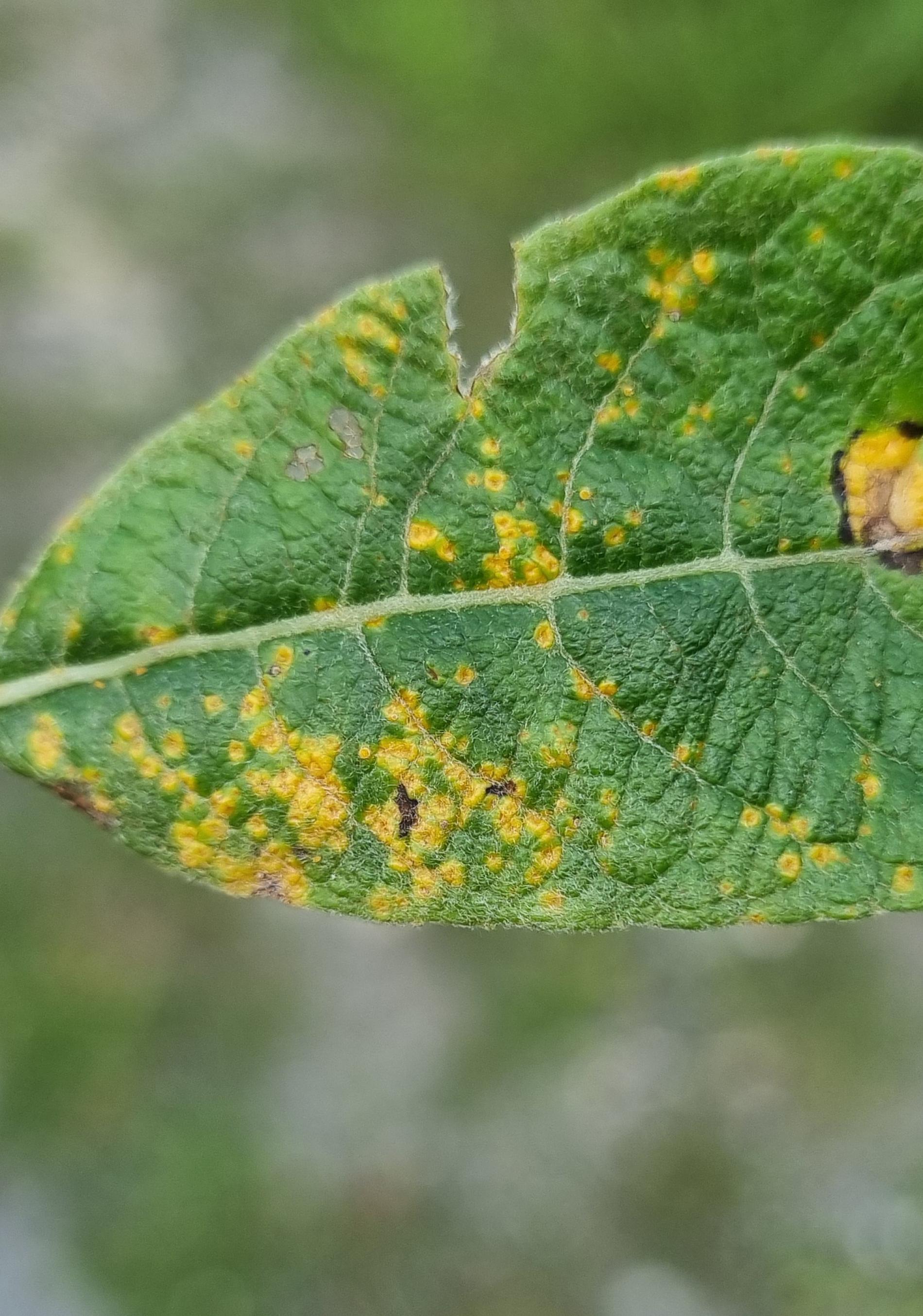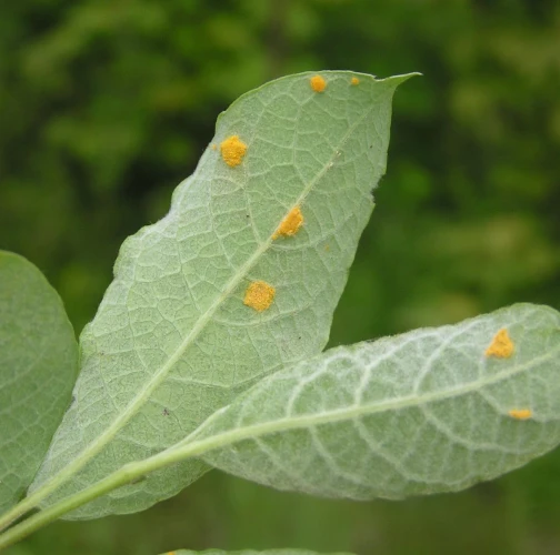 Hrdzavé ohraničené kôpky na spodnej strane listov.