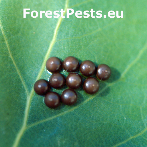 Na napadnutých stromoch sú výrazne poškodené listy, pričom často zostávajú iba stopky alebo hrubšie žilky.