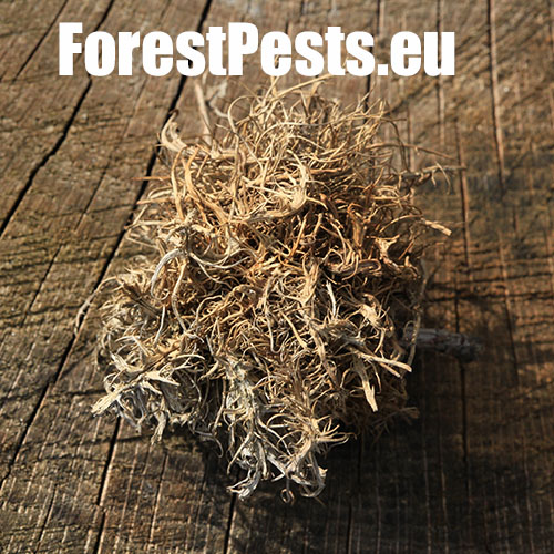 Túto efektnú hálku tvorí malá osička Cynips caputmedusae Hartrig. Púčik sa pôsobením enzýmov vylučovaných larvou škodcu mení na „chlpatú“ hálku s množstvom výbežkov. Vo vnútri sa vyvíja larva. Nepatrí medzi hojné druhy. Hálka vydrží na strome viac rokov. Diplolepis rosae L. tvorí veľmi podobné hálky na ružiach.