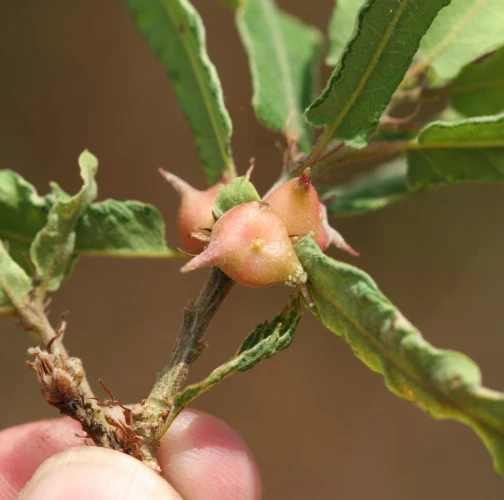 Nepravidelná hálka je veľká 8 – 15 mm.