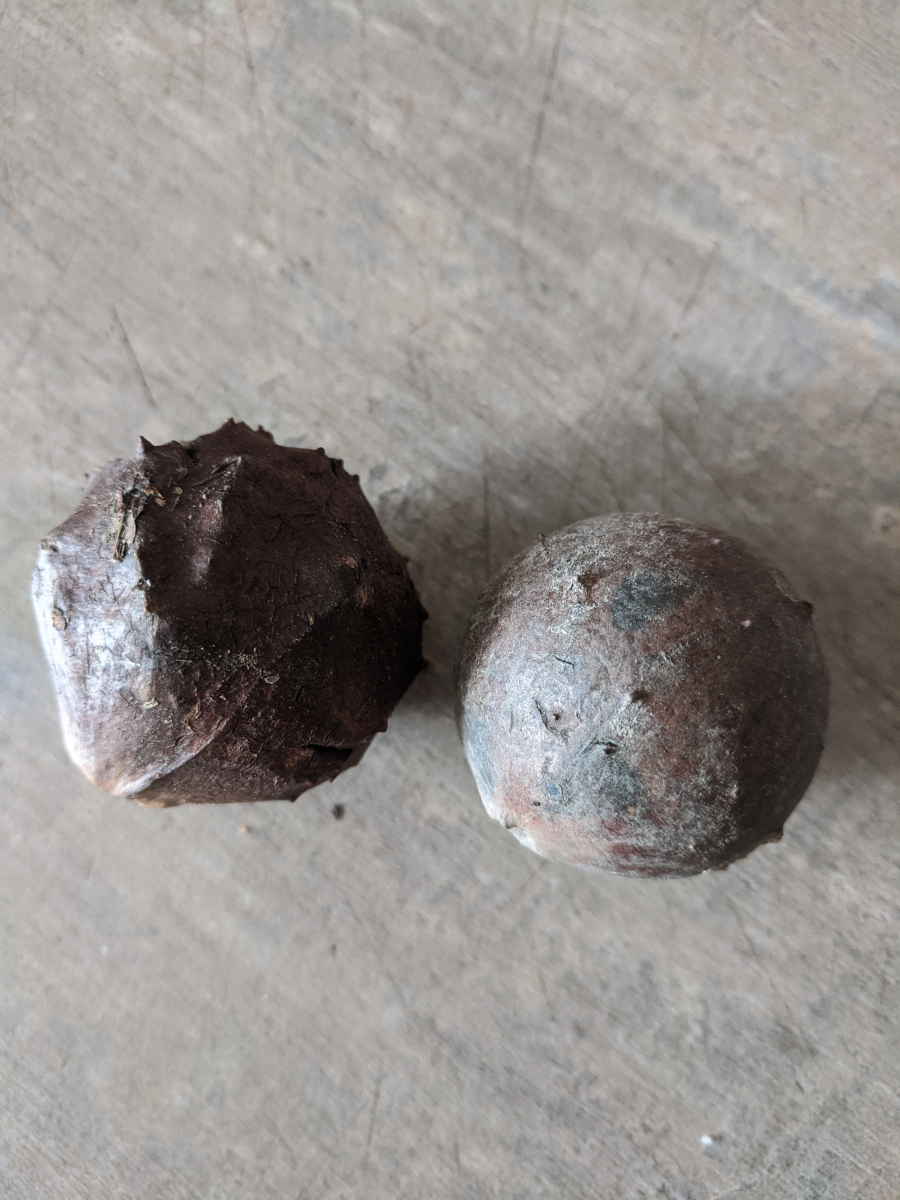 Na vetvičke sa tvorí pomerne pravidelne okrúhla hálka s malými výbežkami veľká 3-4,5 cm.