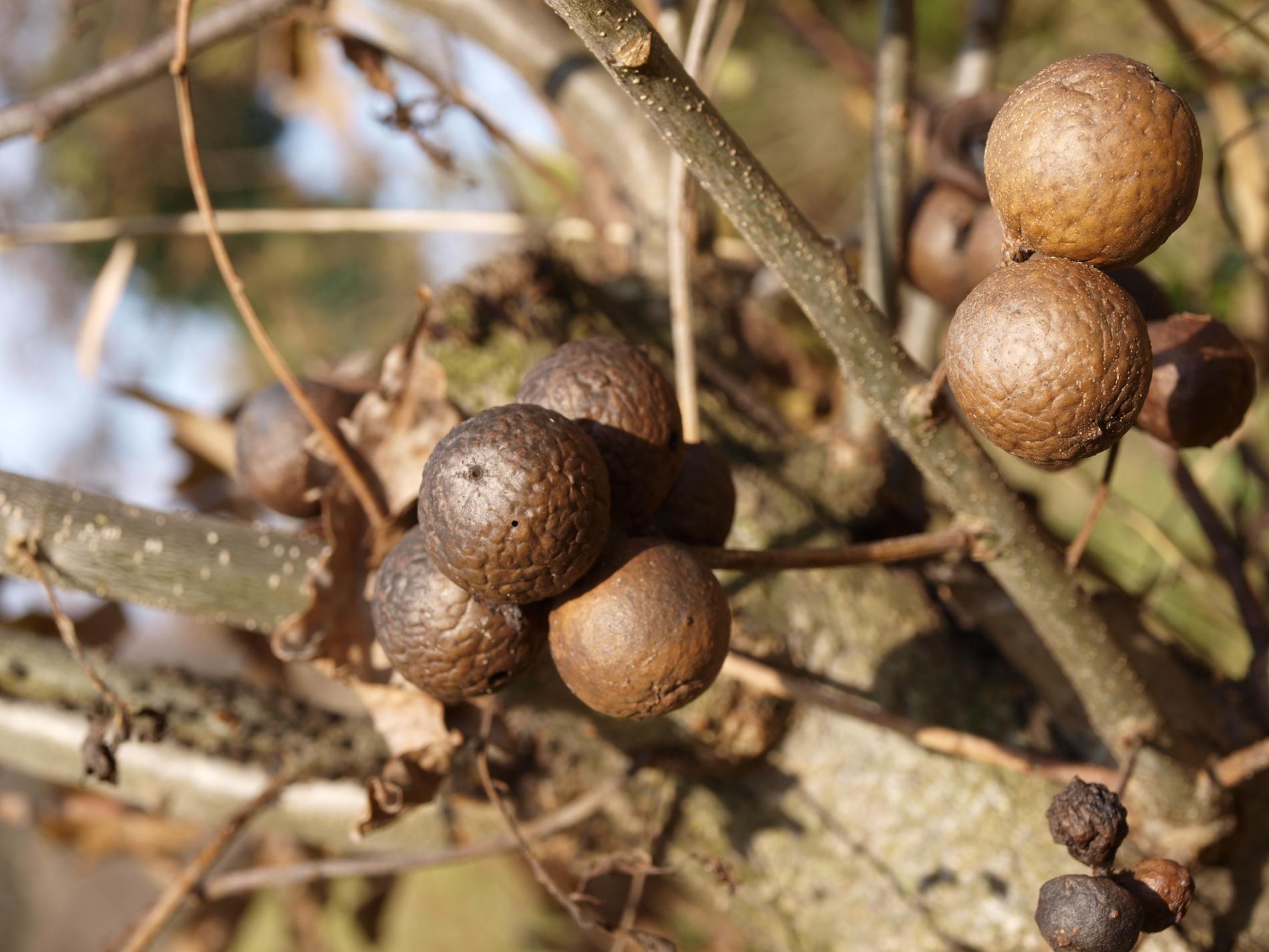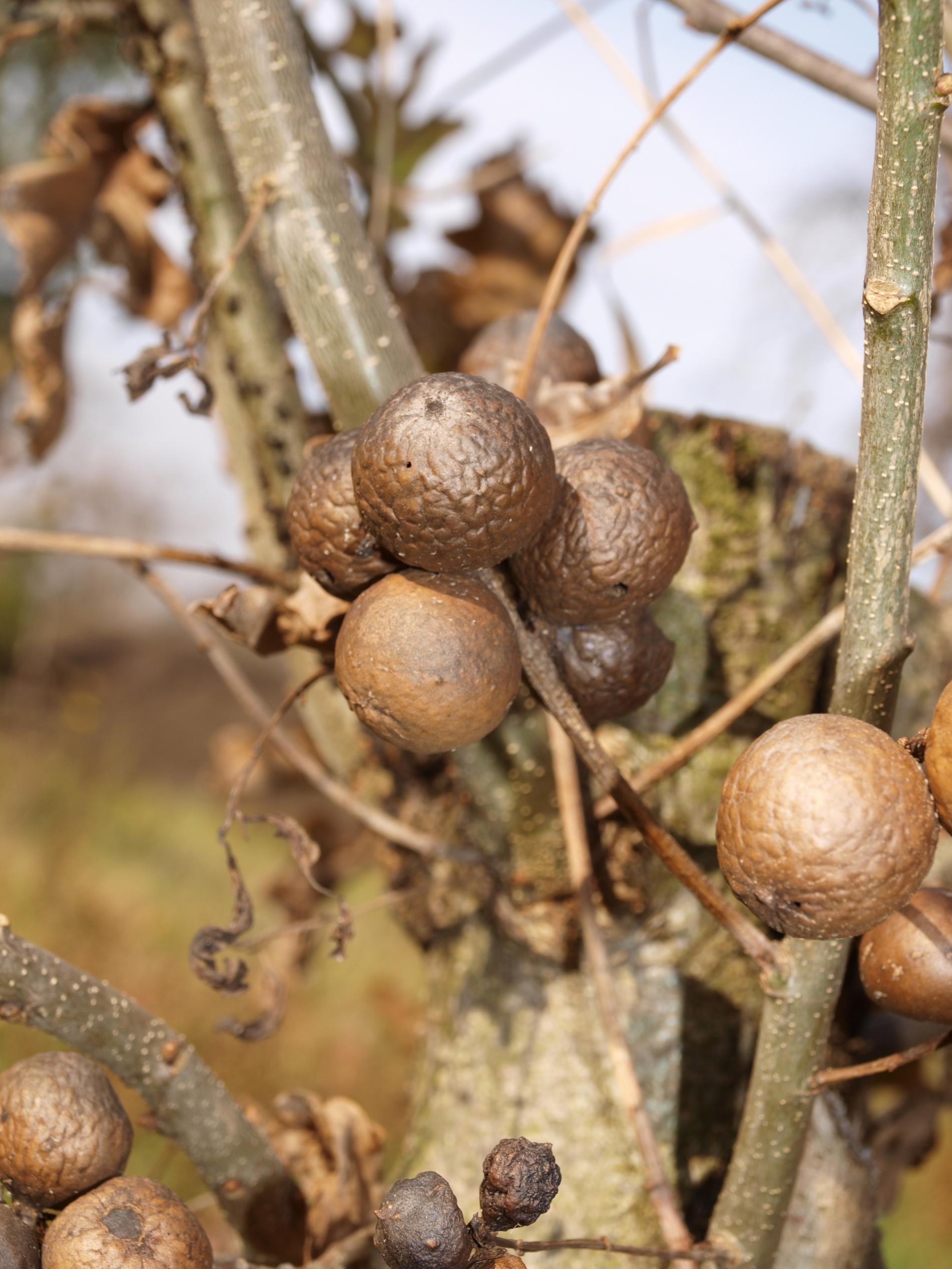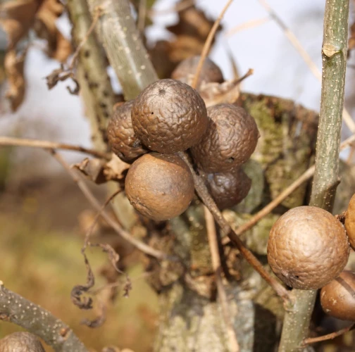 Na vetvičkách sa tvorí okrúhla, svetlohnedá, tvrdá hálka, s priemerom 1 - 3 cm.
