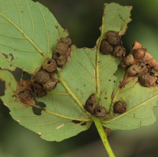 Hálky na listoch prípadne na koreňoch javorov.