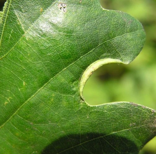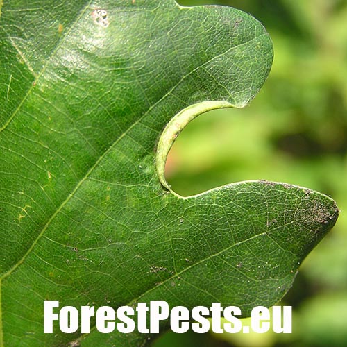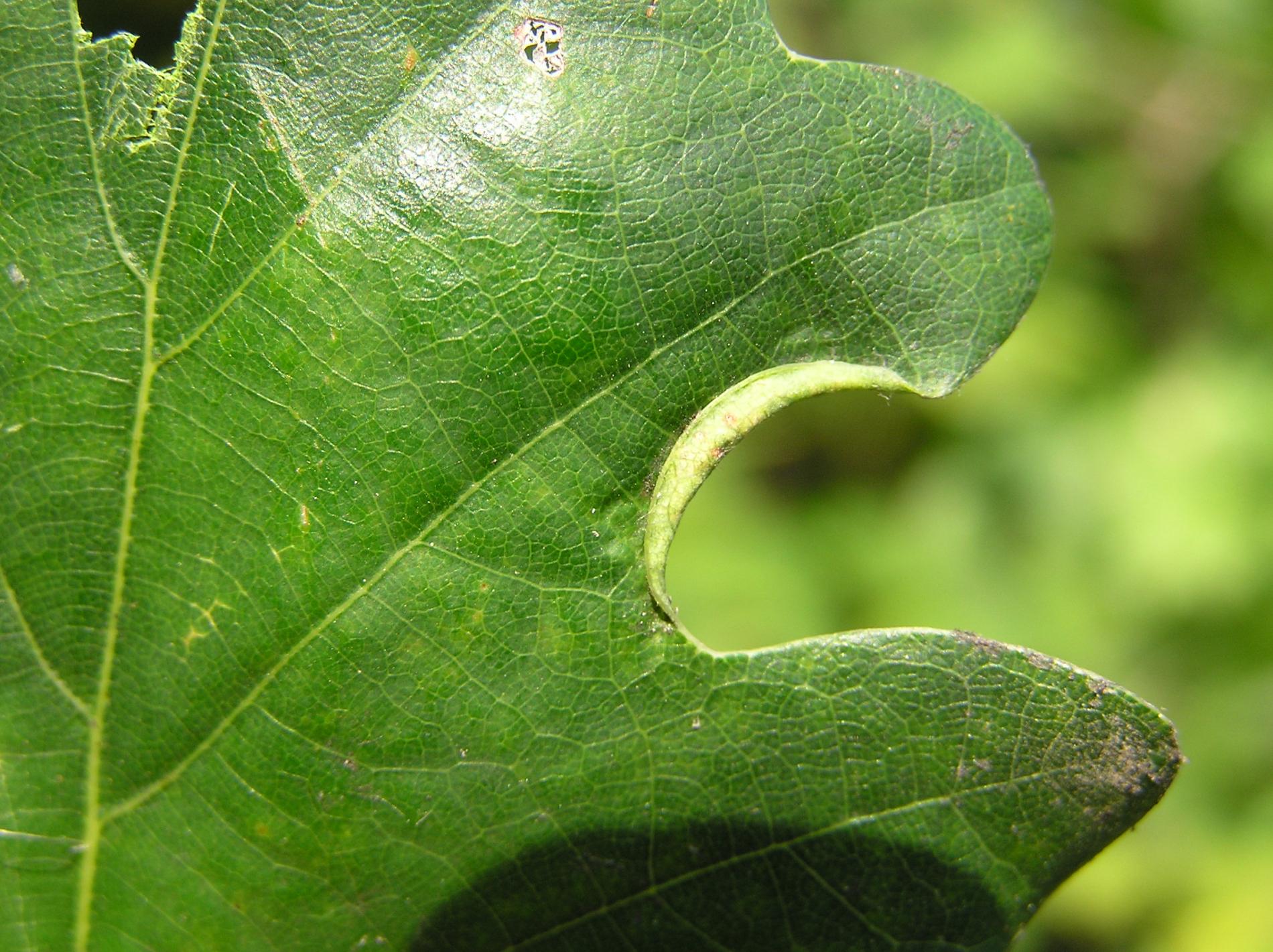 Medzi dvomi lalokmi sa na okraji listu vytvára úzky záhyb a zhrubnutie.  Hojný na všetkých druhoch dubov. Menej často na dube cerovom. Vo vnútri záhybu žije larva.