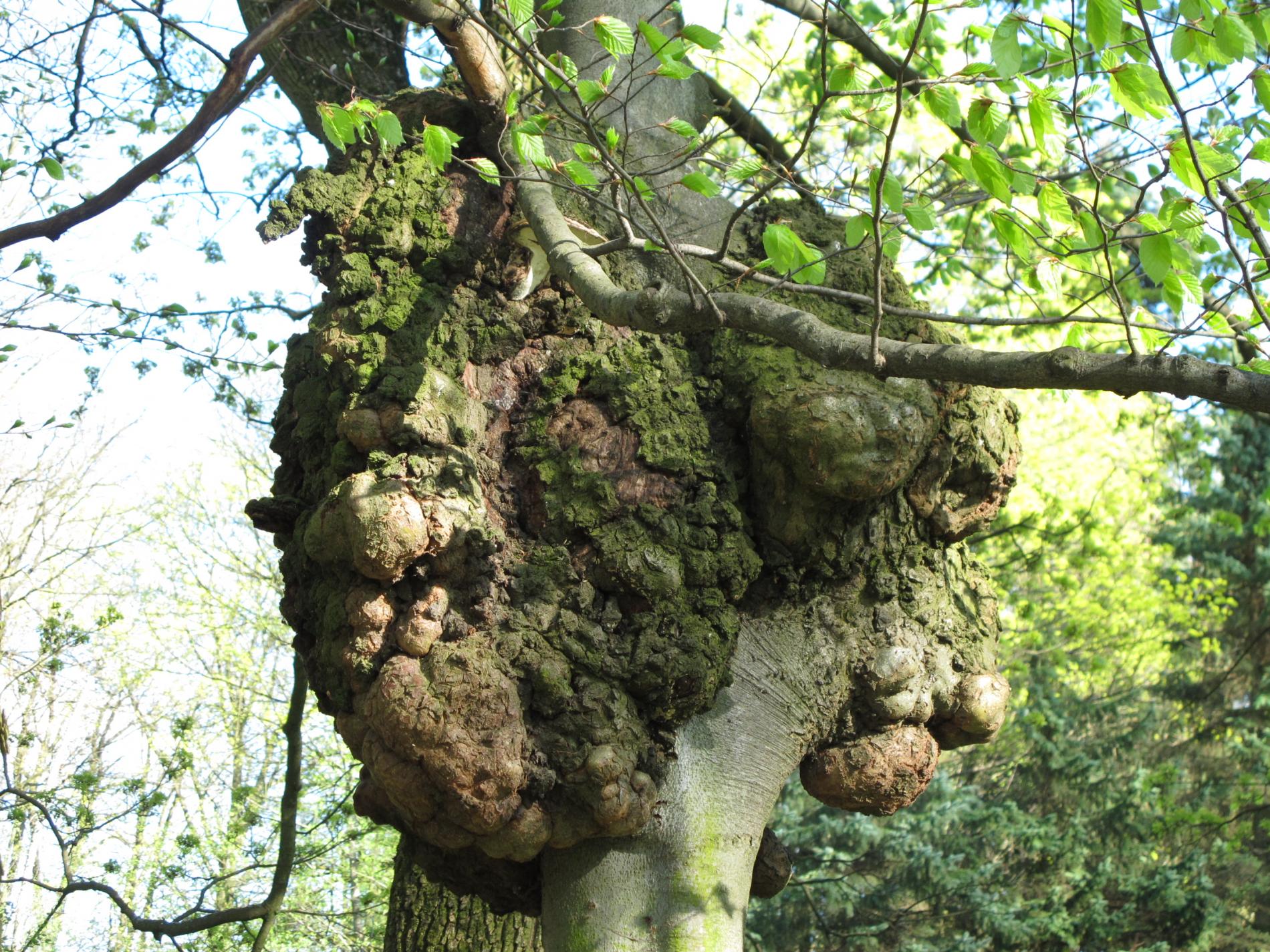 Agrobacterium tumefaciens je typ baktérie, ktorá môže spôsobiť nádory na rastlinách. Táto baktéria sa často spája s plodinami, ako sú paradajky, paprika a vinič, ale môže infikovať aj stromy. Keď A. tumefaciens infikuje strom, môže spôsobiť tvorbu nádoru na kmeni alebo konároch stromu. Hálky môžu mať rôznu veľkosť a tvar a môžu byť hladké alebo drsné, v závislosti od typu stromu a závažnosti infekcie. Aj keď nádory nemusia byť spočiatku pre strom škodlivé, časom môžu oslabiť štruktúru stromu a urobiť ho náchylnejším na iné choroby a škodcov. V závažných prípadoch môžu hálky dokonca spôsobiť smrť stromu.