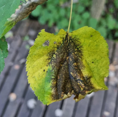 Huba Paraconiothyrium tiliae, tiež známa ako Asteromella tiliae alebo Didymosphaeria petrakiana, je druh škodcu, ktorý postihuje stromy rodu Tilia spp. (lipa). Spôsobuje ochorenie listových čepelí, ktoré sa prejavuje ako výrazné lézie na listoch. Lézie sa rozširujú, spájajú a výsledkom sú škvrny nepravidelného tvaru. Okolie je sieťované. Infikované listy zhnednú alebo zožltnú a môžu predčasne opadávať. Patogén sa šíri prostredníctvom spór prenášaných vetrom, dažďom alebo hmyzom. Závažnosť napadnutia závisí od rôznych faktorov. Preventívne obranné postupy, ako je správne rozmiestnenie stromov, prerezávanie a odstraňovanie odpadu, pomáhajú znížiť riziko. Je dôležité udržiavať optimálnu vlhkosť pôdy. V závažných prípadoch možno zvážiť použitie chemického ošetrenia stromov. Pre efektívny manažment je dôležité včasné odhalenie napadnutia a odborná konzultácia s predajcami chémie.