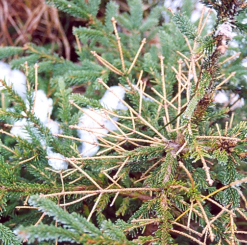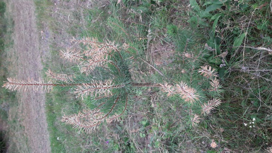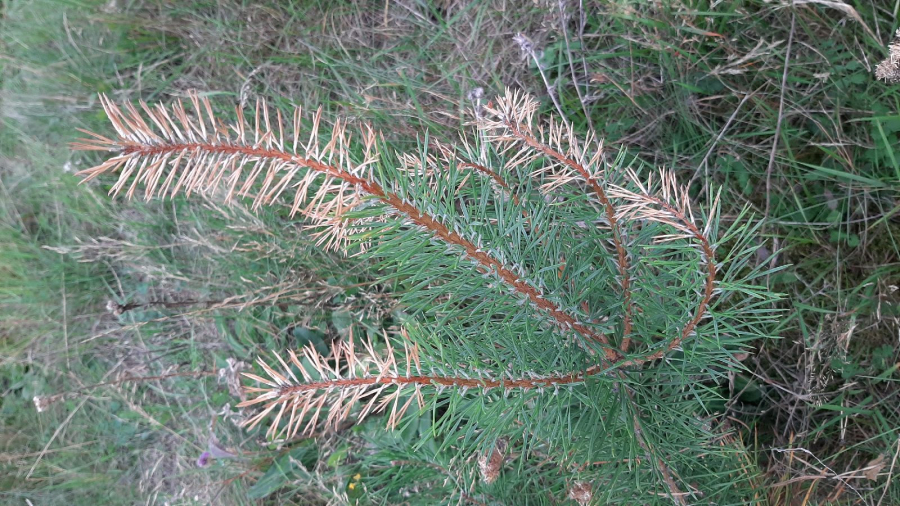 Konce vetiev bez ihlíc a podkôrne pletivá odumreté.