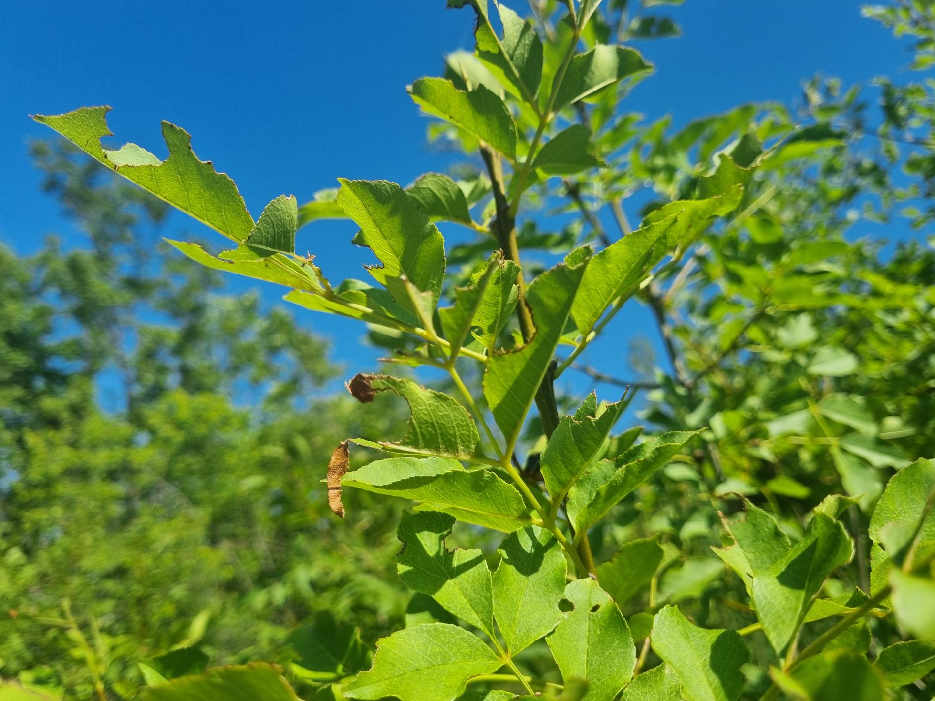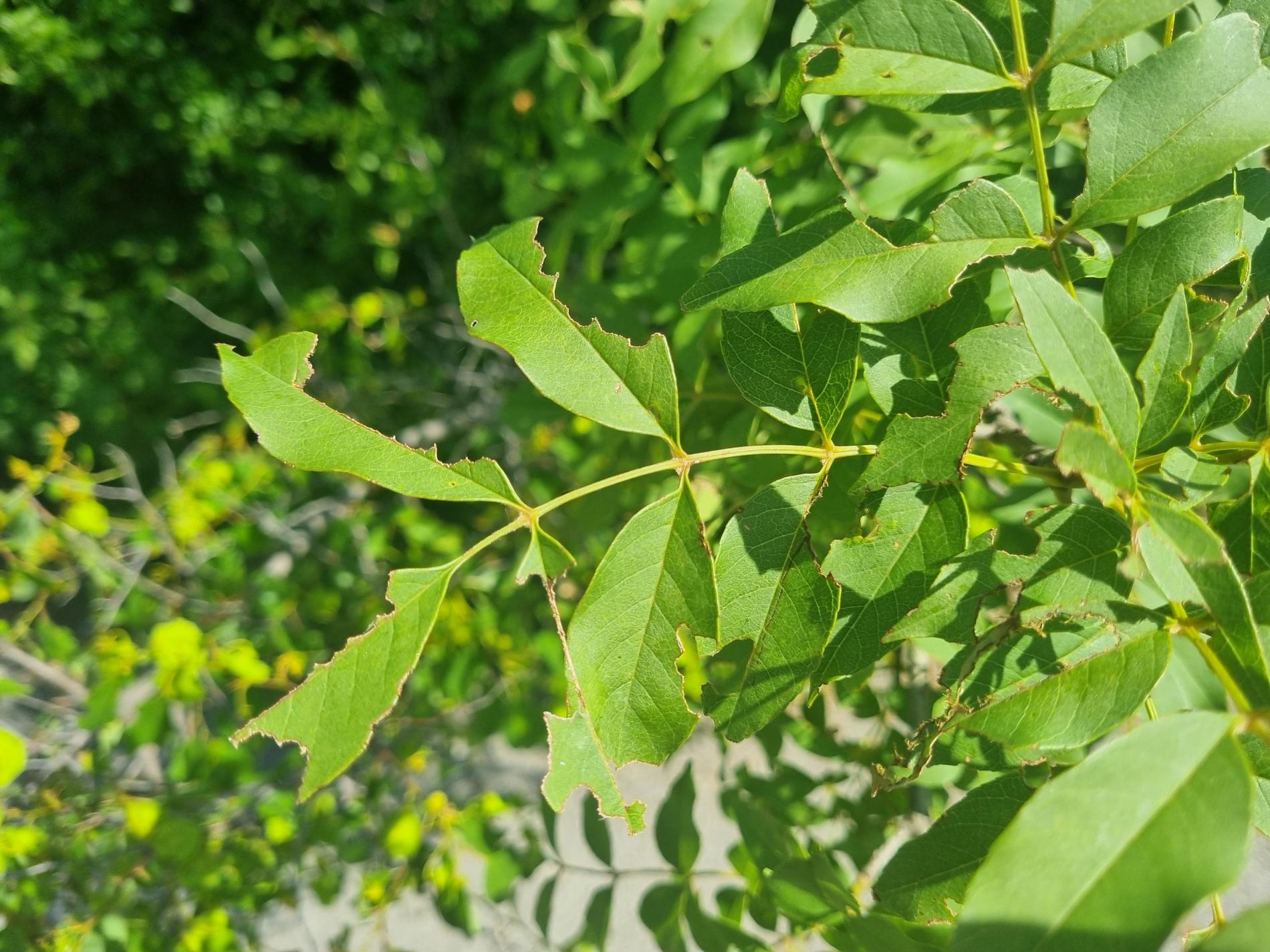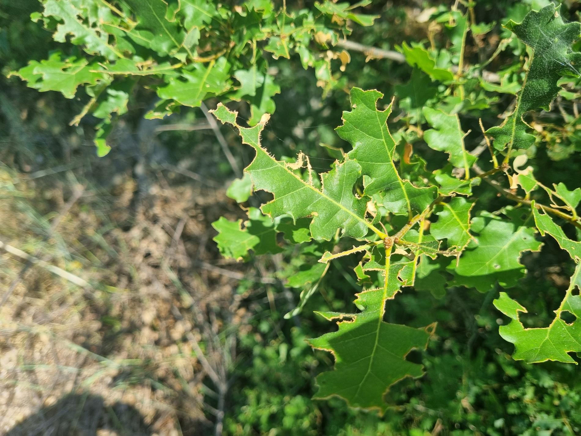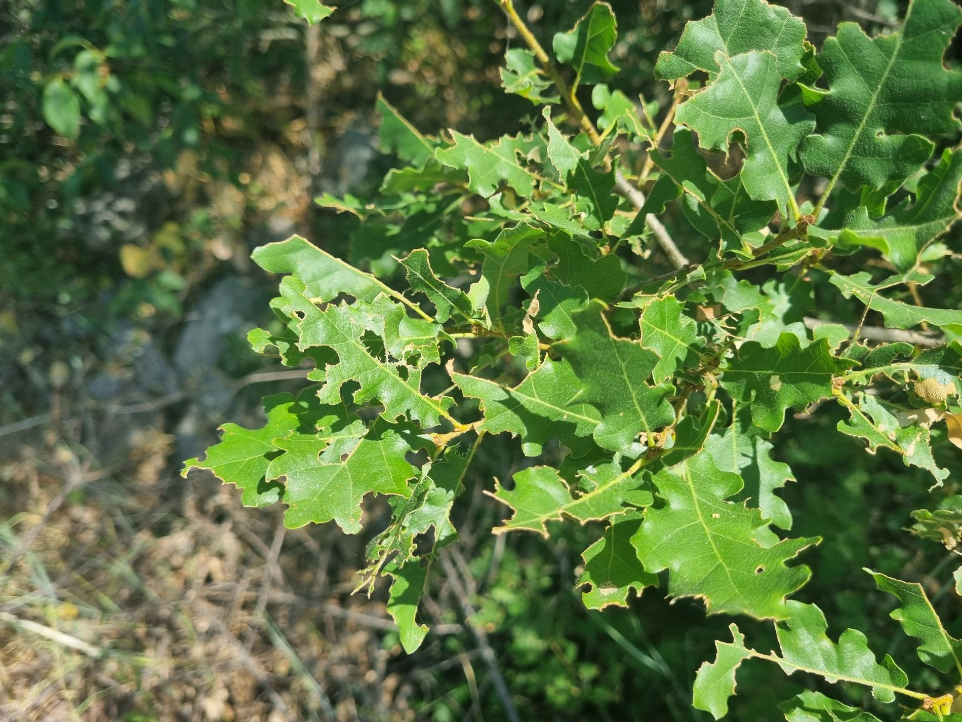 Nepravidelne poškodené okraje listov, čiastočne chýbajúce časti listovej čepele, drobné výrezy na listoch krov a listnatých stromov.