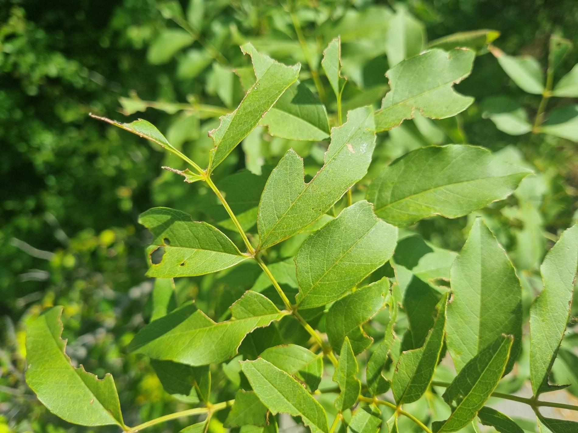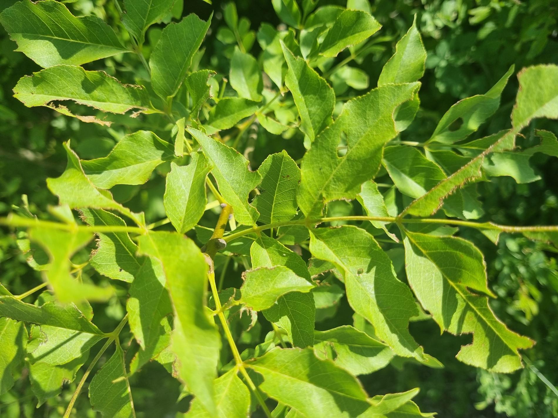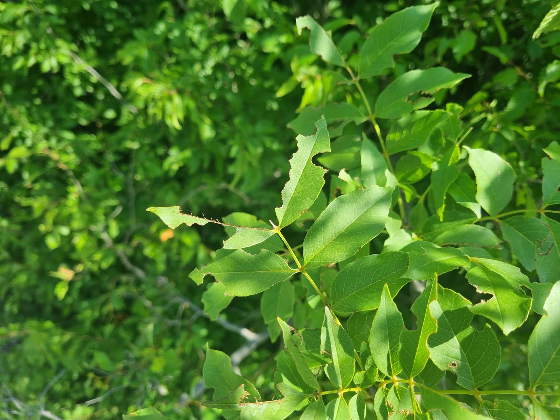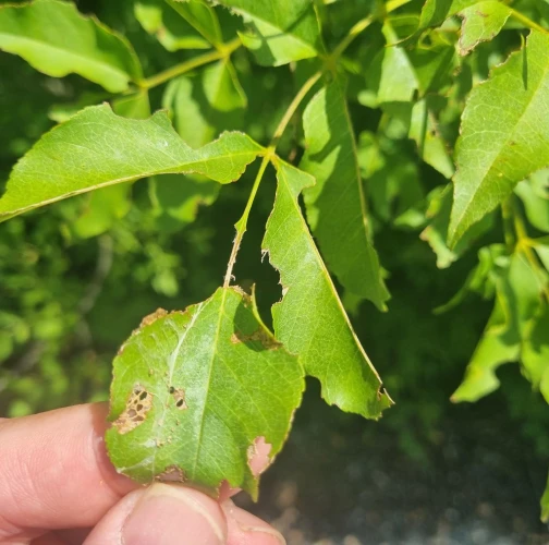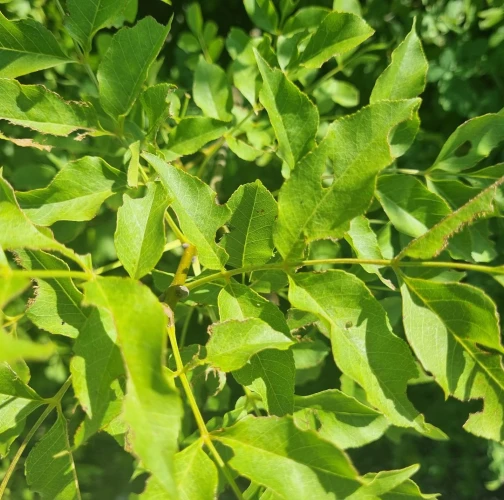 Nepravidelne poškodené okraje listov, čiastočne chýbajúce časti listovej čepele, drobné výrezy na listoch krov a listnatých stromov.
