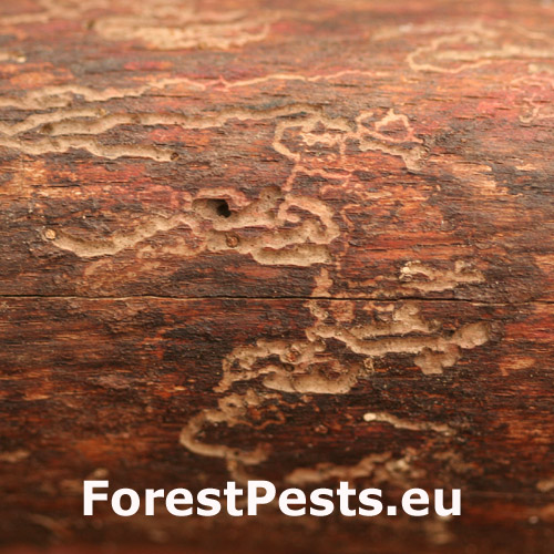 Asi 1,5 – 2 mm veľký hnedý, úzko valcovitý podkôrnik. Vyvíja sa v tenších vetvách odumierajúcich stromov, kde vytvára typický požerok. Nie príliš častý.