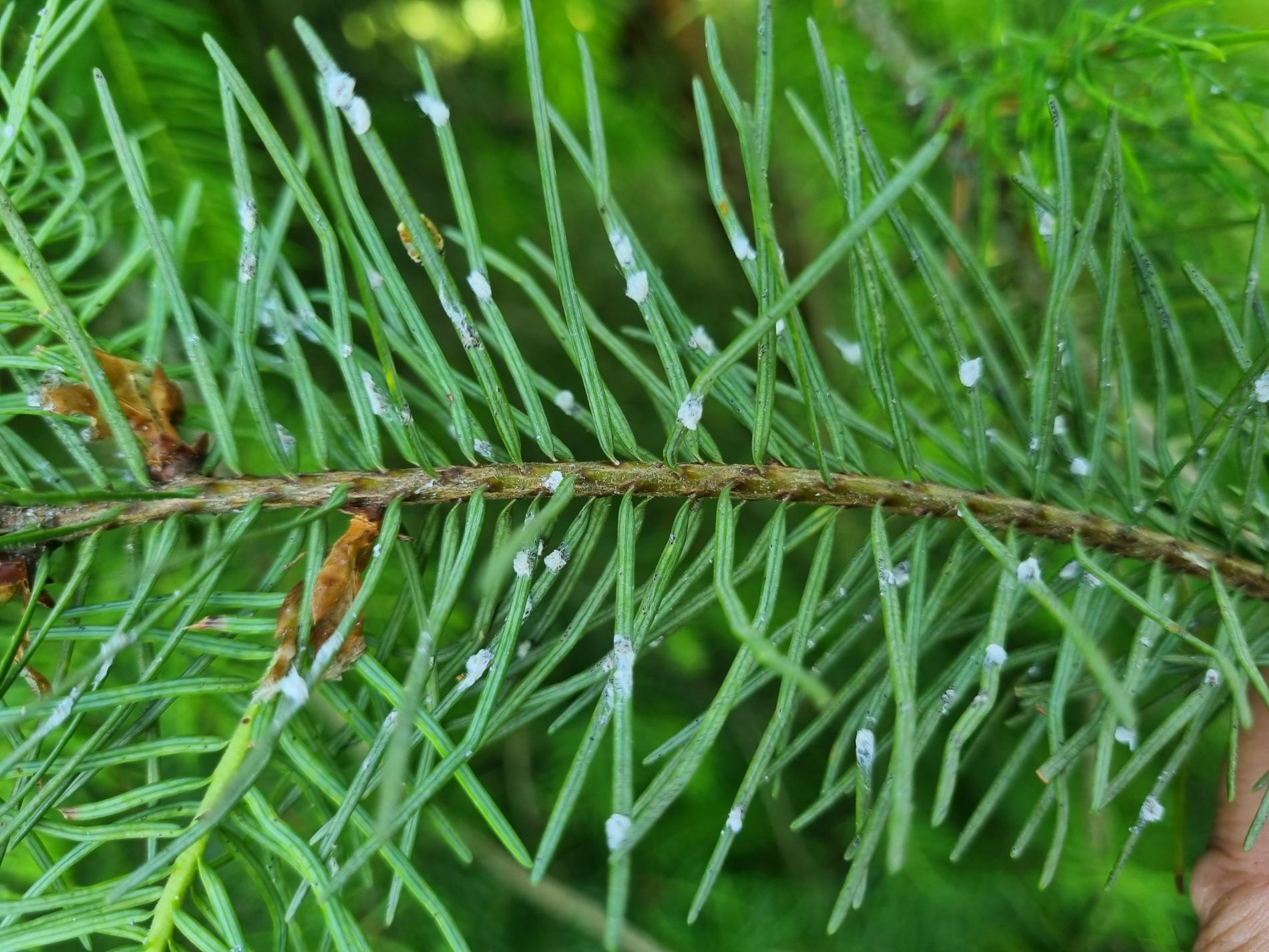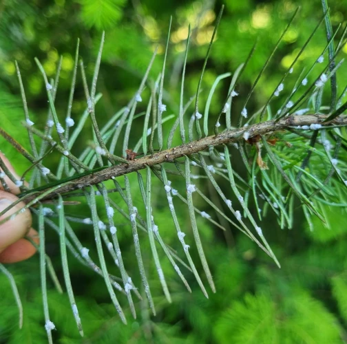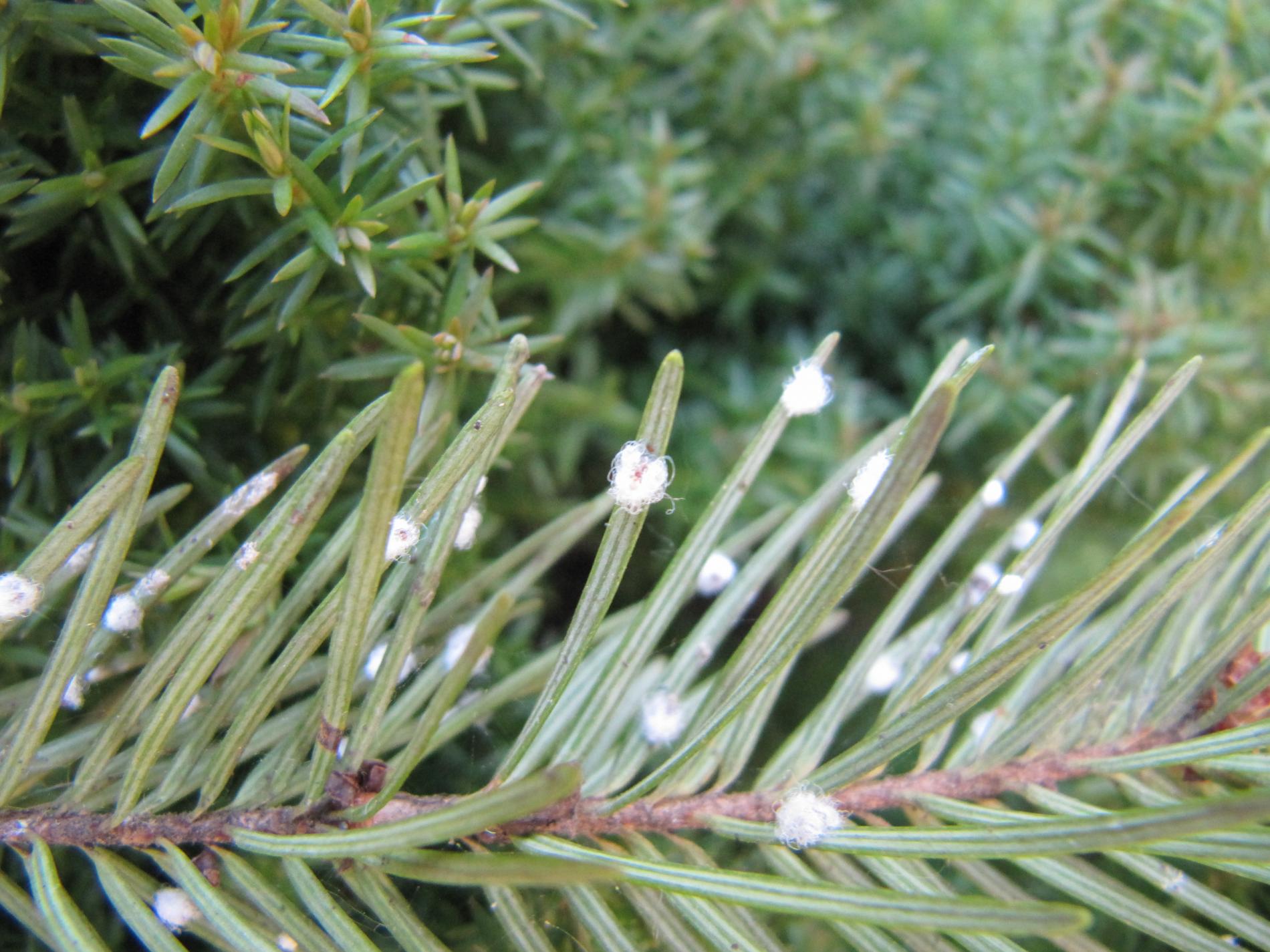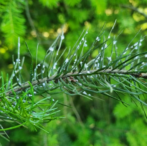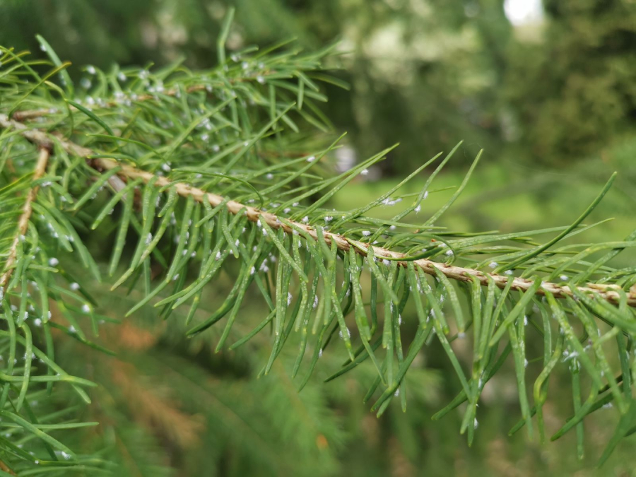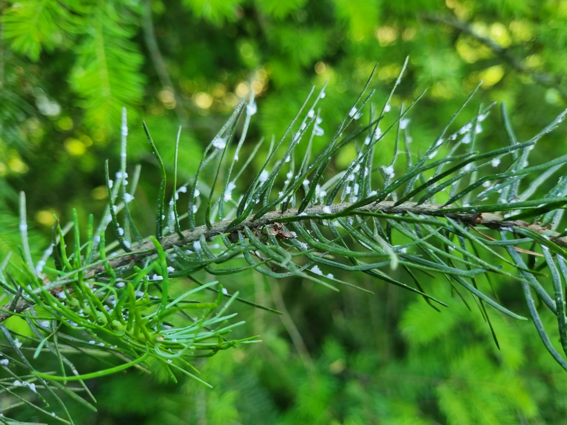 Malé chumáčiky vatovitej hmoty, ktorými sú ihlice doslova posiate.