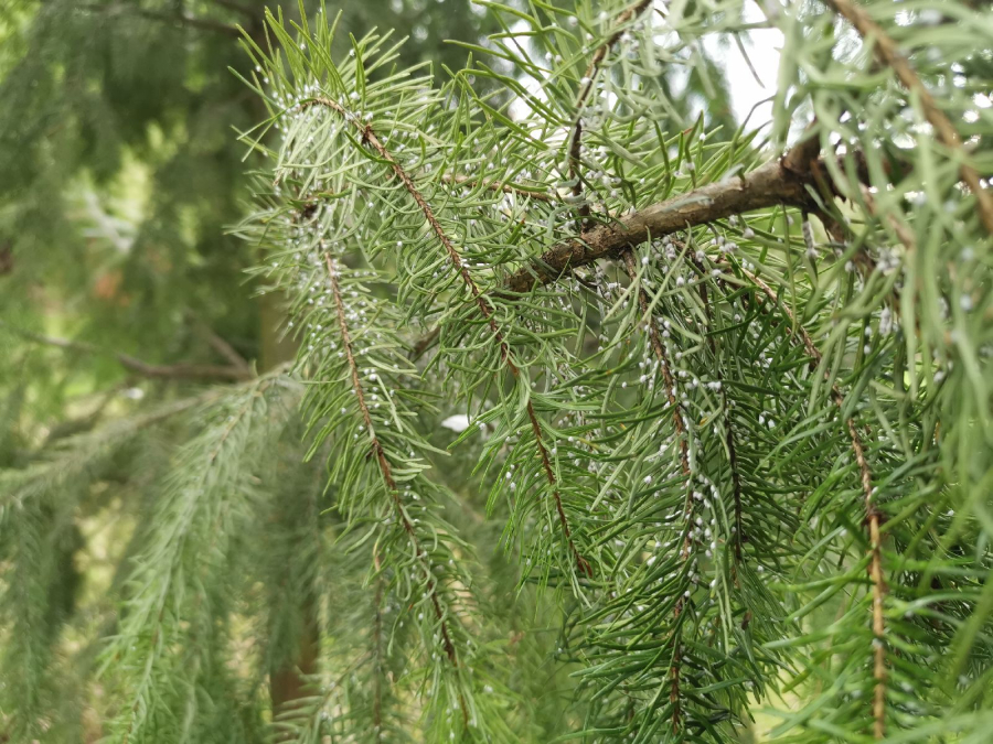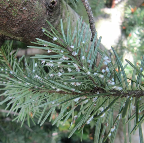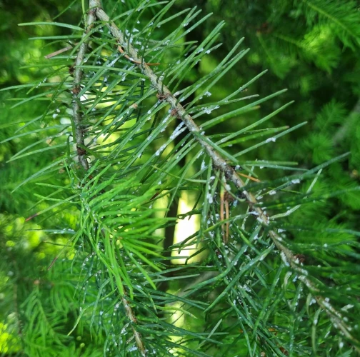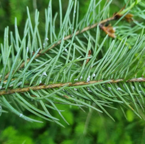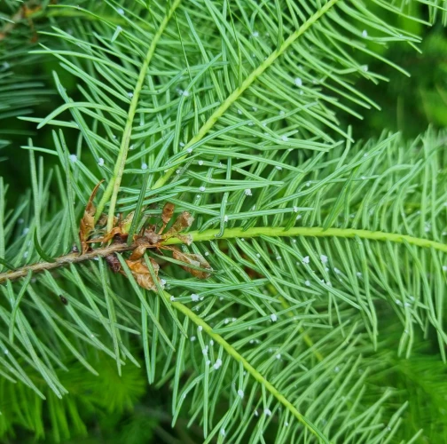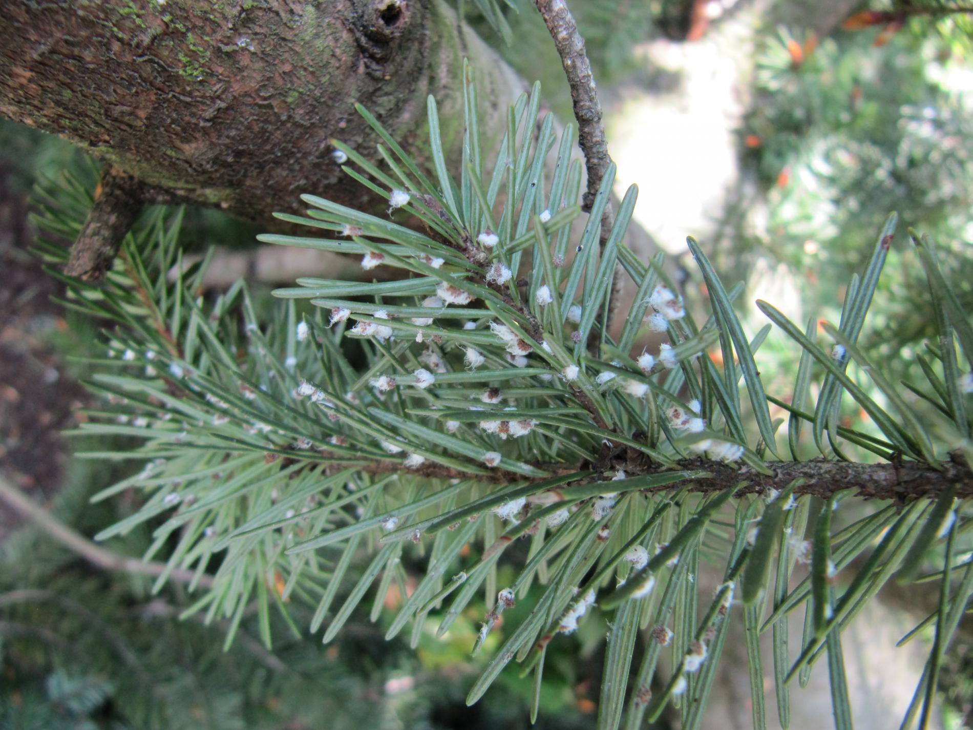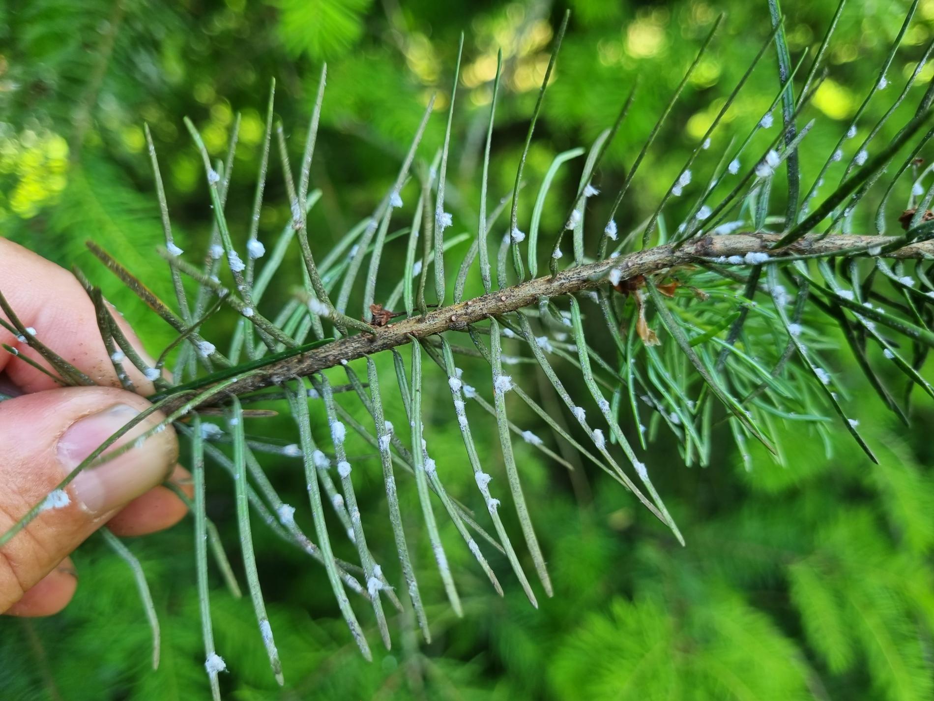 Malé chumáčiky vatovitej hmoty, ktorými sú ihlice doslova posiate.