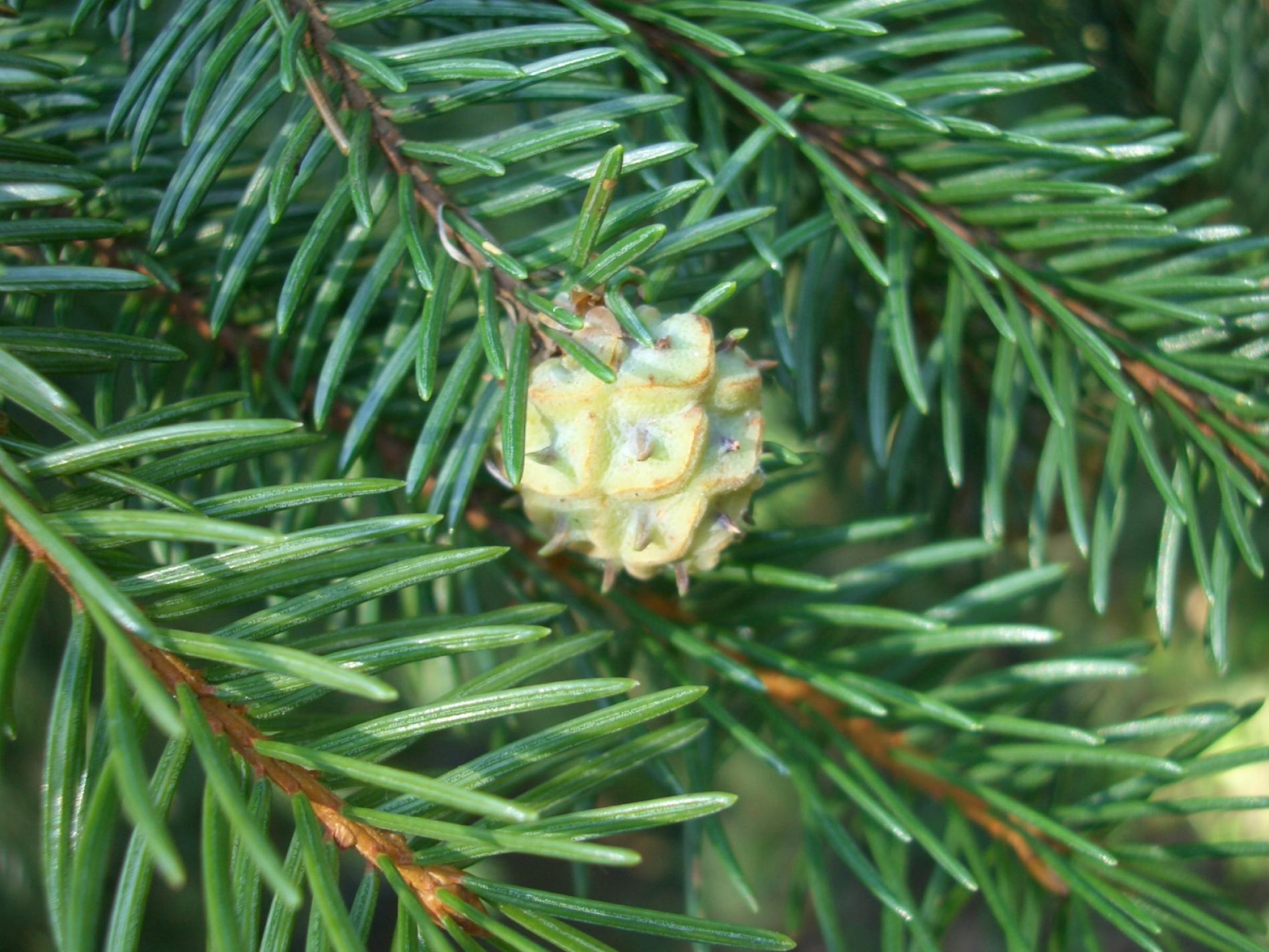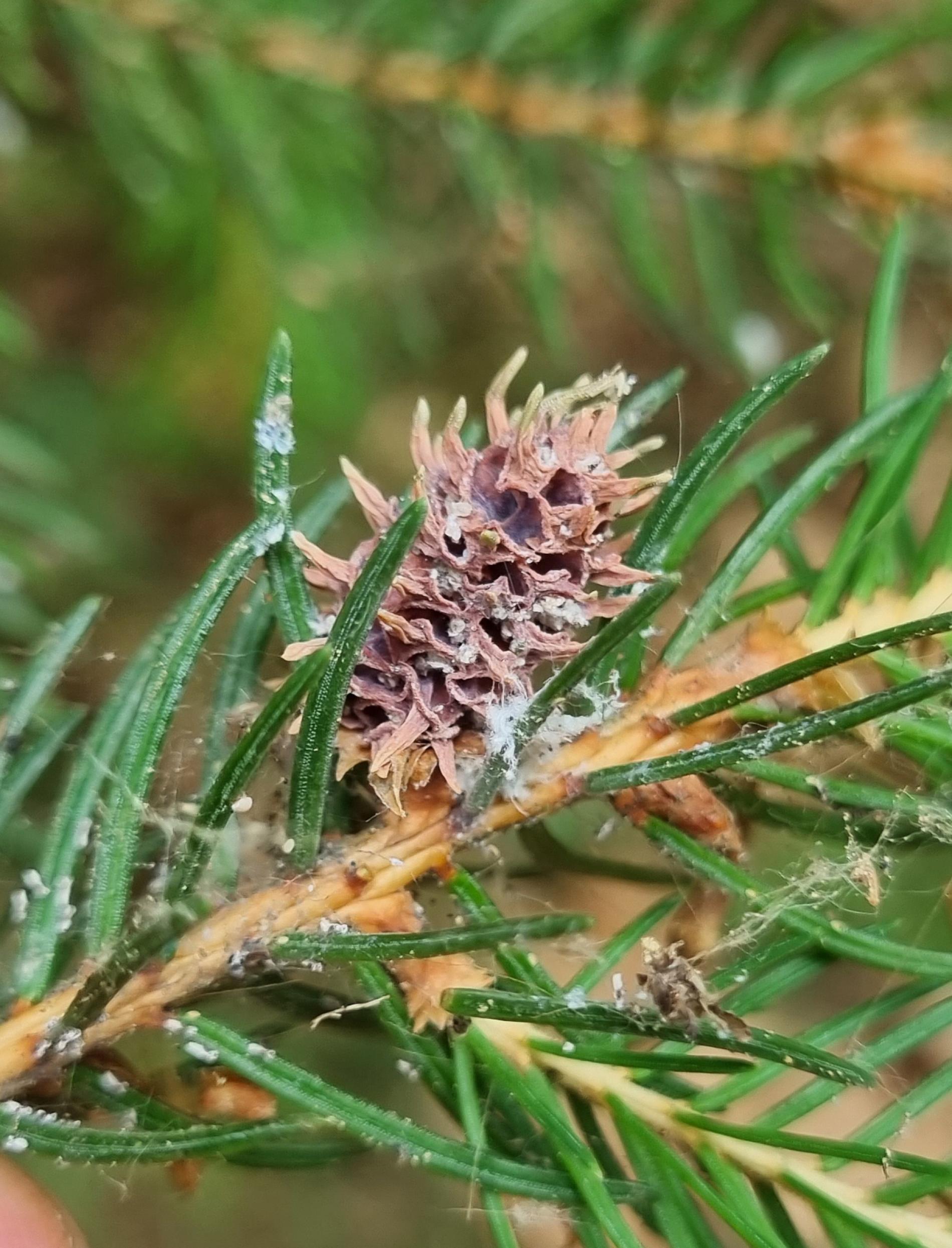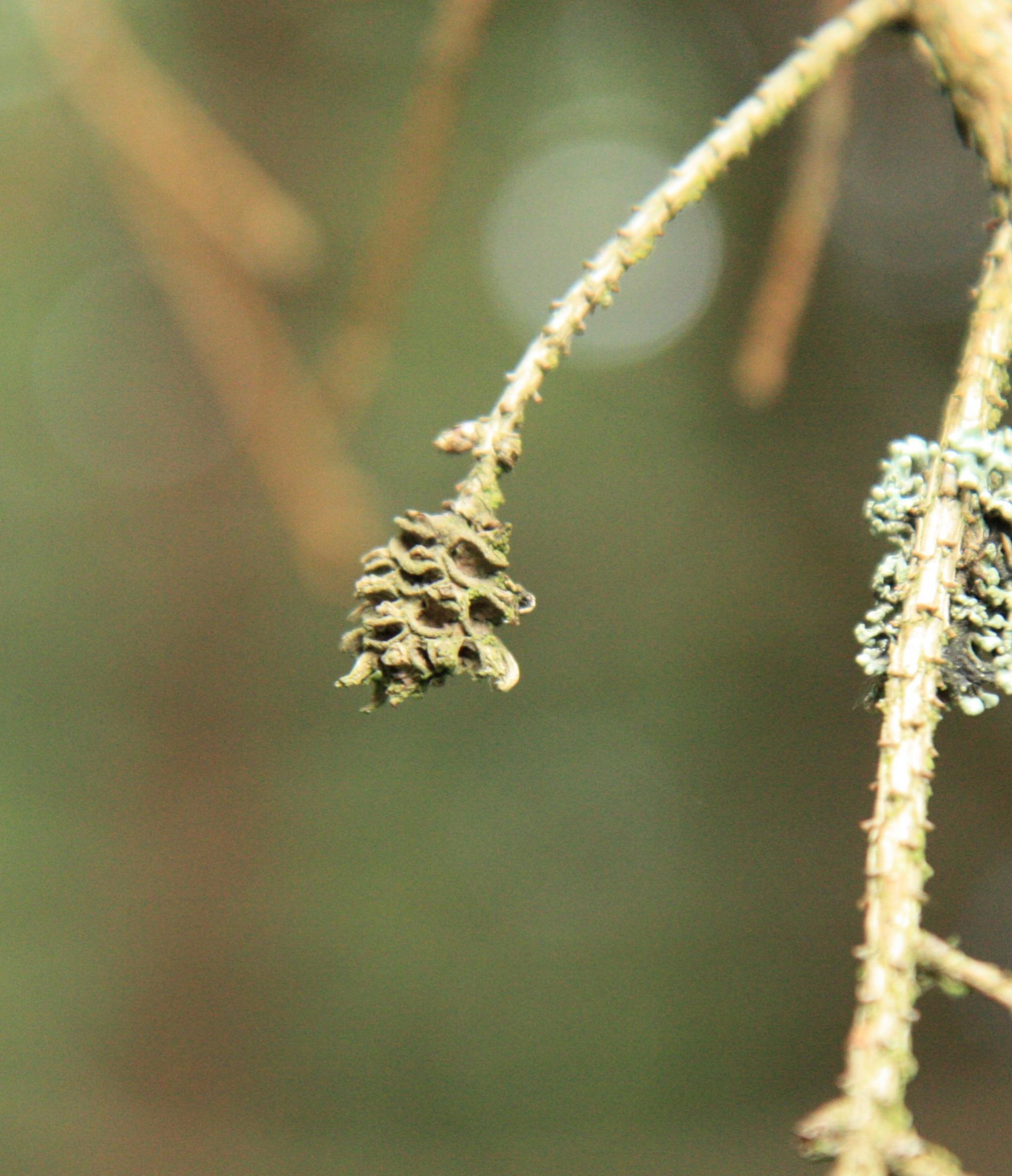 Asi 1 cm veľká hálka na konci vetvičky.
